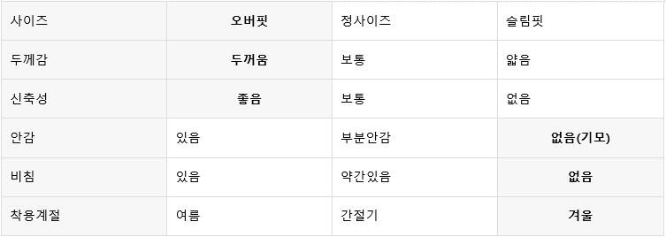 평소 입던 스타일과 달라 만족도가 낮을 수 있습니다
