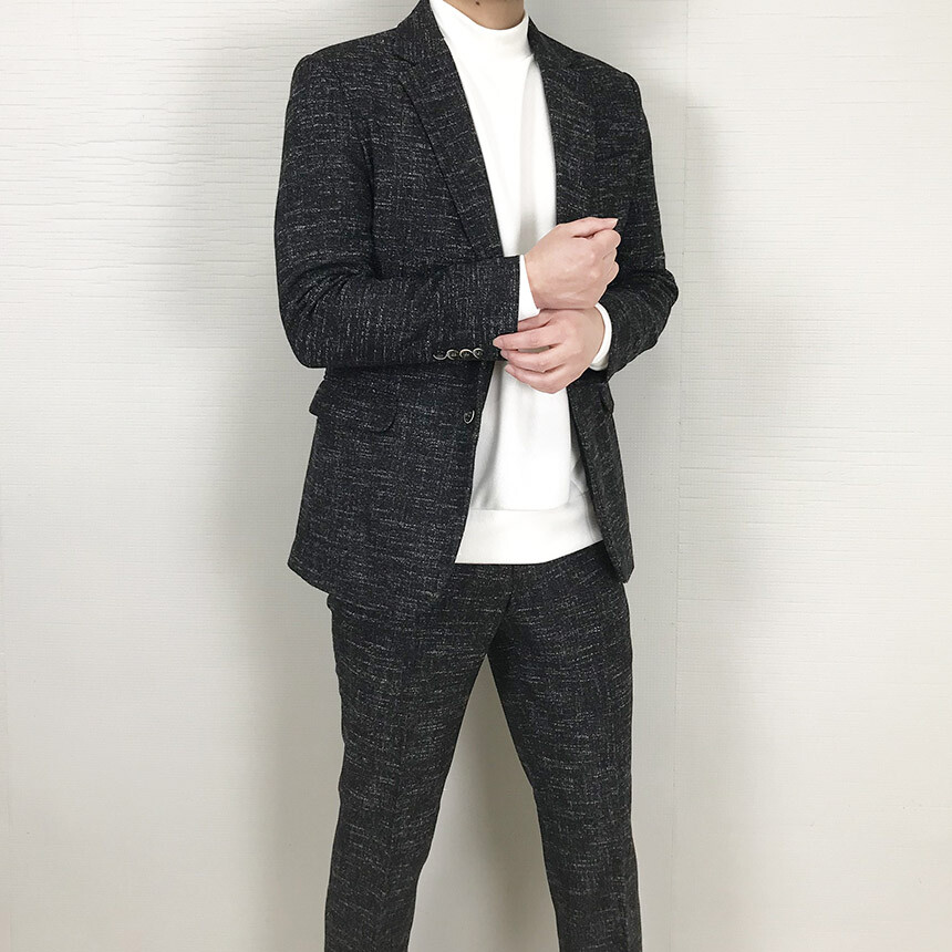 (겨울) 슬림 블랙 보카시체크 싱글 정장