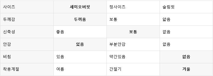 평소 입던 스타일과 달라 만족도가 낮을 수 있습니다