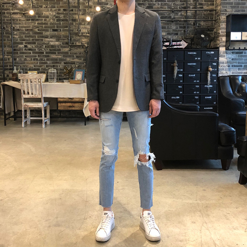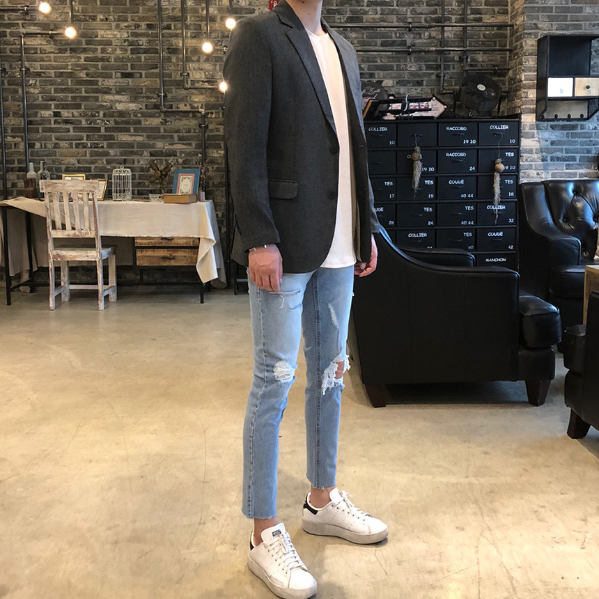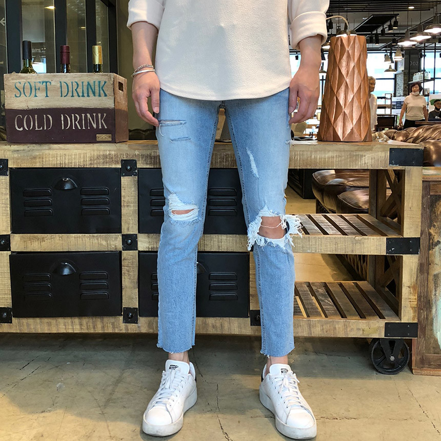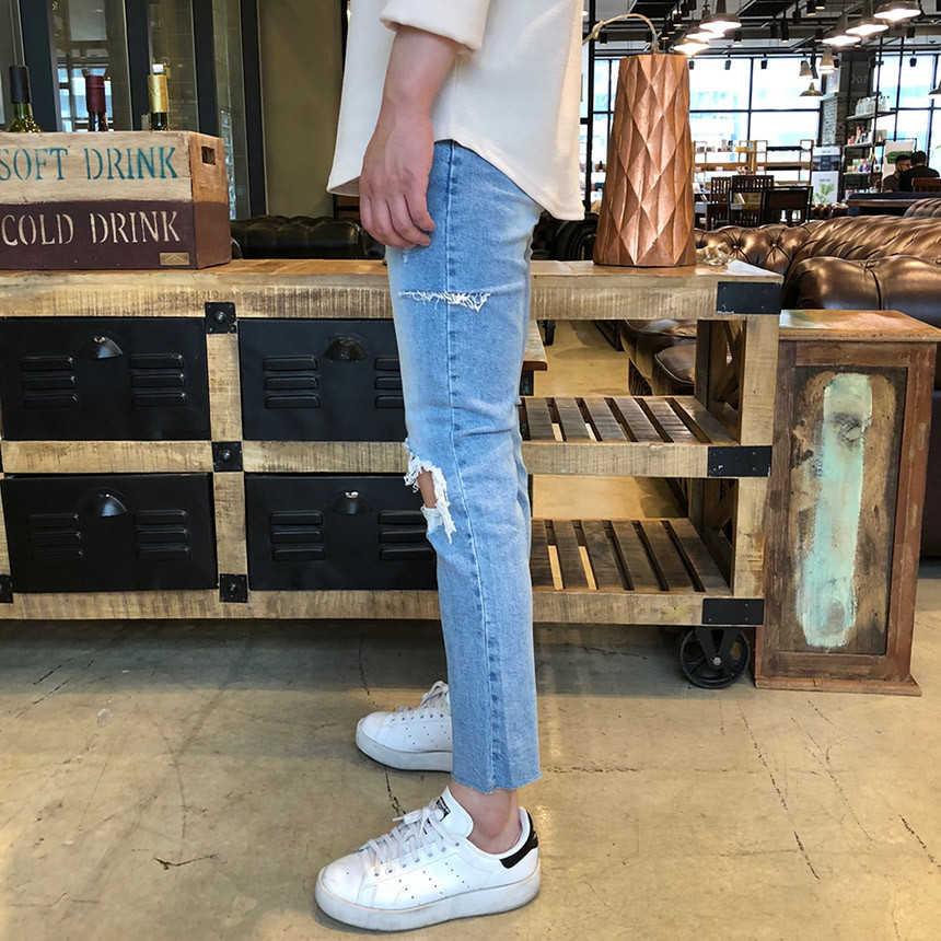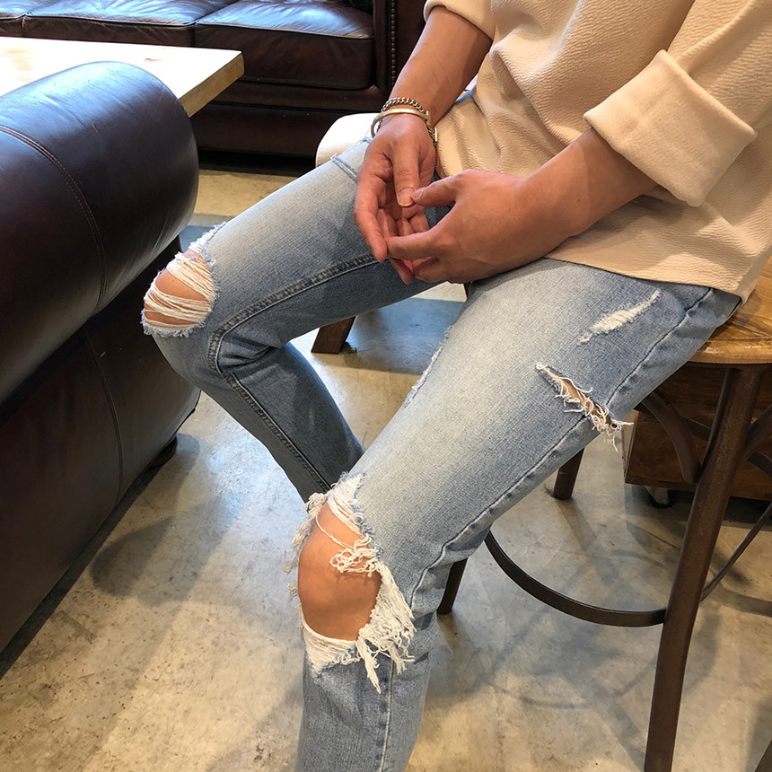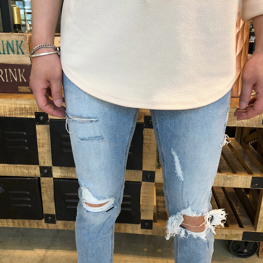 [D111] 스판 구제 커팅 데님 진