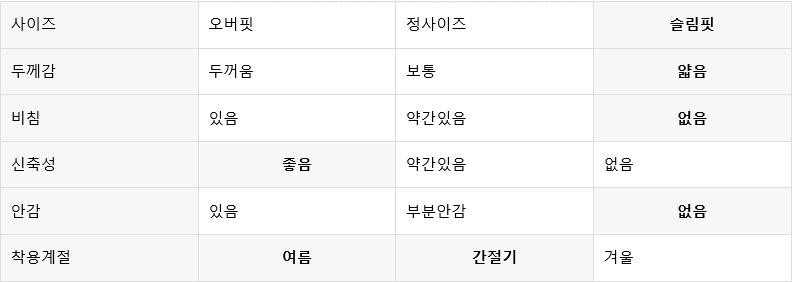 평소 입던 스타일과 달라 만족도가 낮을 수 있습니다