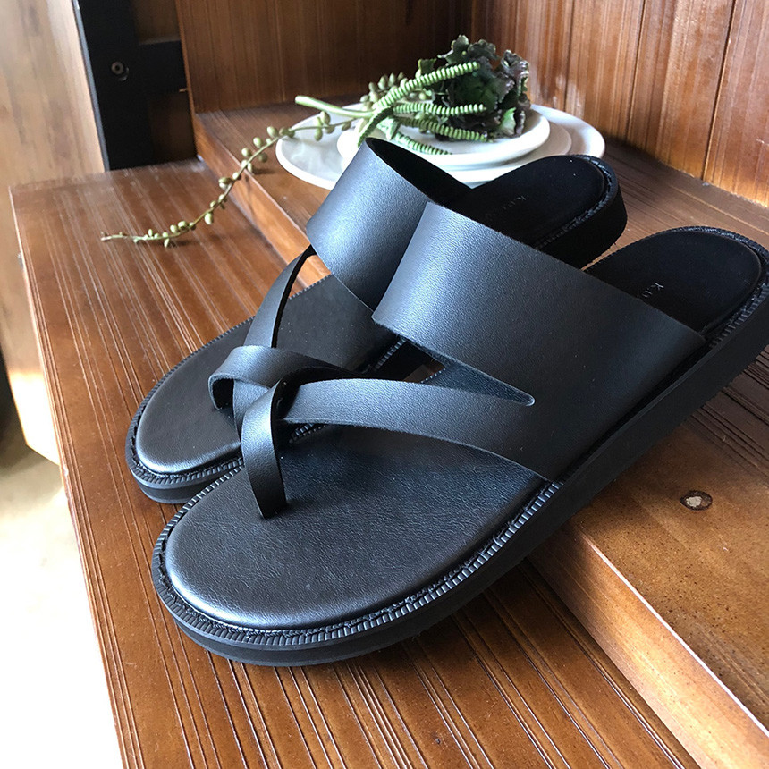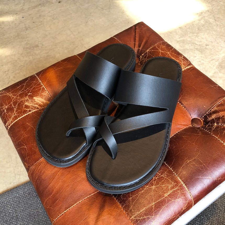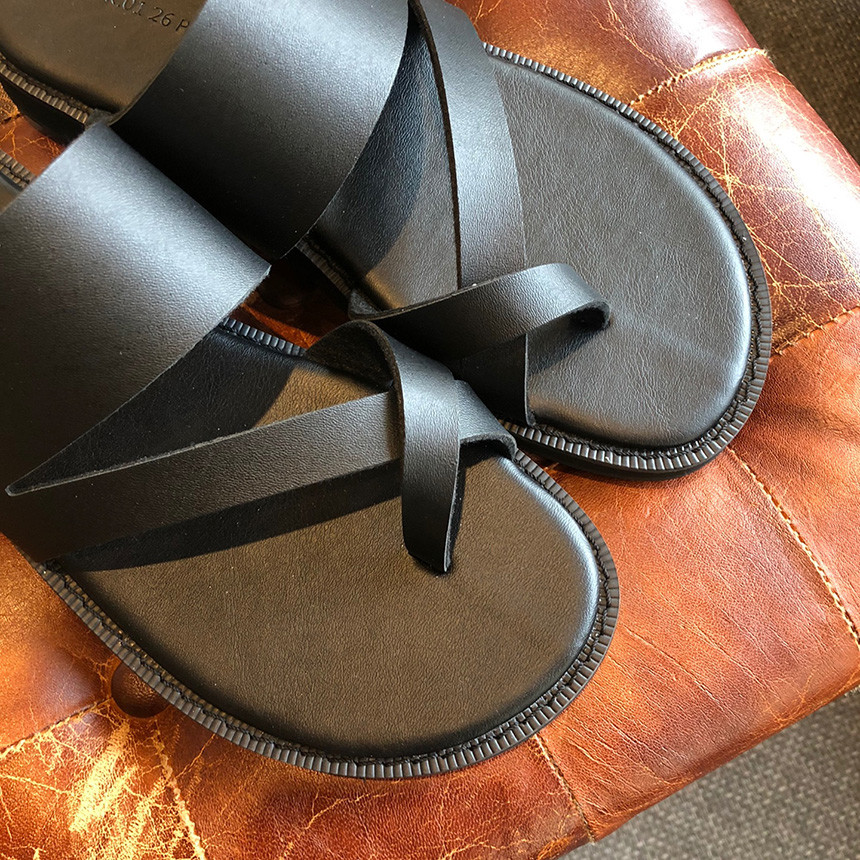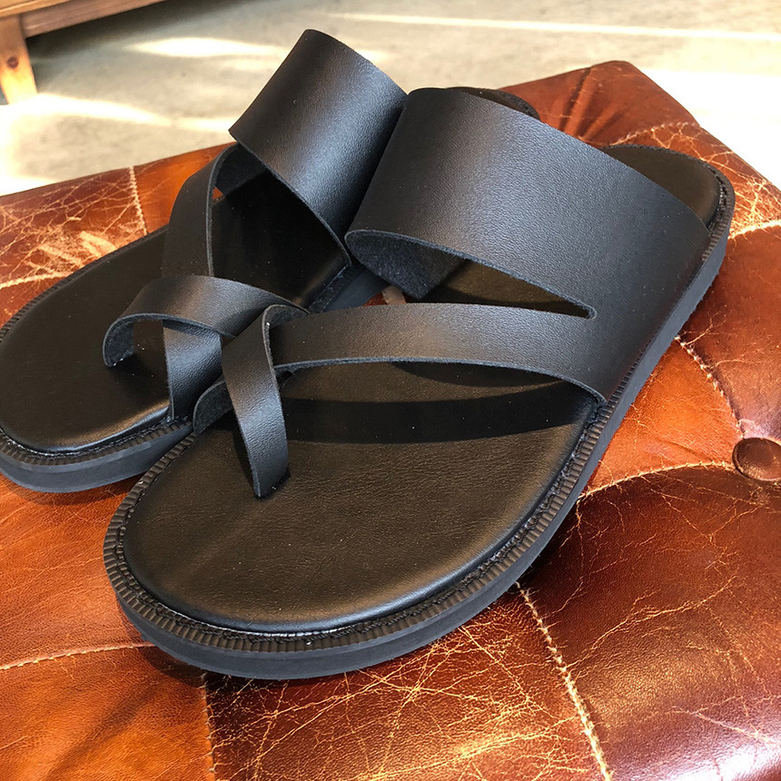 블랙 쪼리 가죽 샌들