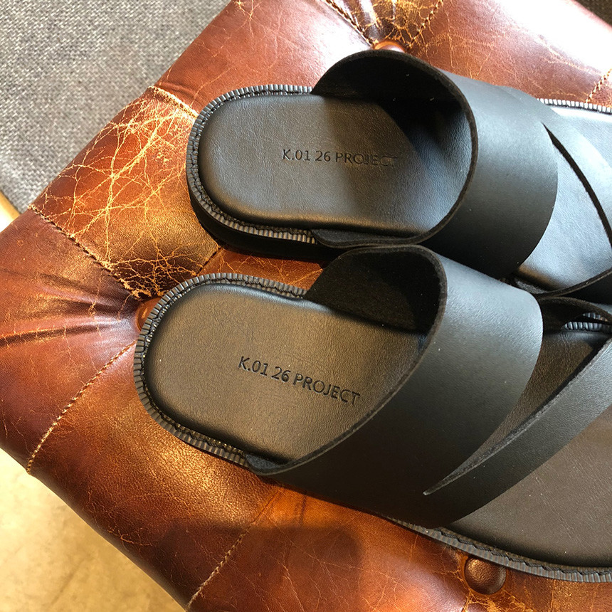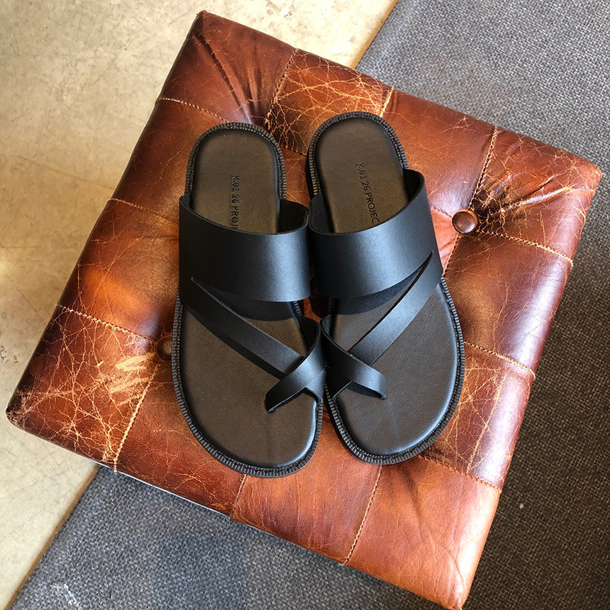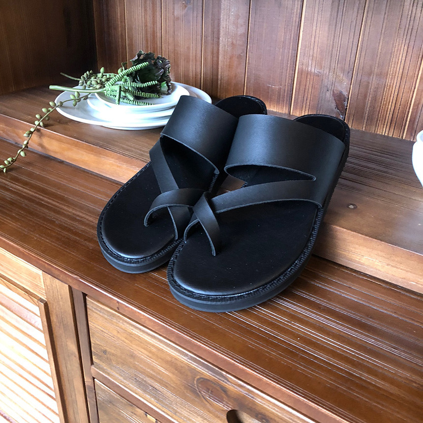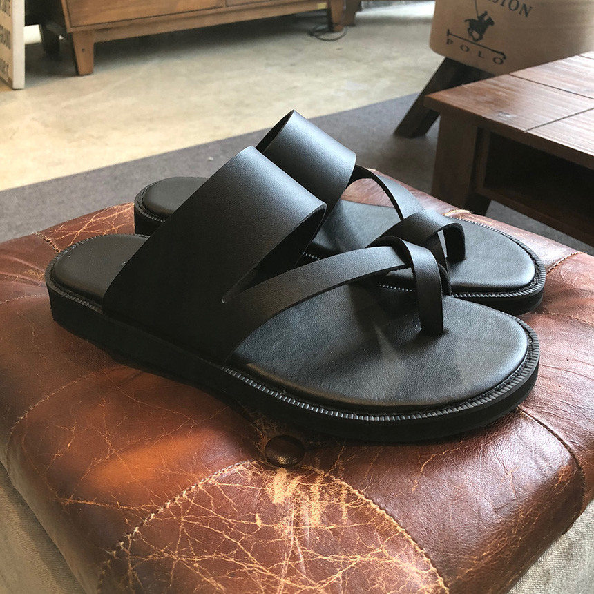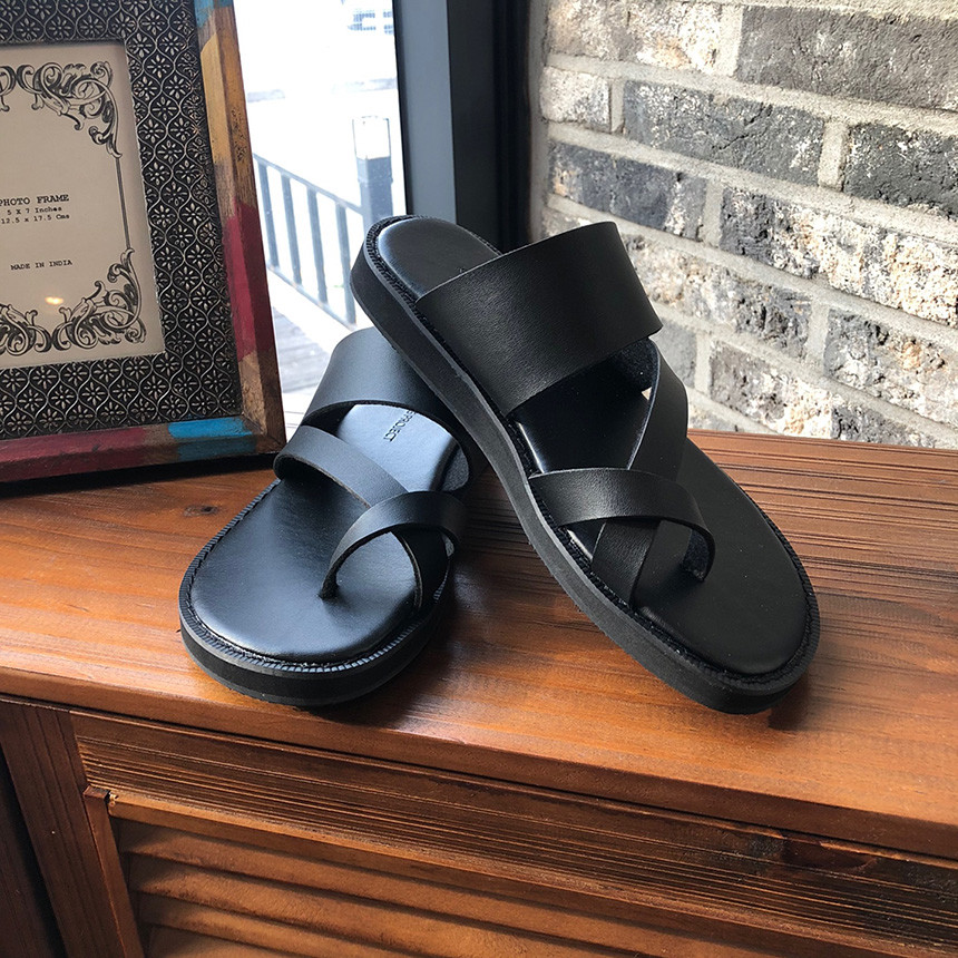 [Z111] 블랙 쪼리 가죽 샌들