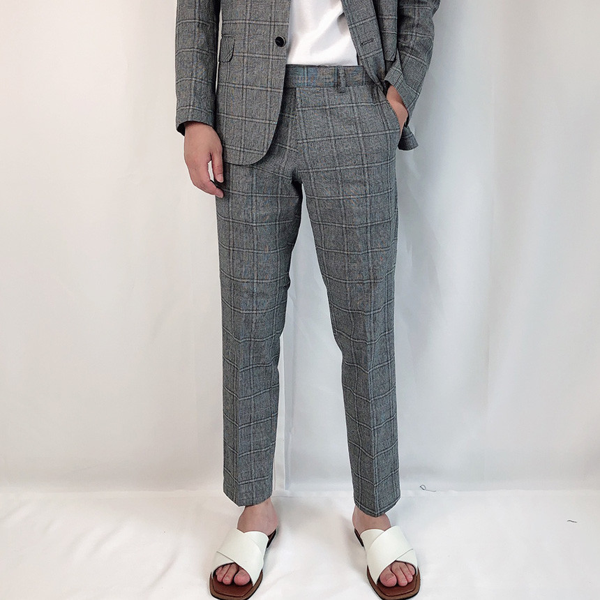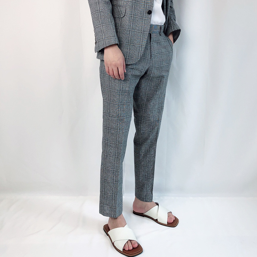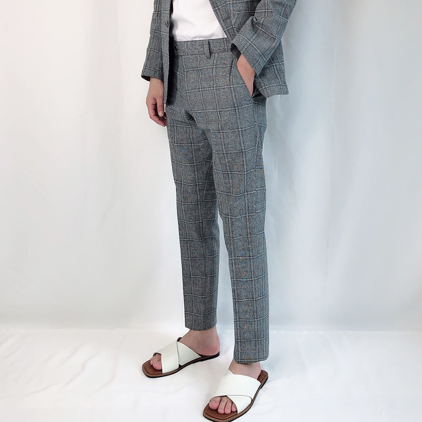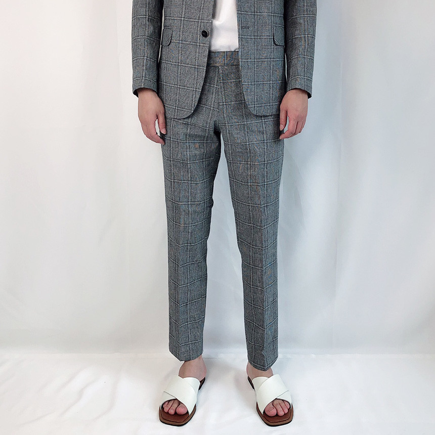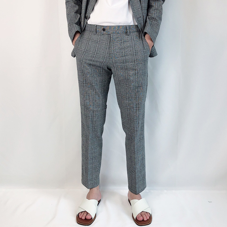 [1231] 진그레이 린넨 체크 여름 9부 슬랙스