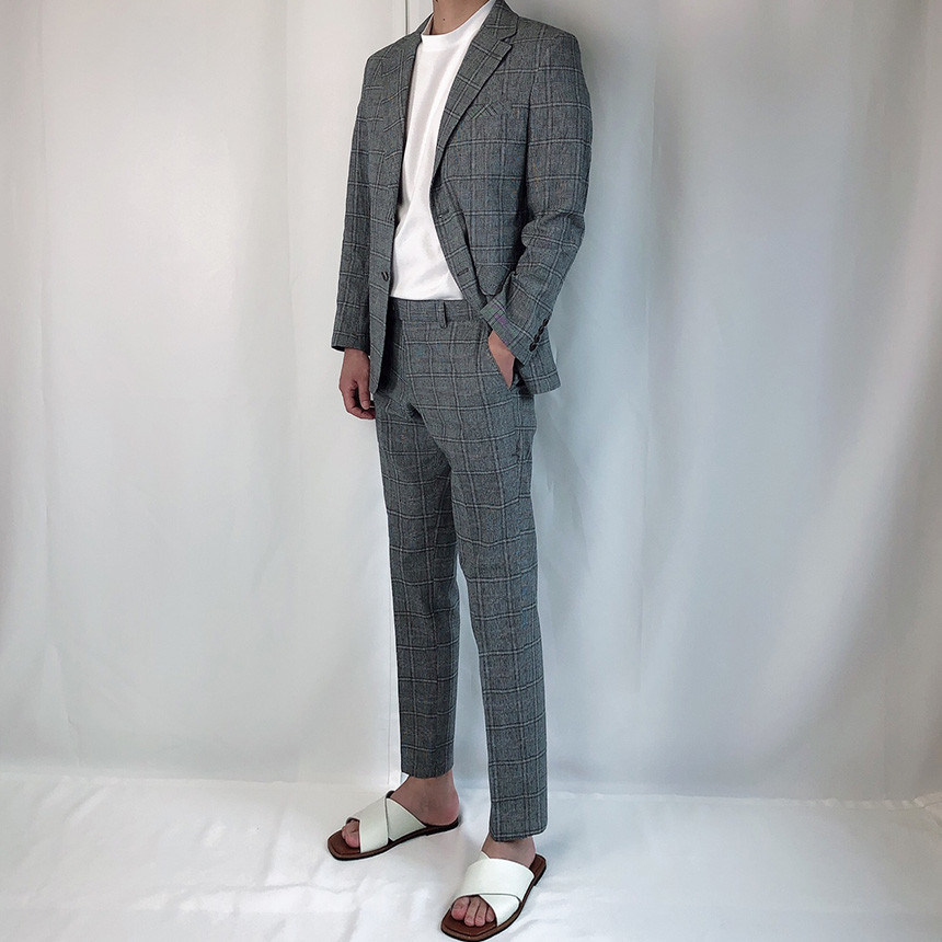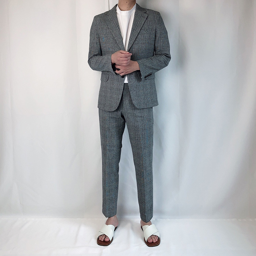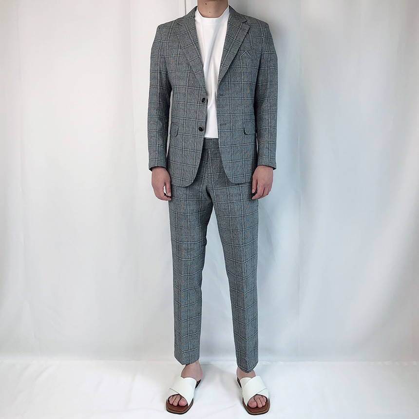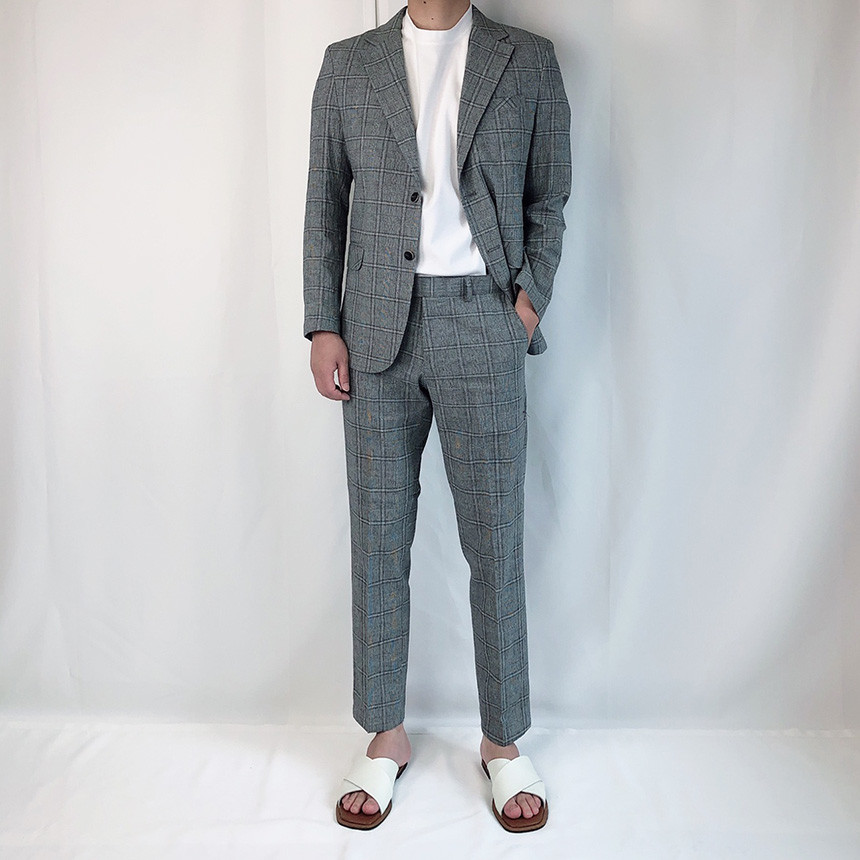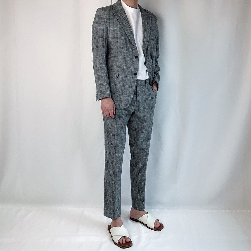 [1231] 진그레이 린넨 체크 여름 9부 슬랙스
