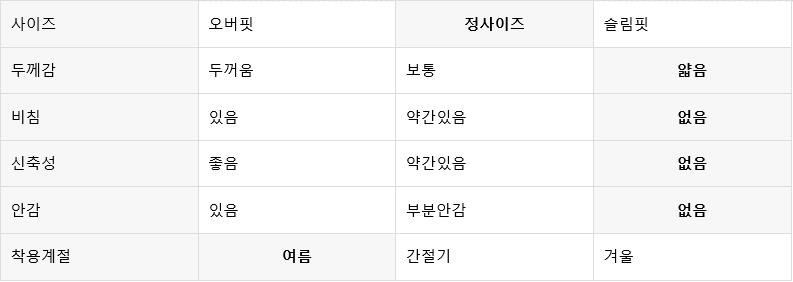 평소 입던 스타일과 달라 만족도가 낮을 수 있습니다