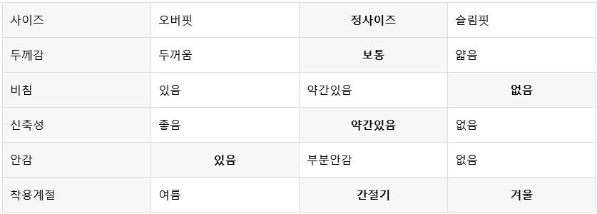 평소 입던 스타일과 달라 만족도가 낮을 수 있습니다