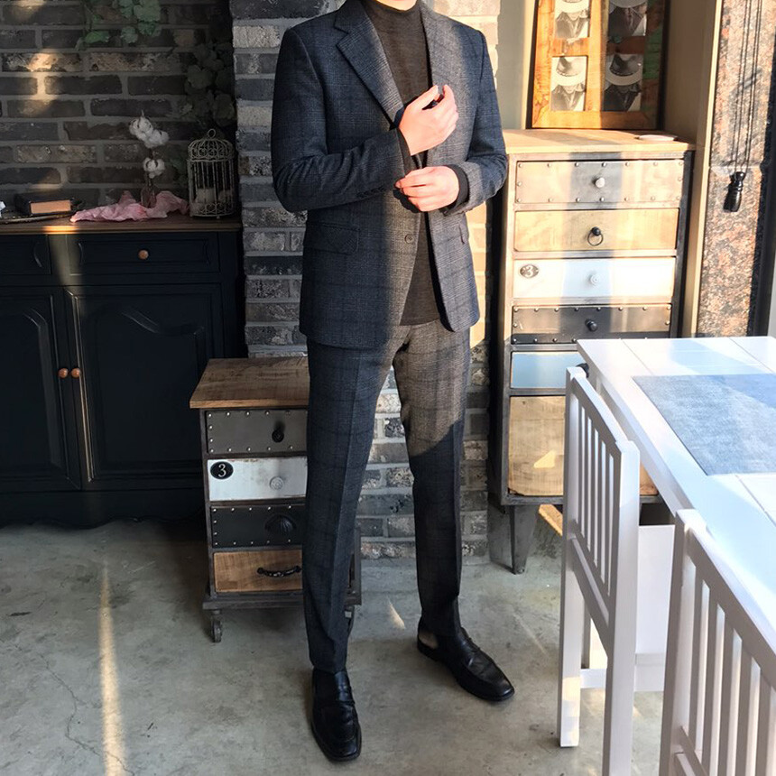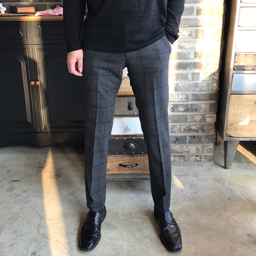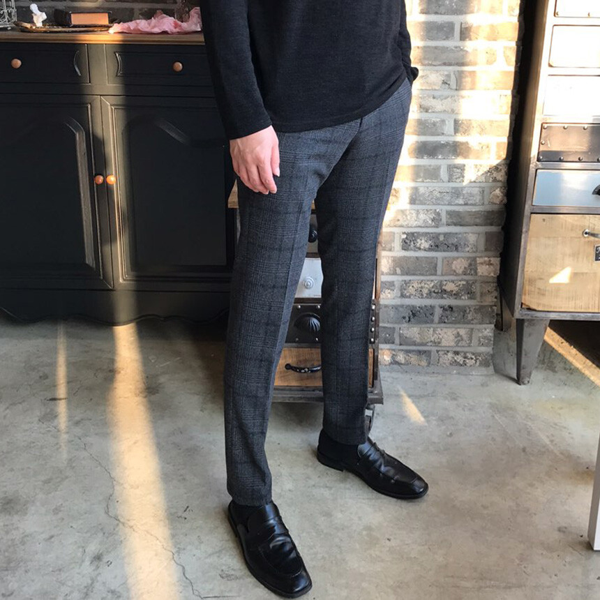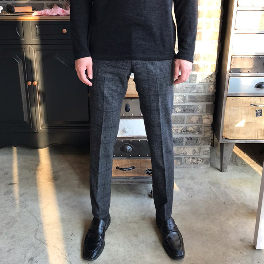 [BXAFLAW1538] 차콜 글렌체크 기모 울 슬랙스