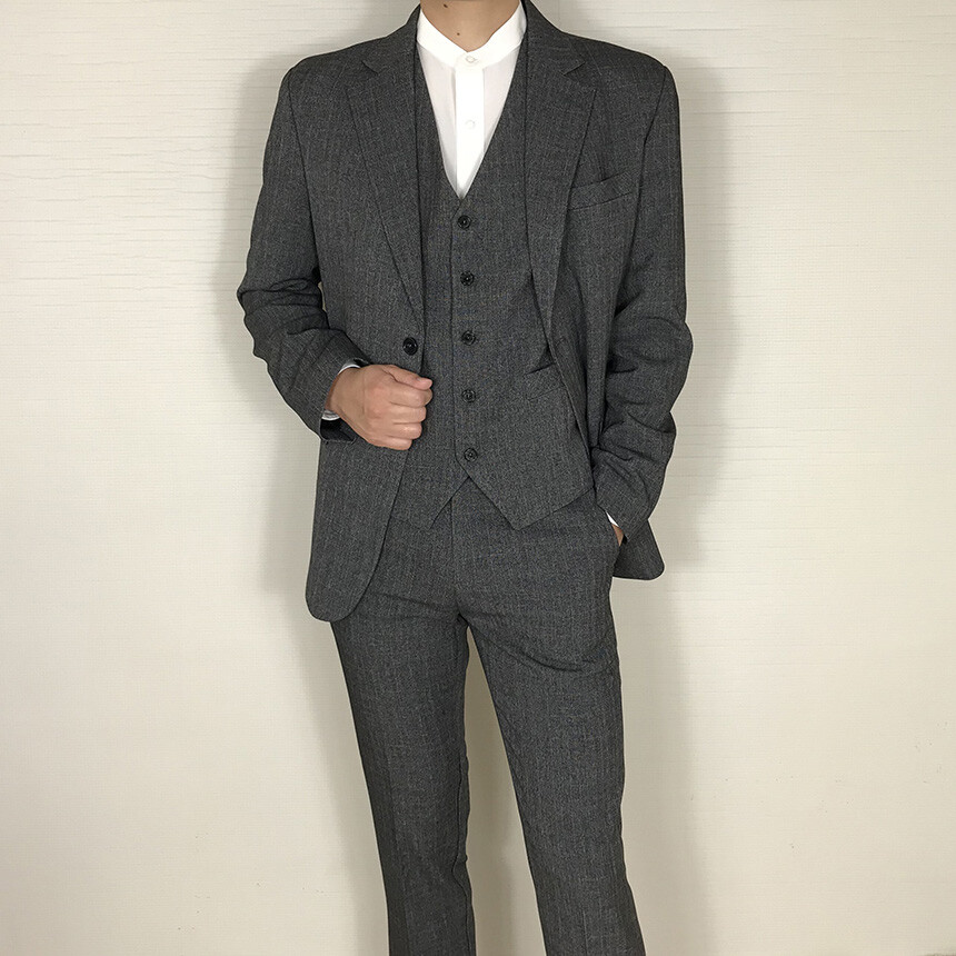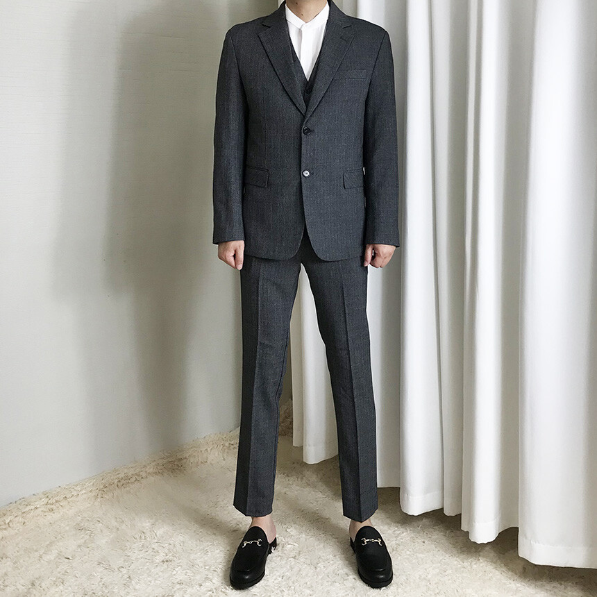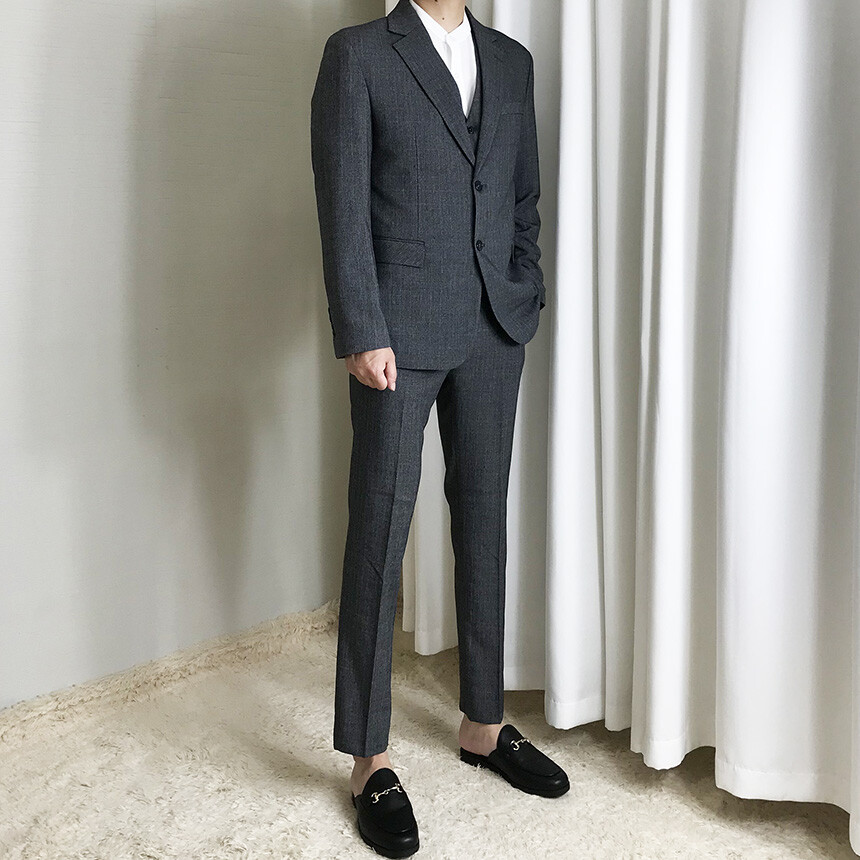 다크차콜 체크 쓰리피스 수트