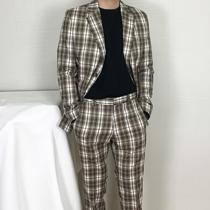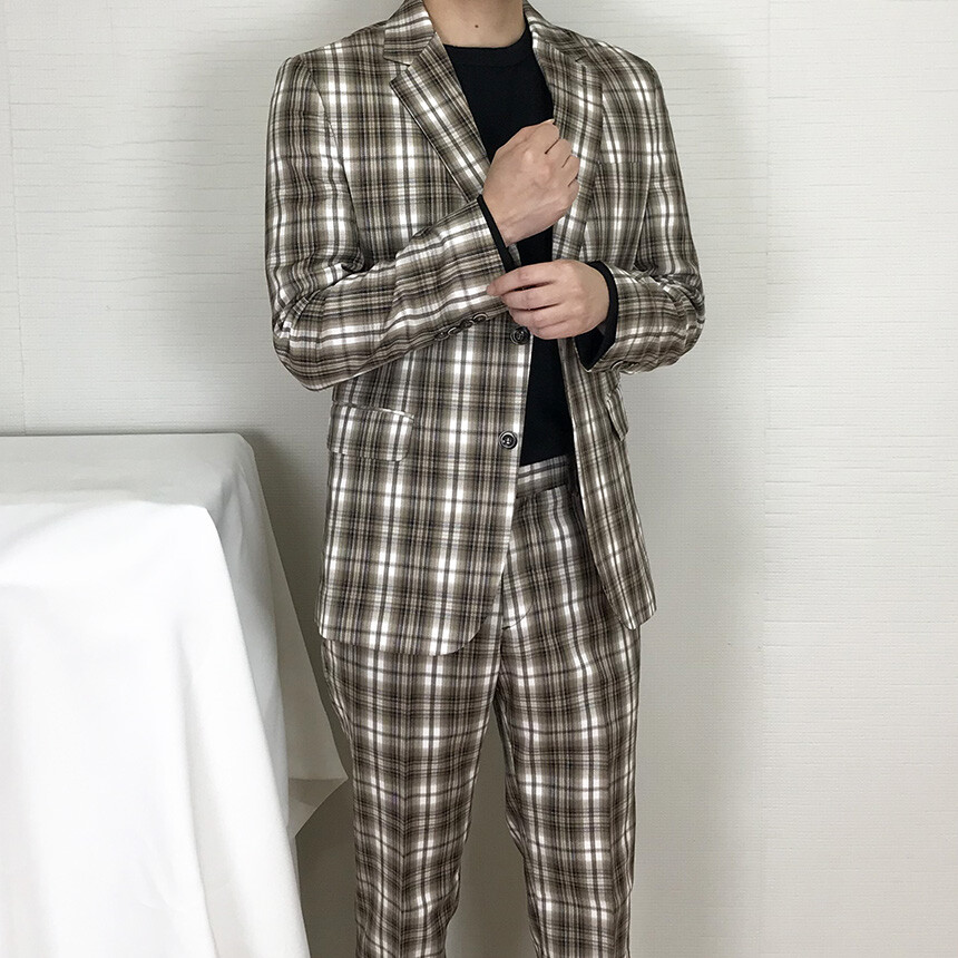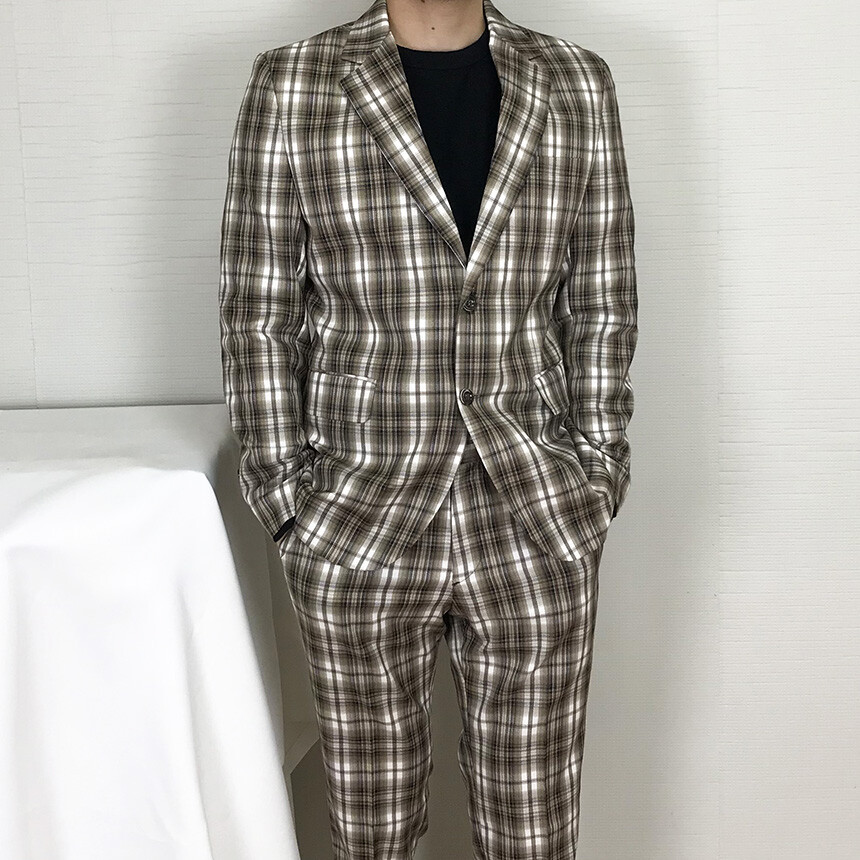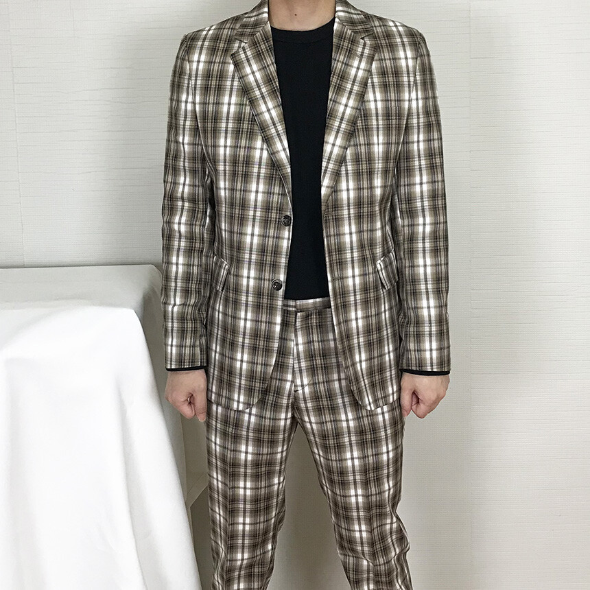 (autumn) 카키브라운 체크 슬림 클래식 수트 [FLCF1900]