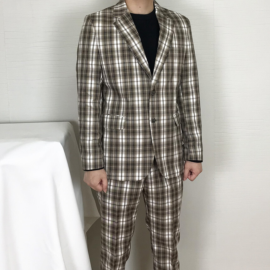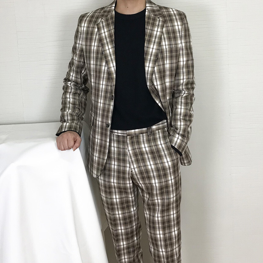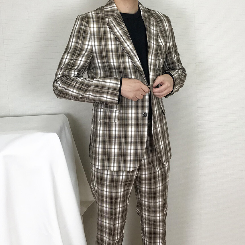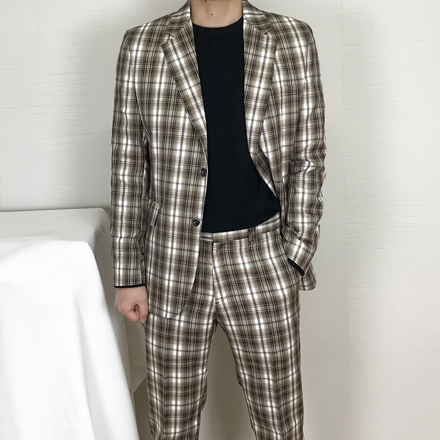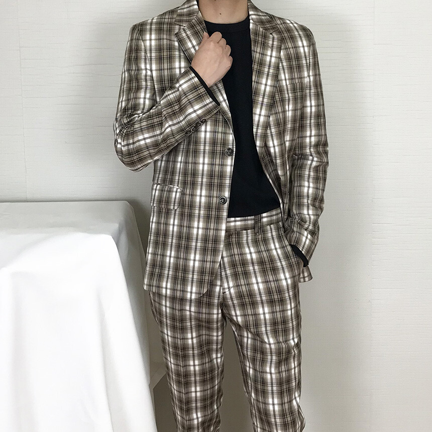 (autumn) 카키브라운 체크 슬림 클래식 수트 [FLCF1900]