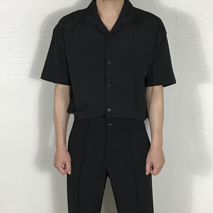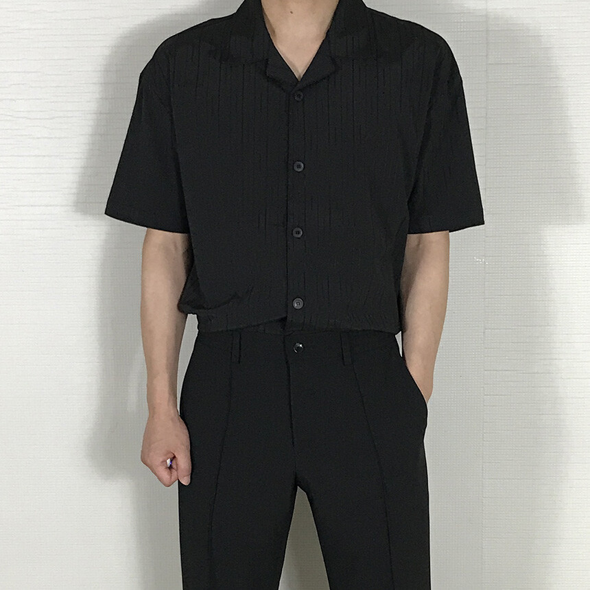 (summer) 세미오버핏 오픈카라 반팔셔츠(2col) [SSEM5021]