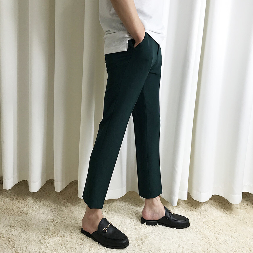 (간절기) 다크그린 슬림 세미 9부 슬랙스