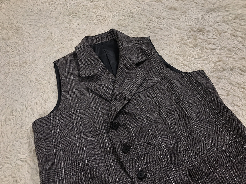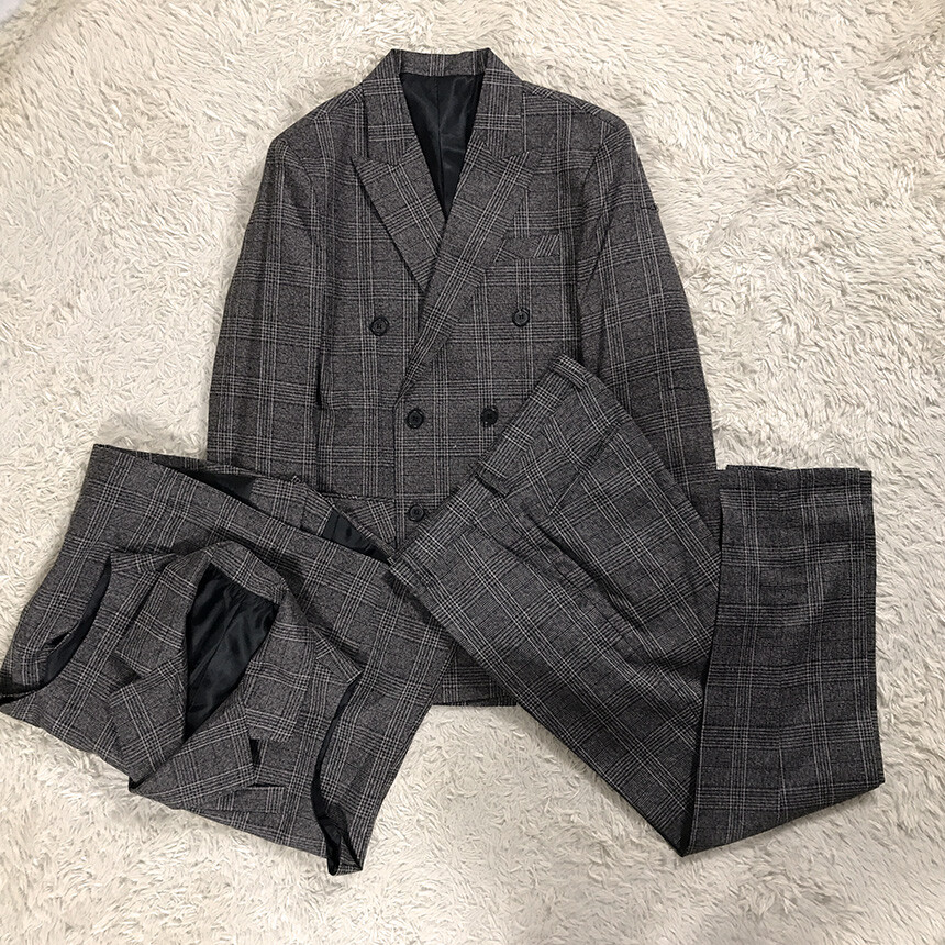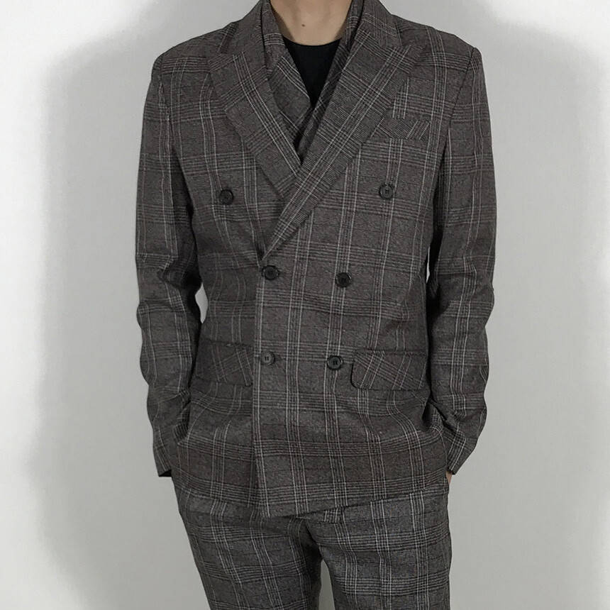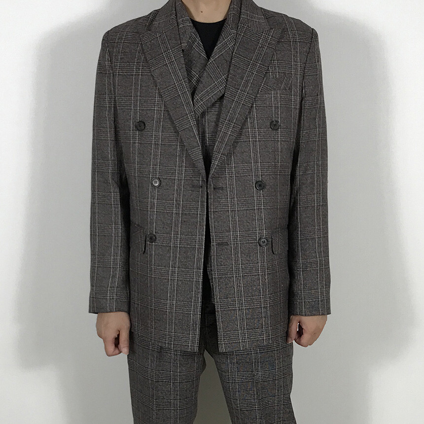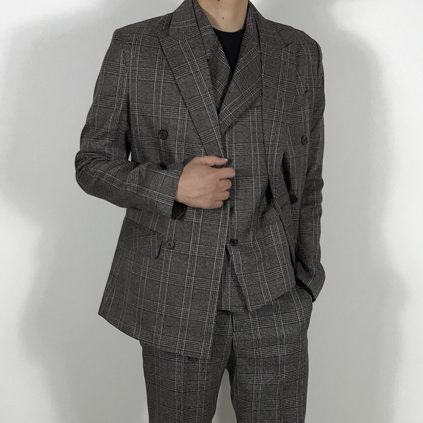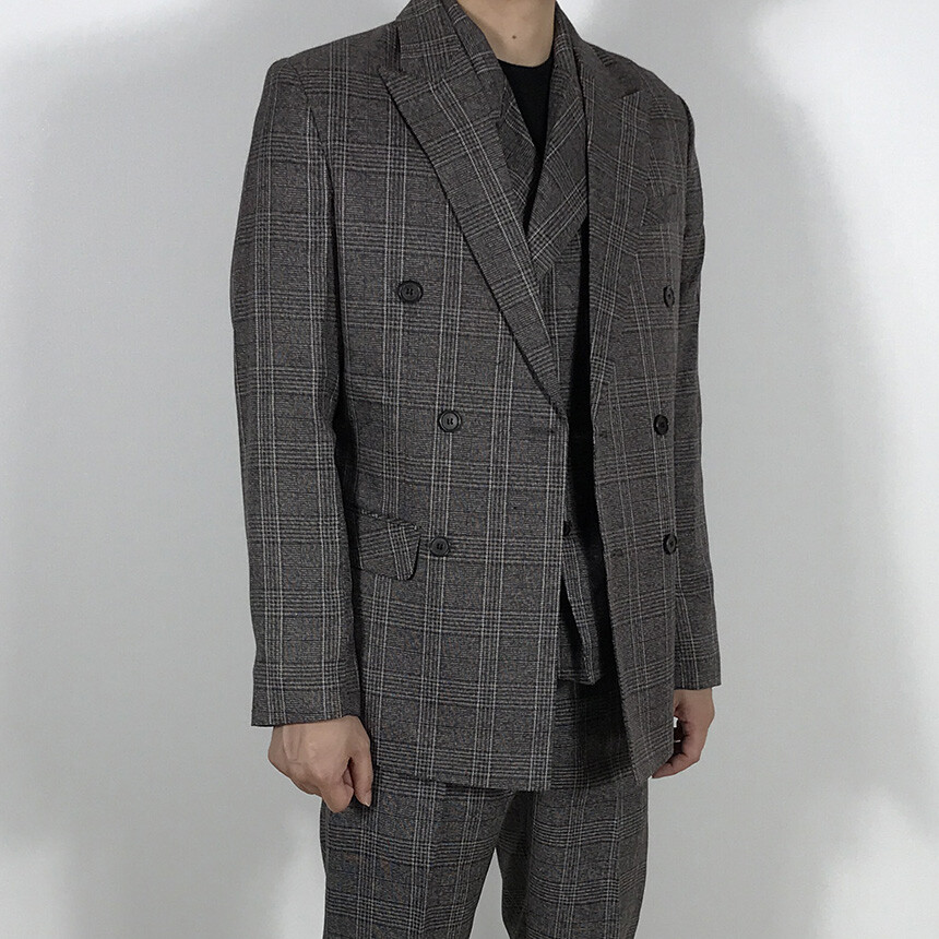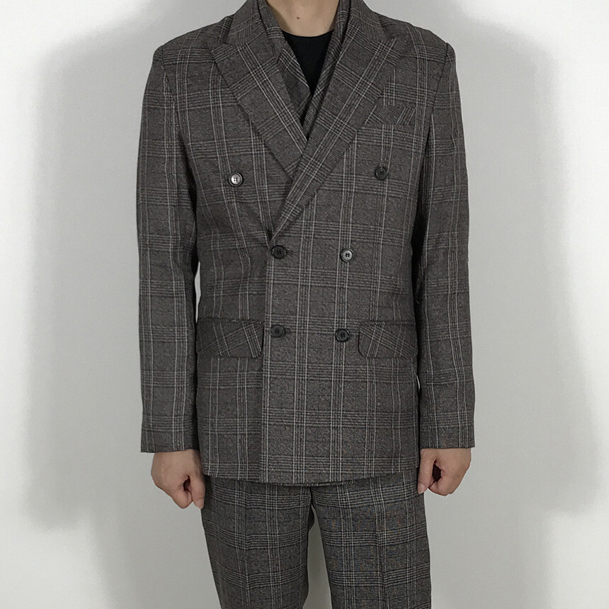 슬림핏 글랜체크 회브라운 쓰리피스 더블수트