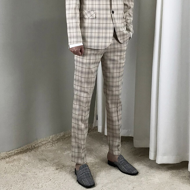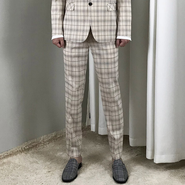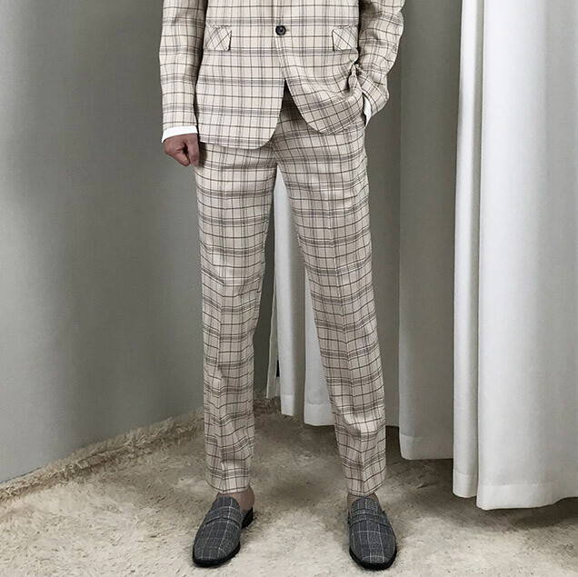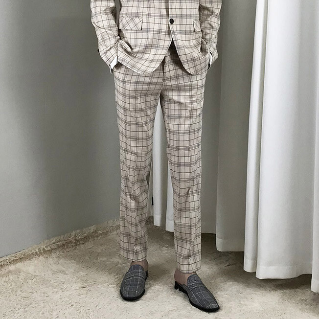 (summer) 썸머 체크 쿨링 9부 슬랙스(3col)