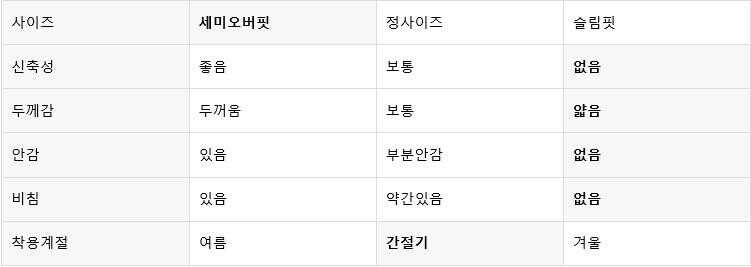 평소 입던 스타일과 달라 만족도가 낮을 수 있습니다