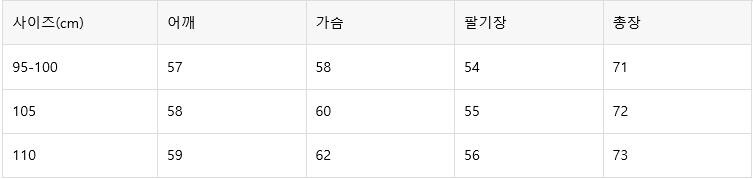예시)본인사이즈100이면 100-105사이즈 구매 권장