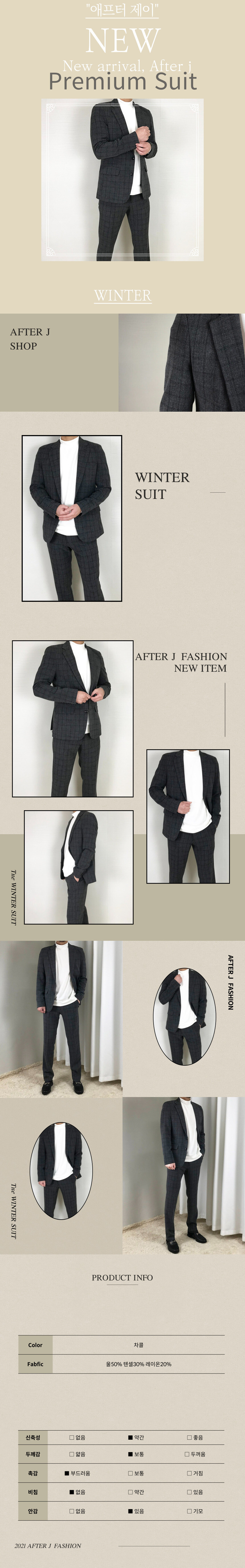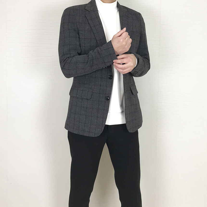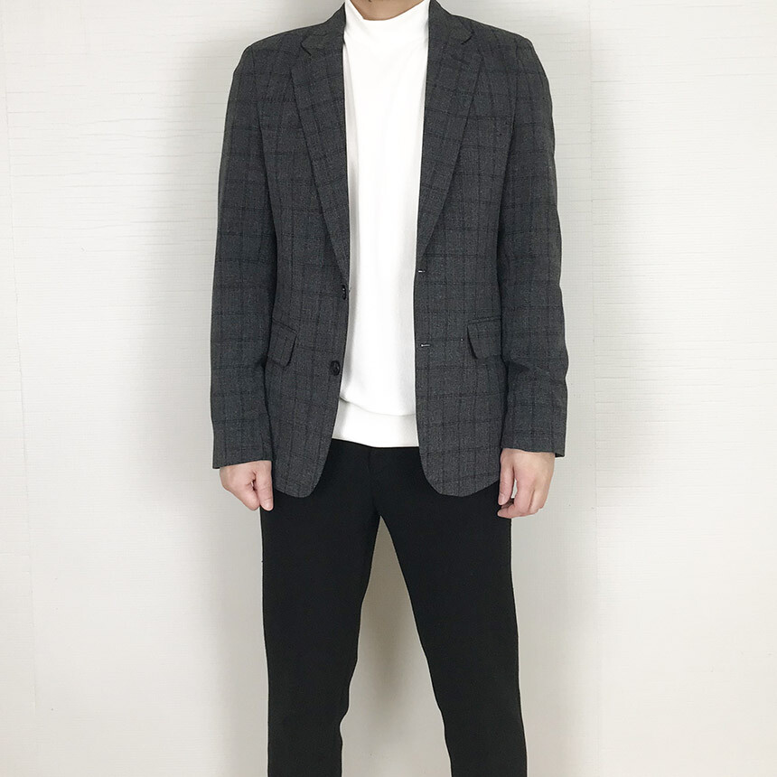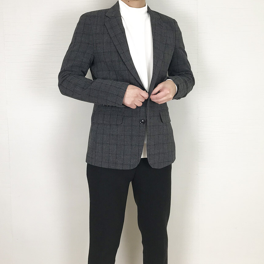 (겨울) 차콜 체크 울50% 슬림 자켓
