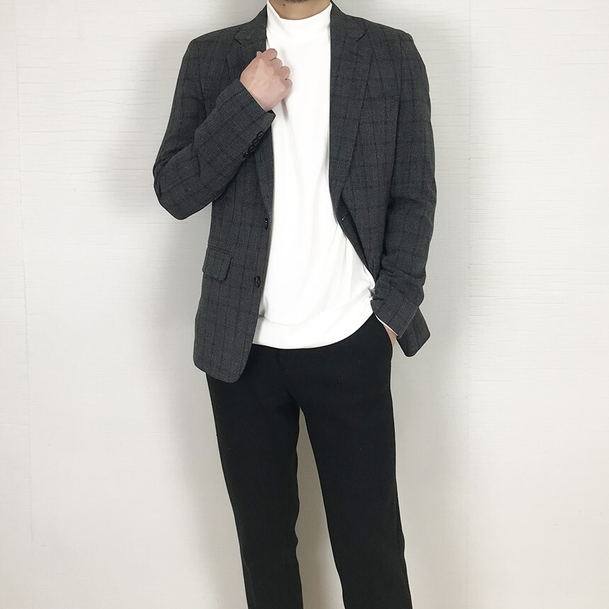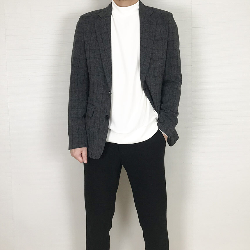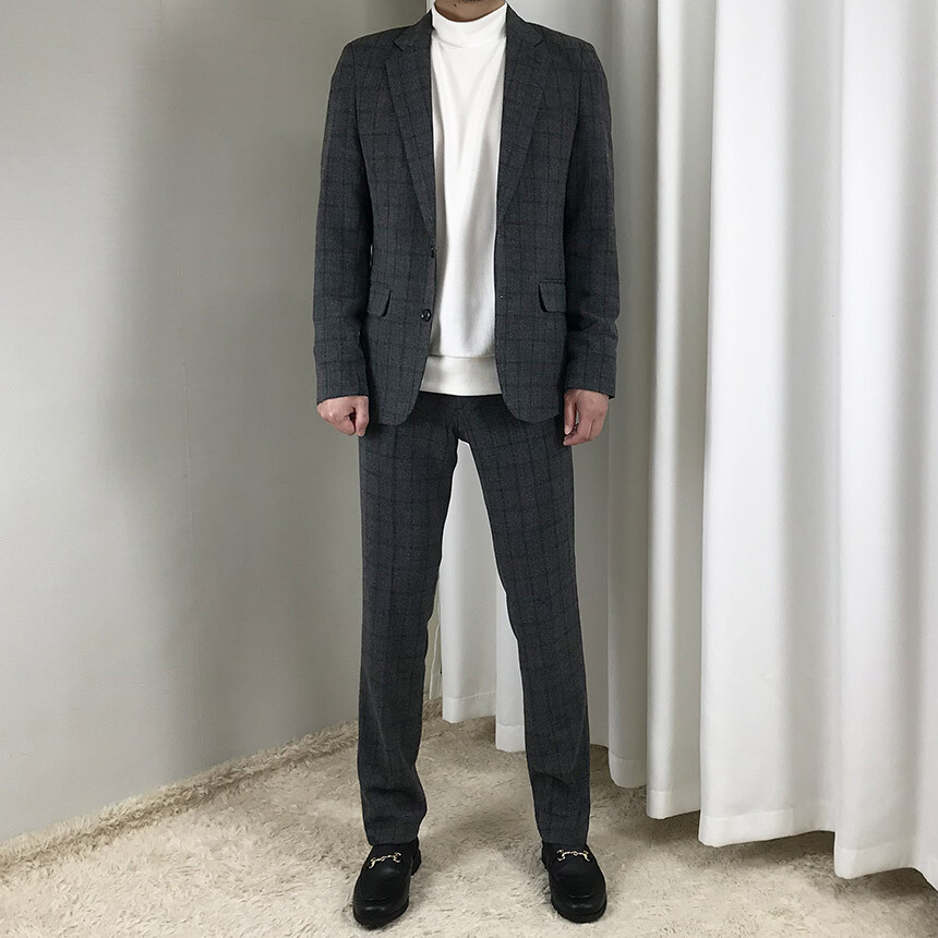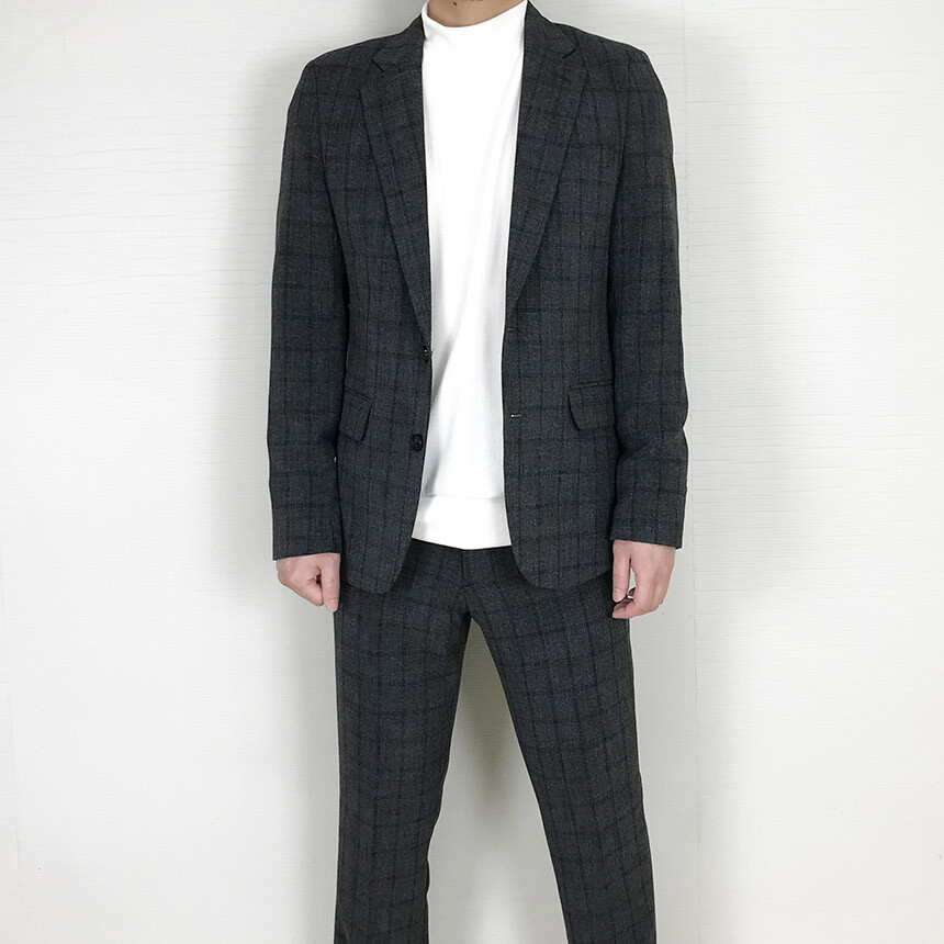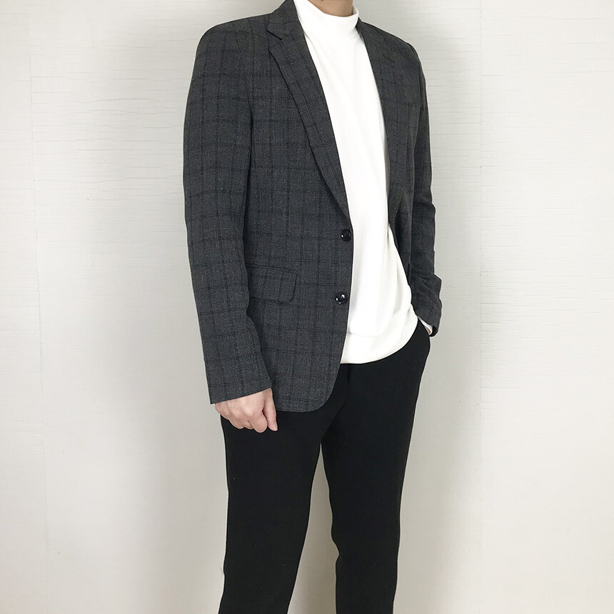 (겨울) 차콜 체크 울50% 슬림 자켓