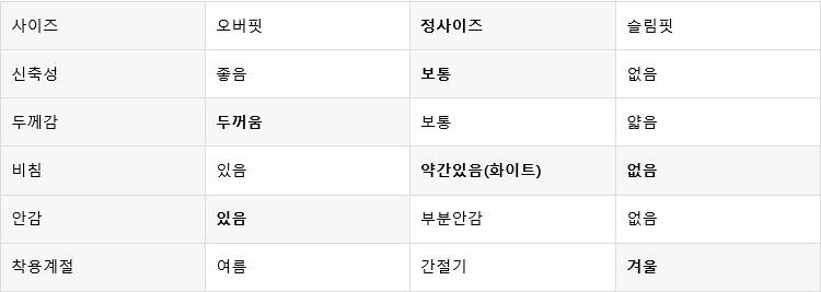 평소 입던 스타일과 달라 만족도가 낮을 수 있습니다