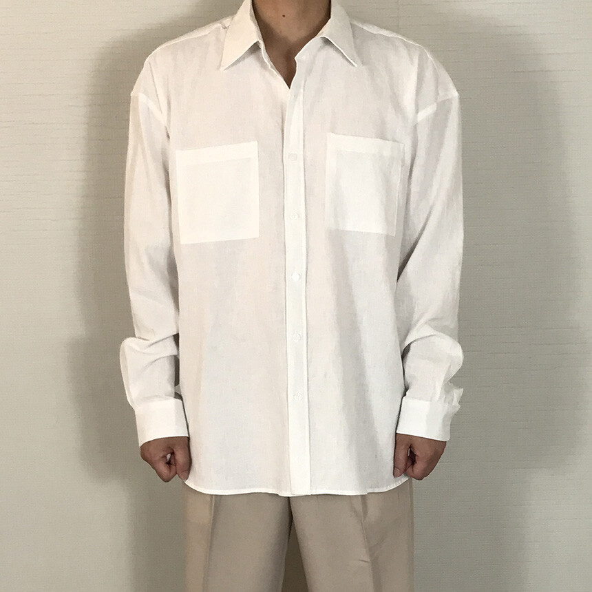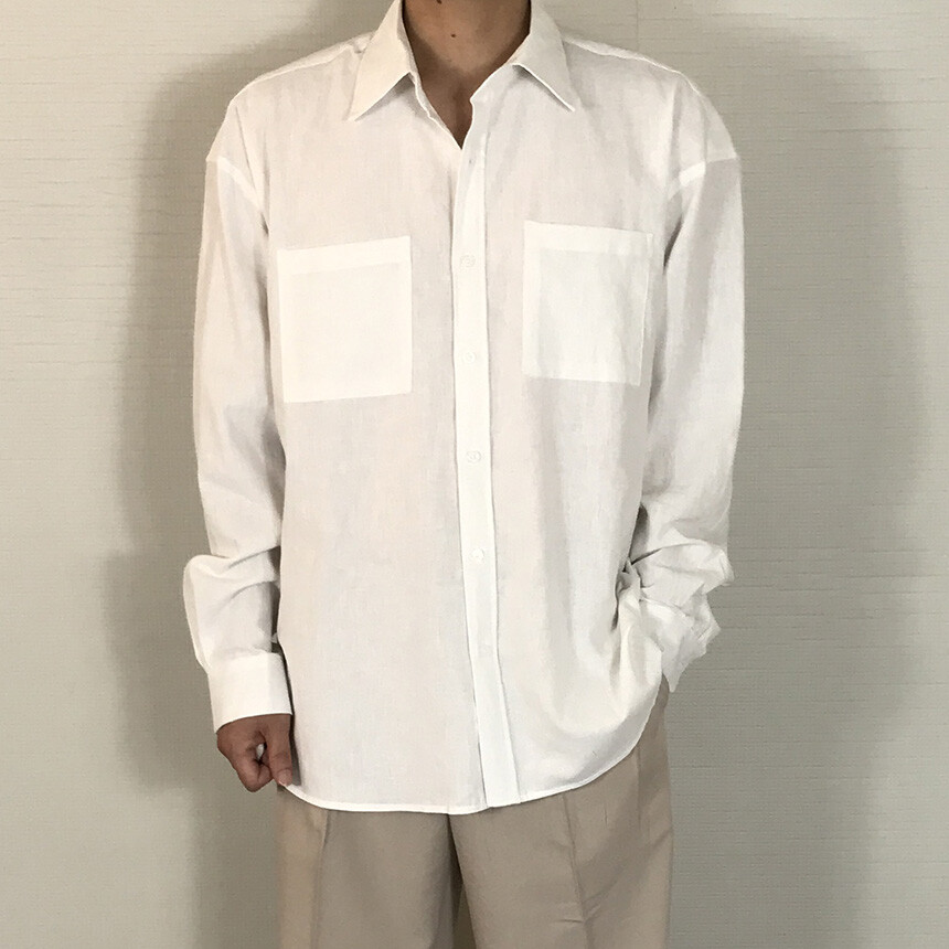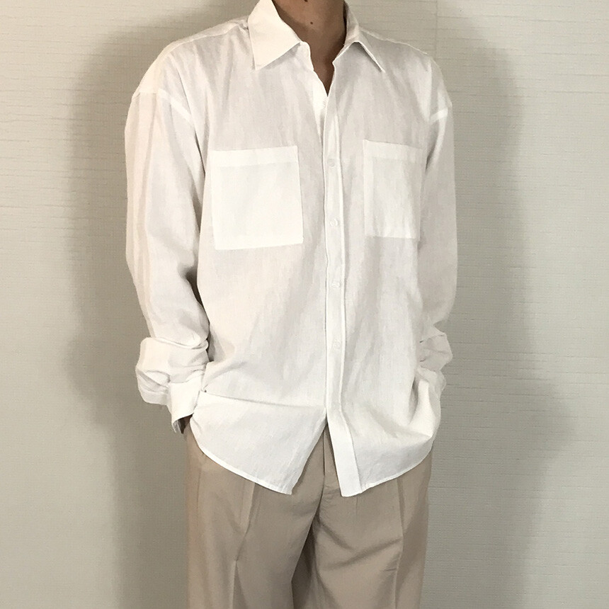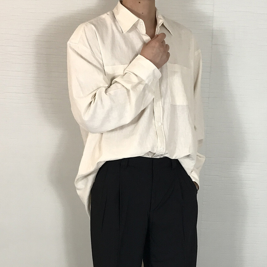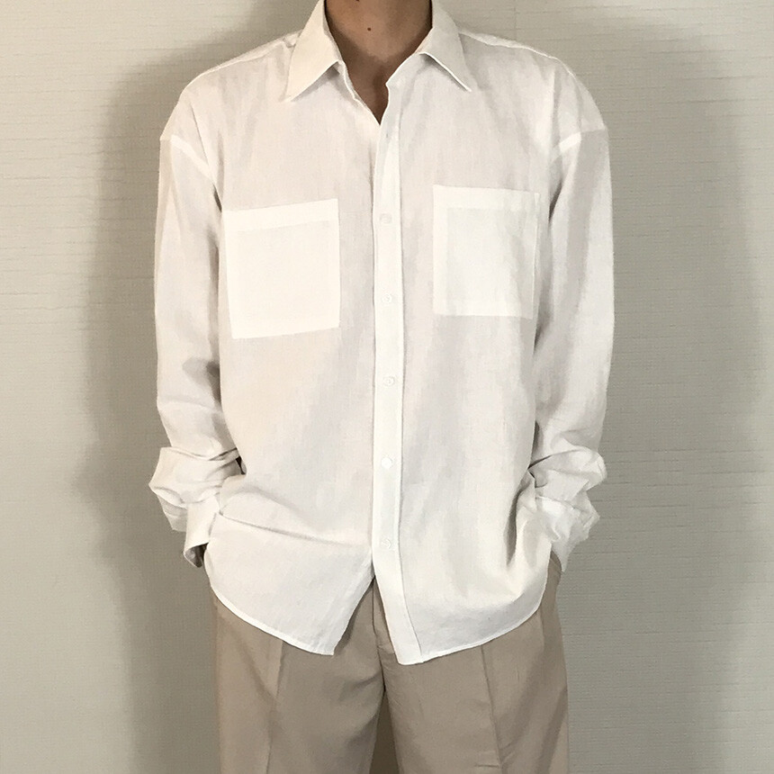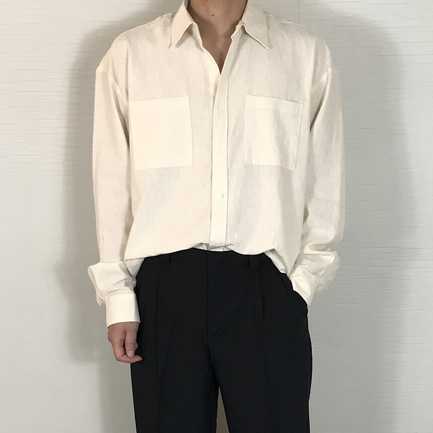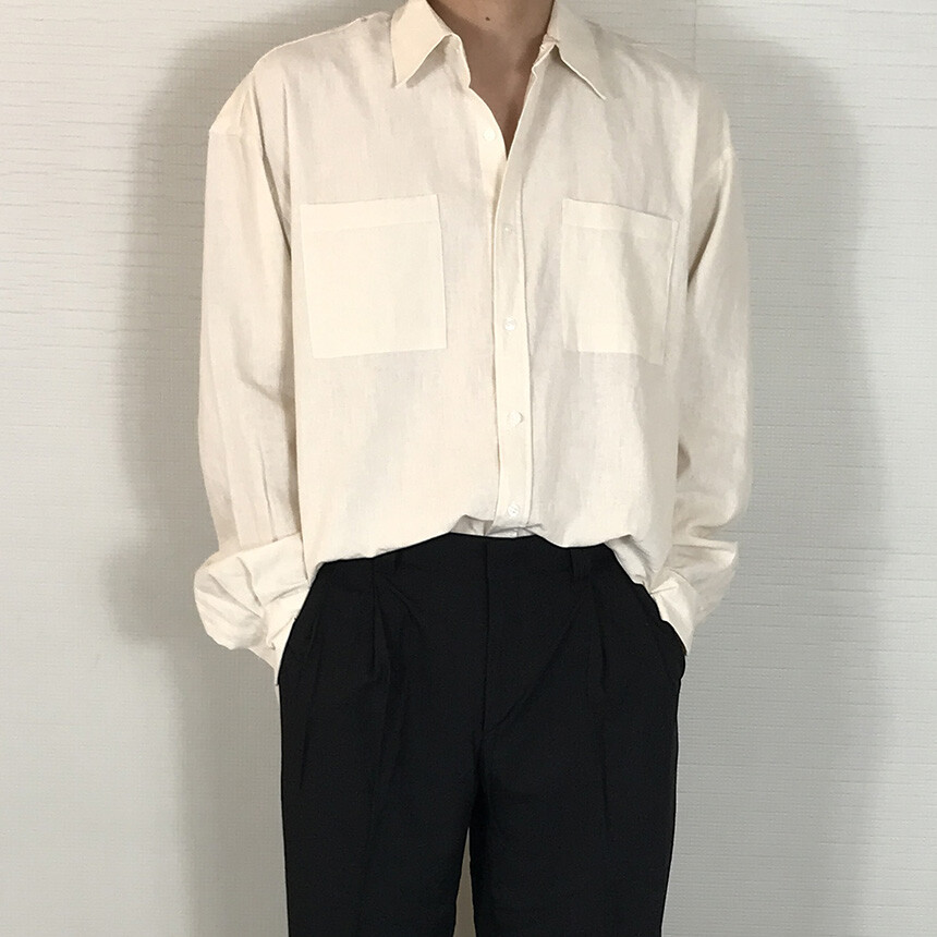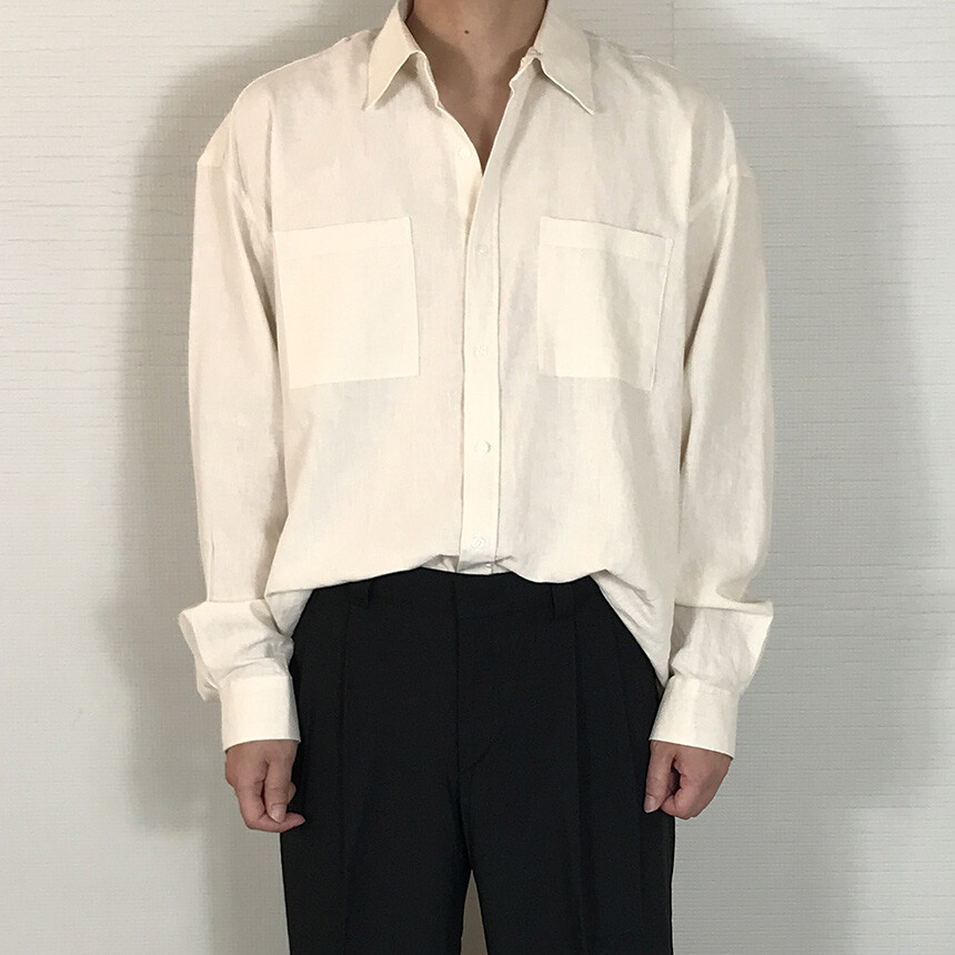 오버핏 린넨 투포켓 긴팔셔츠