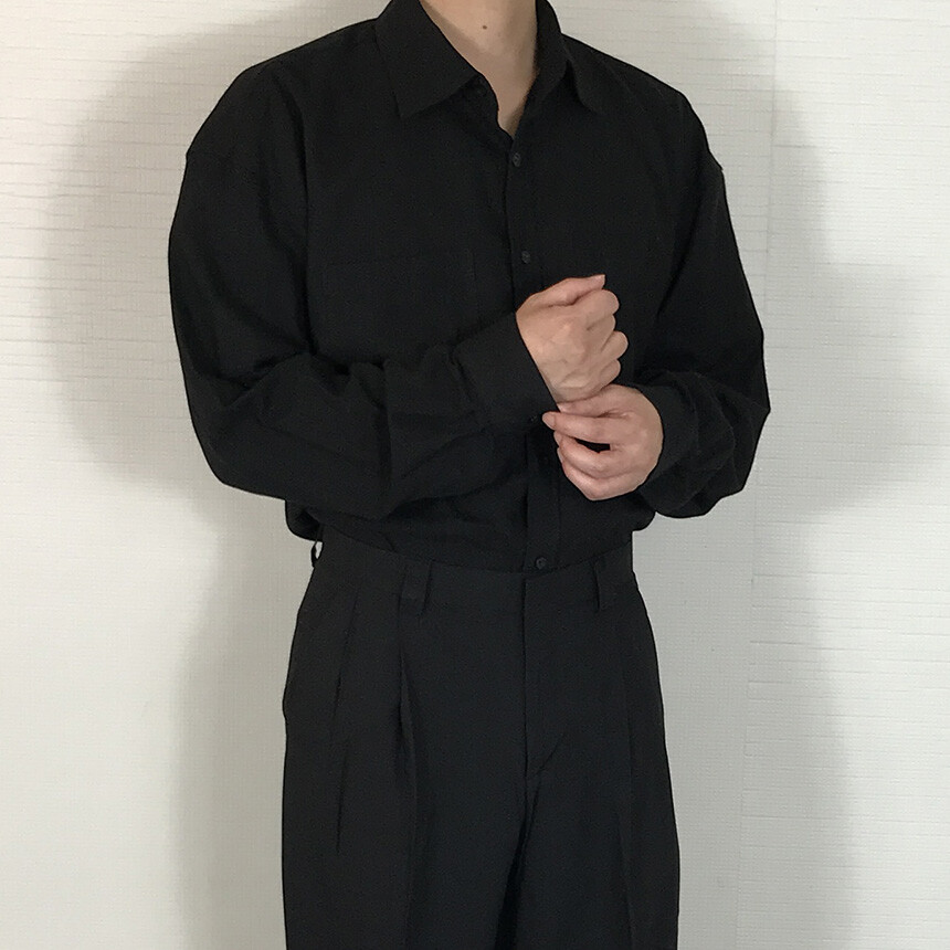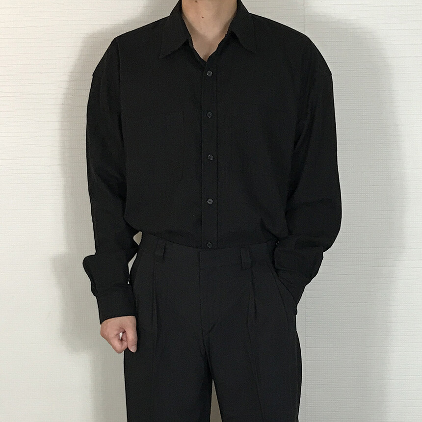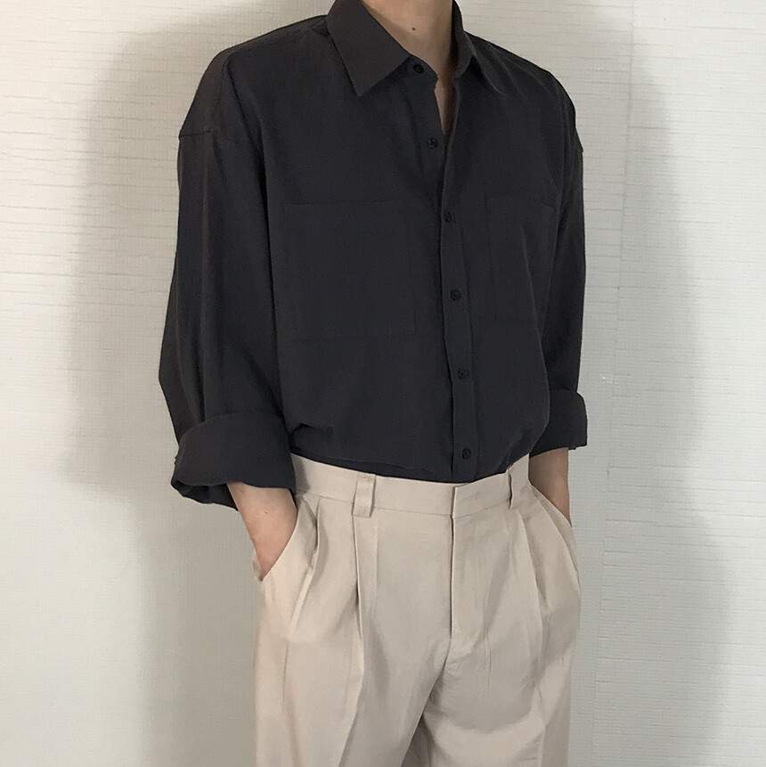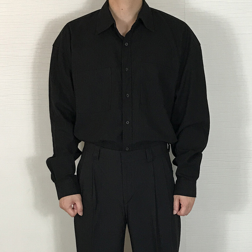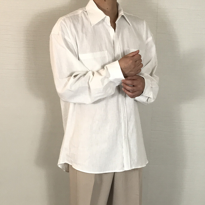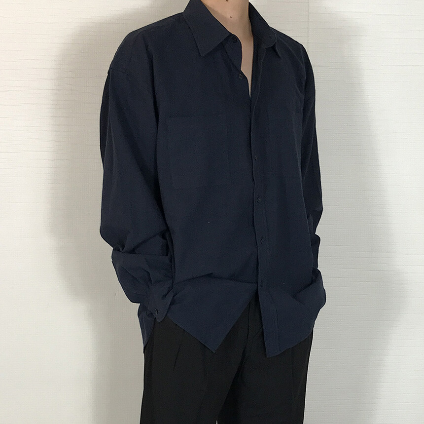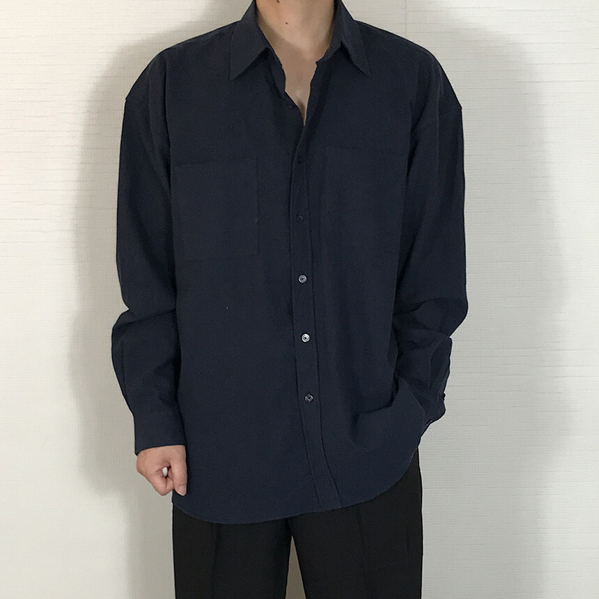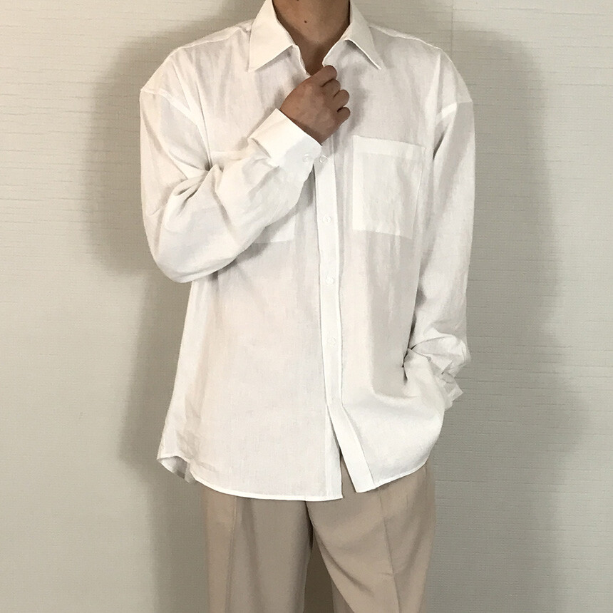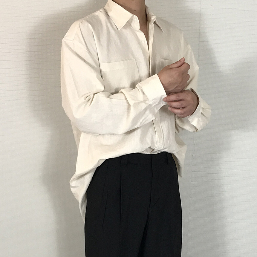 오버핏 린넨 투포켓 긴팔셔츠