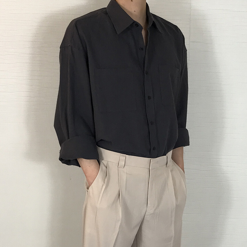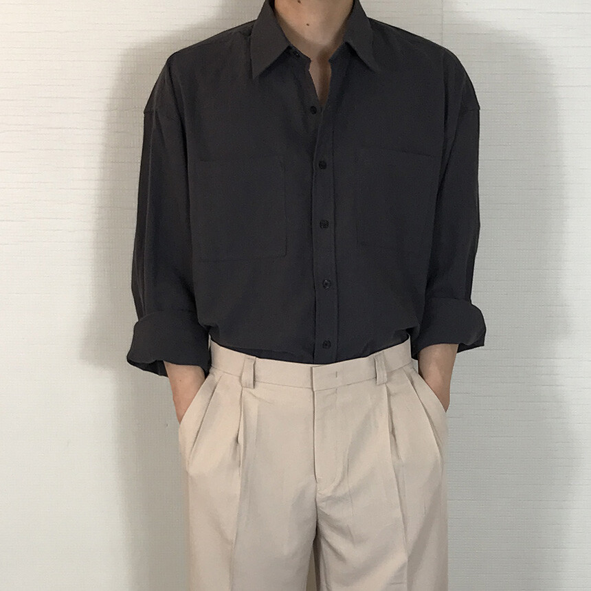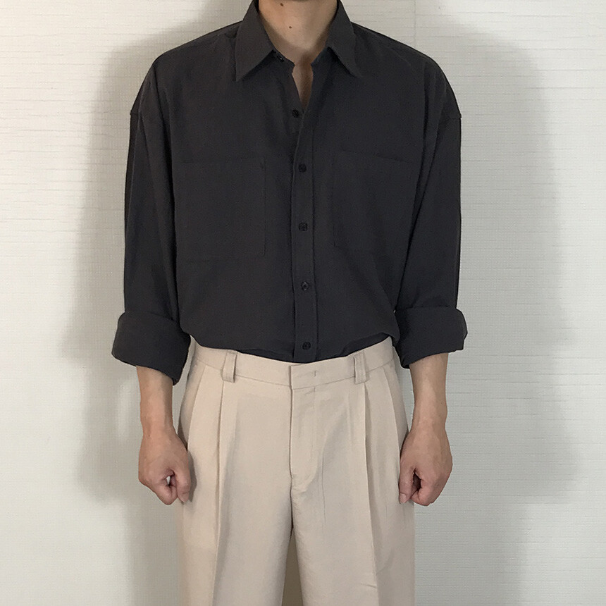 (간절기) 오버핏 린넨 투포켓 긴팔셔츠(5col) [SLEM5020]