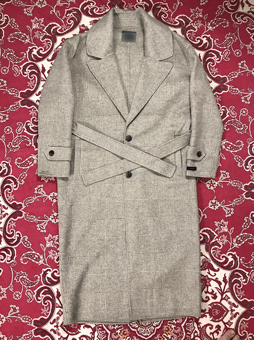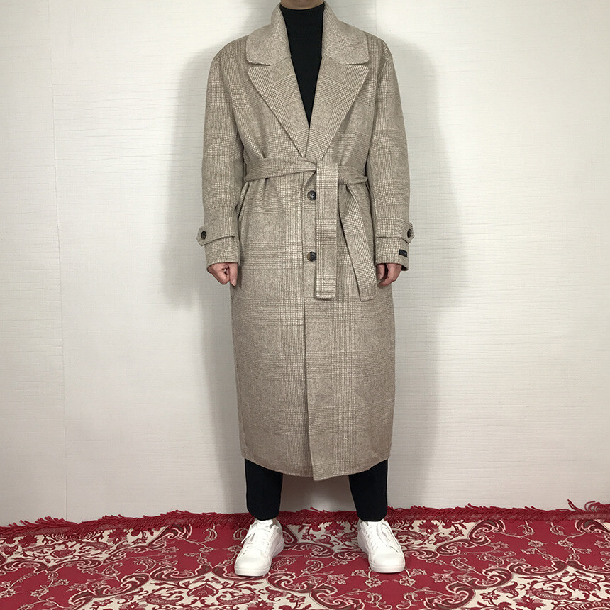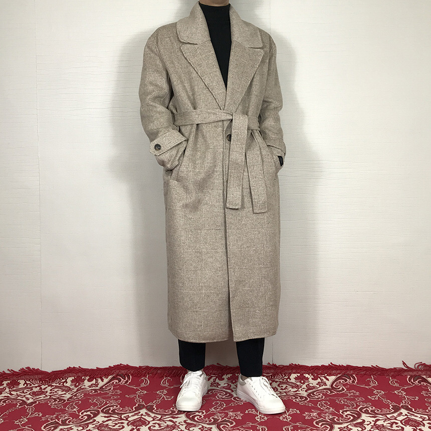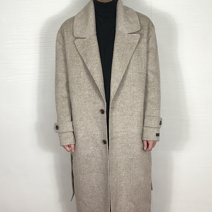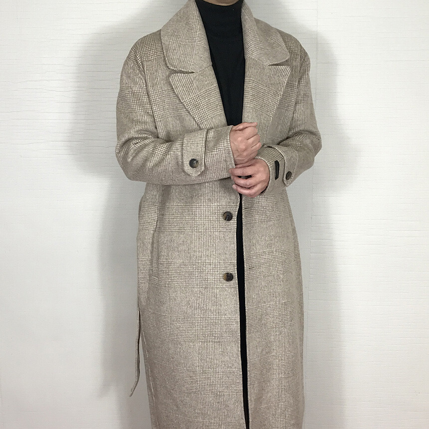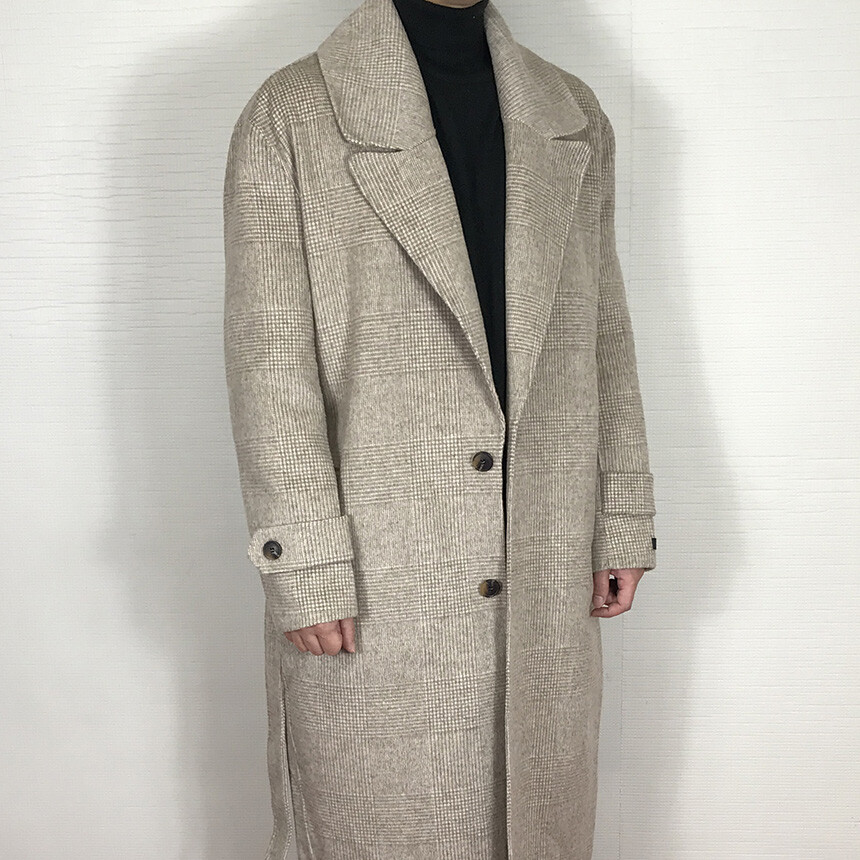 오버핏라인 체크베이지 핸드메이드 로브코트
