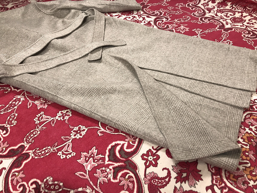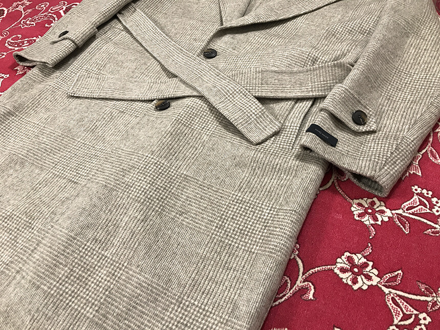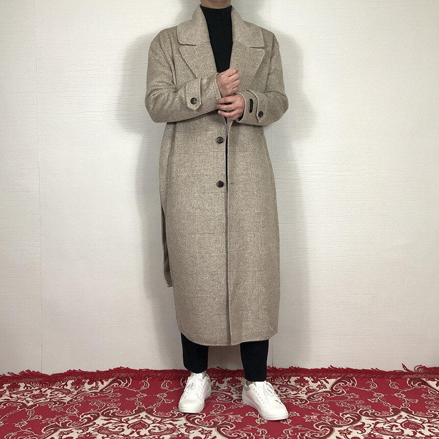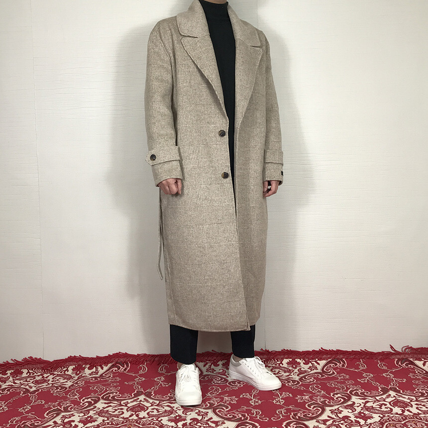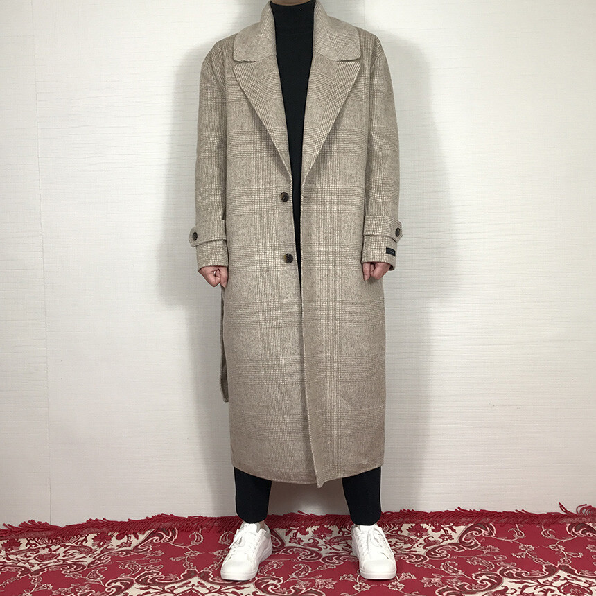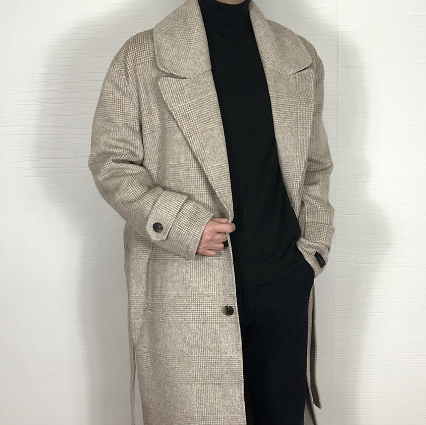 오버핏라인 체크베이지 핸드메이드 로브코트