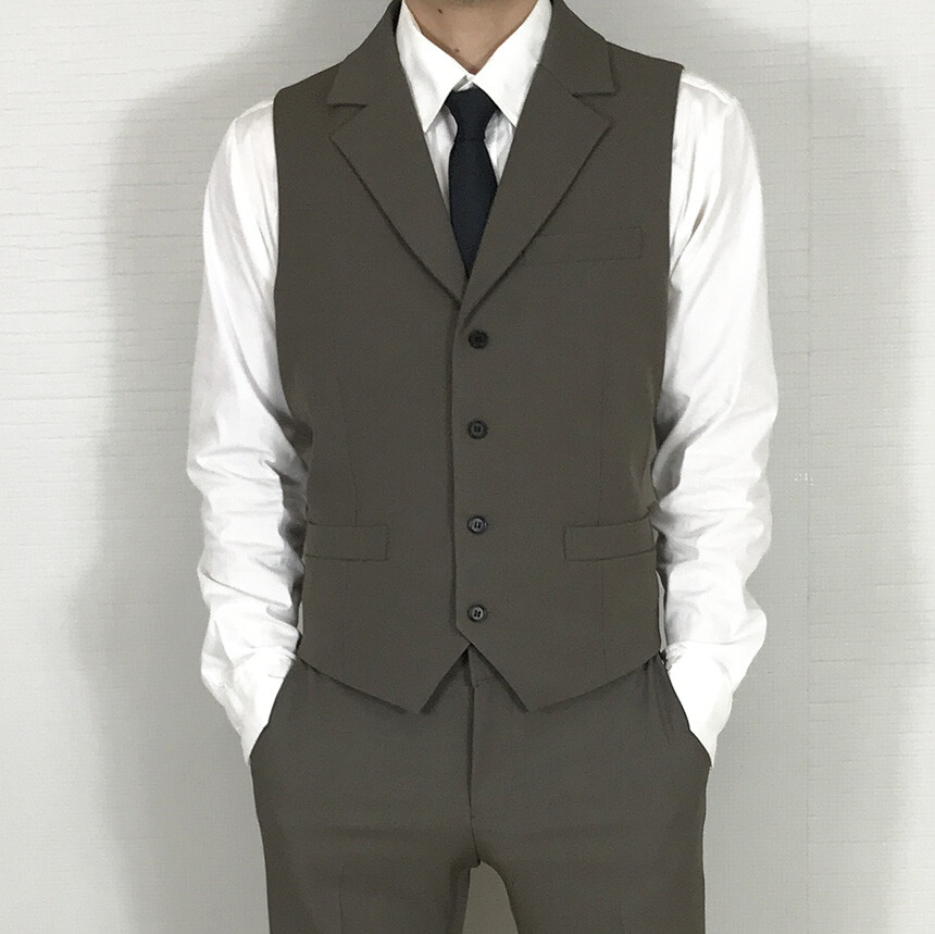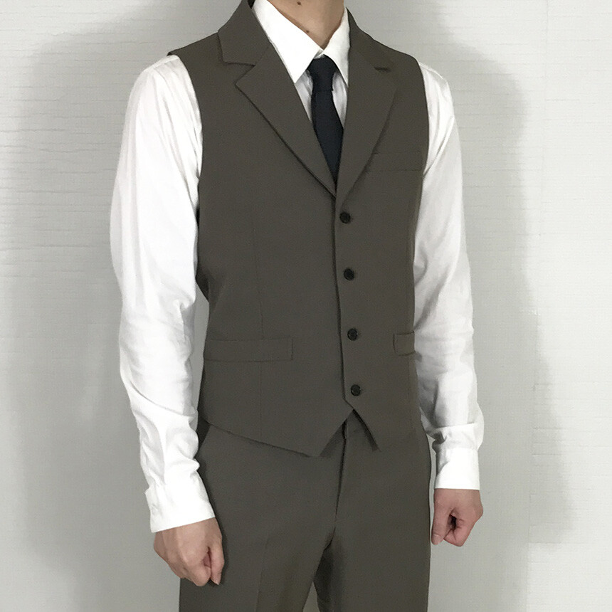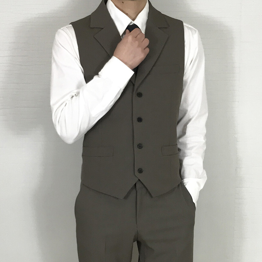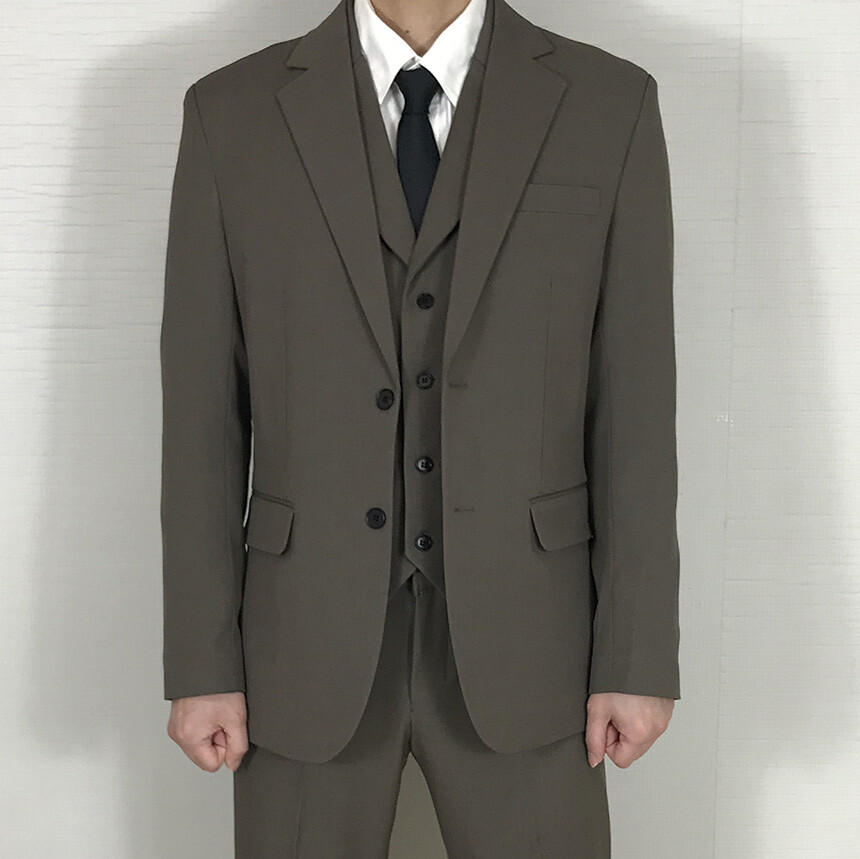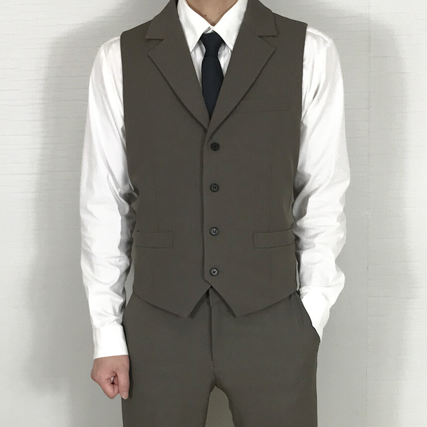 스탠다드핏 카키 카라조끼 캐주얼정장