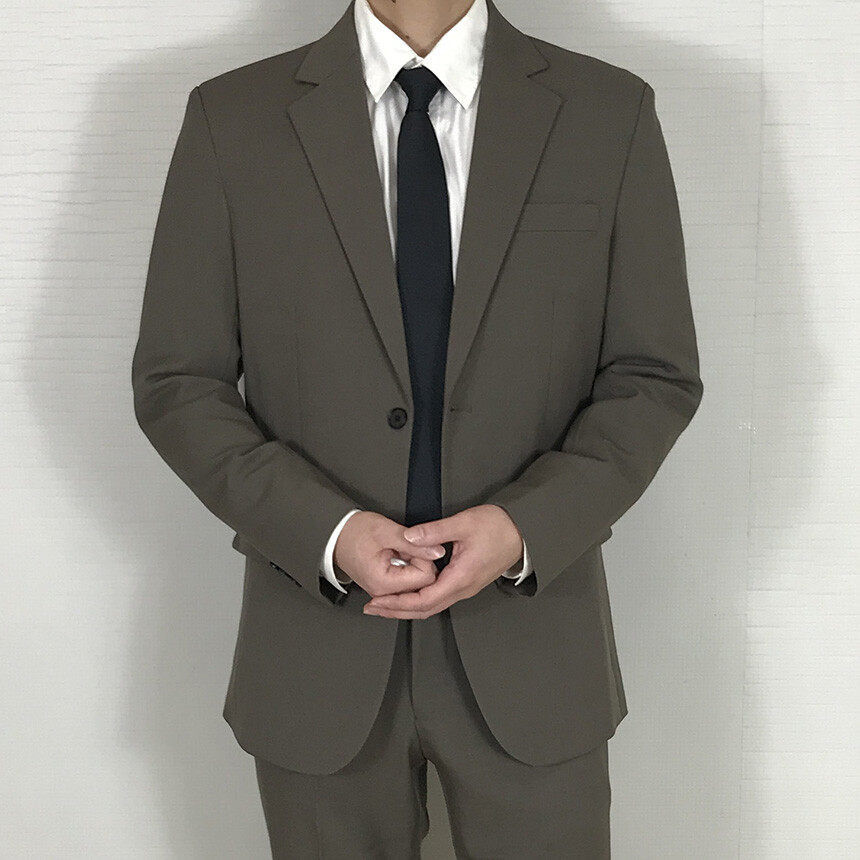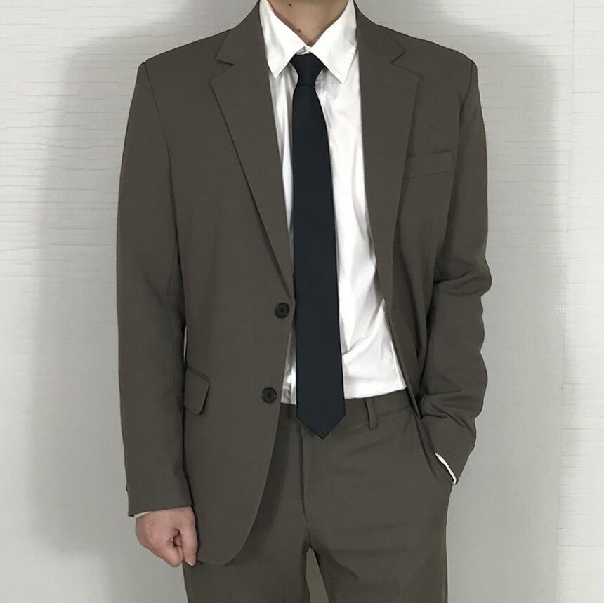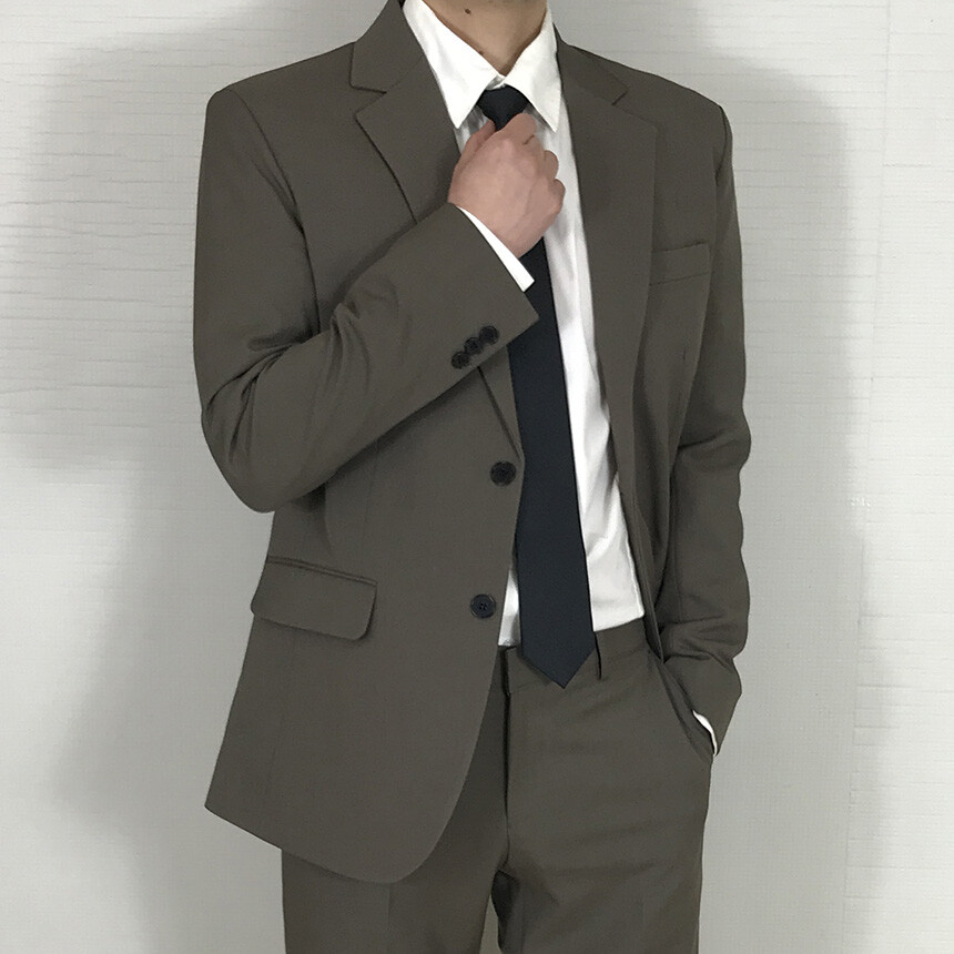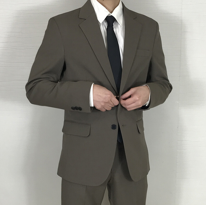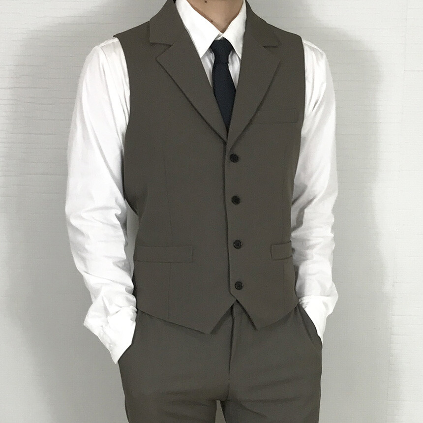 스탠다드핏 카키 카라조끼 캐주얼정장