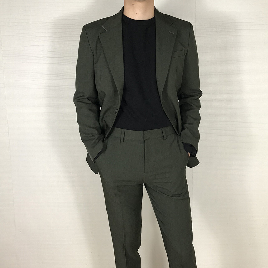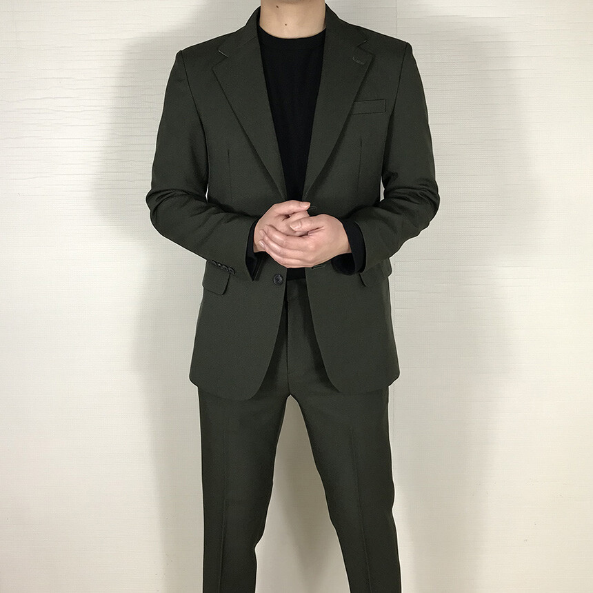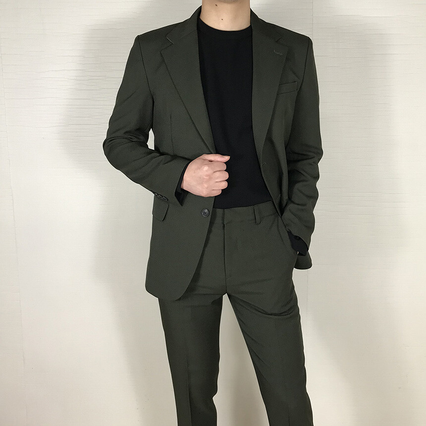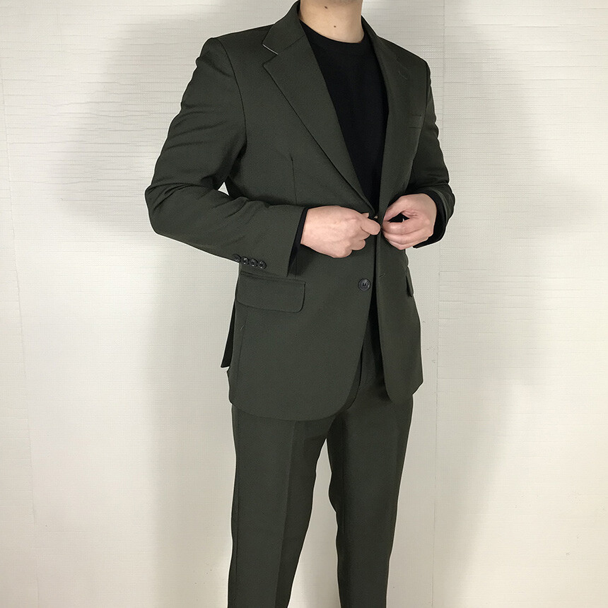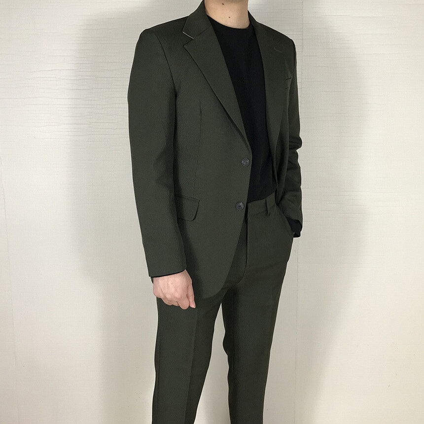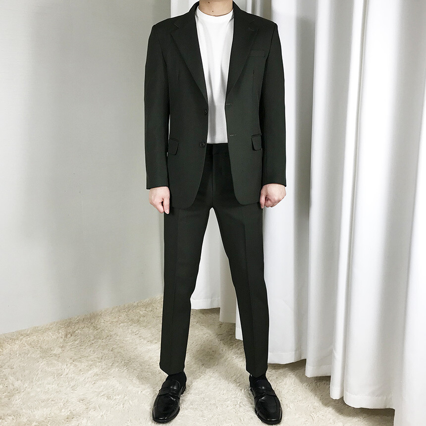 (Autumn) 슬림핏 카키 솔리드 세미정장세트 [1567]
