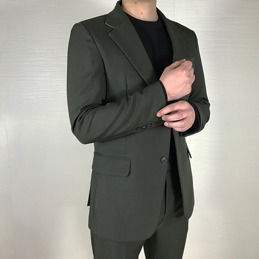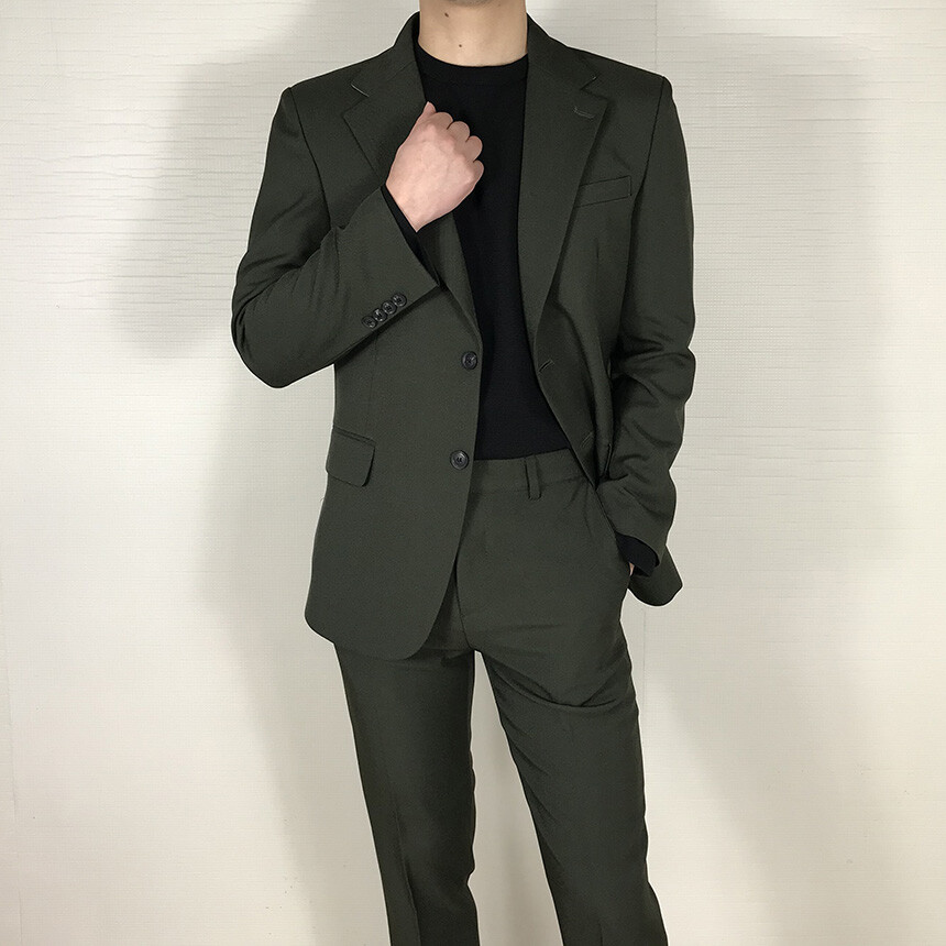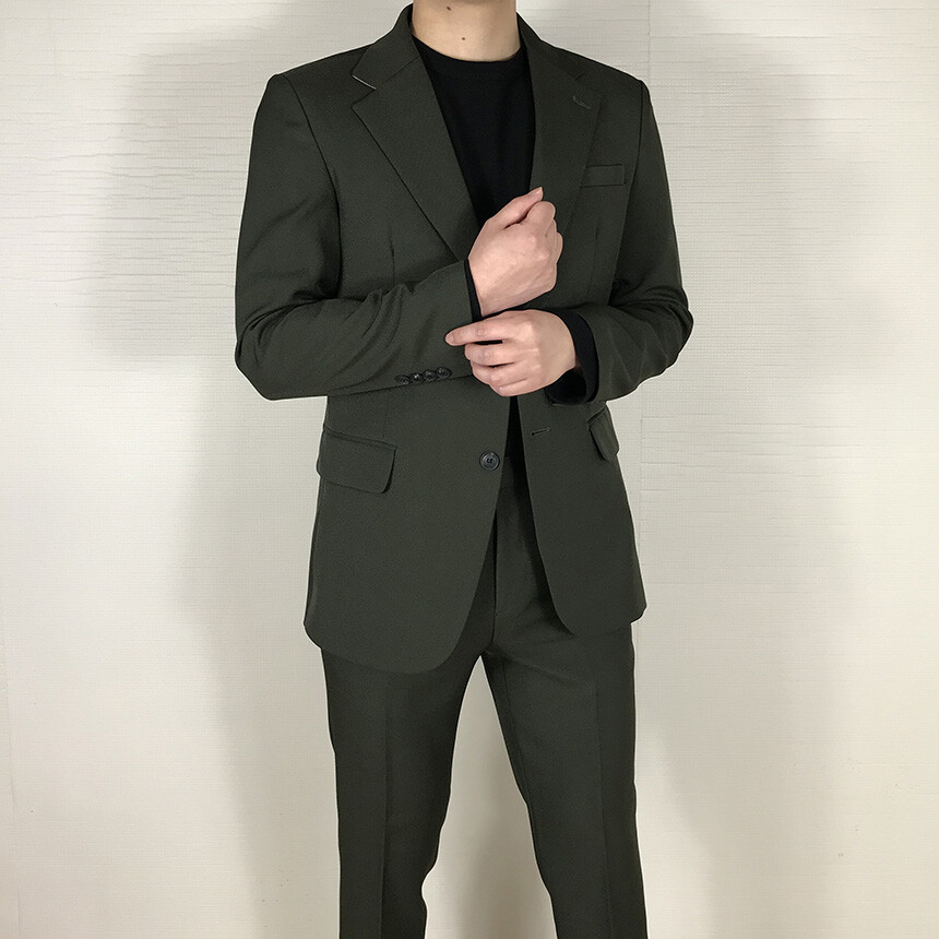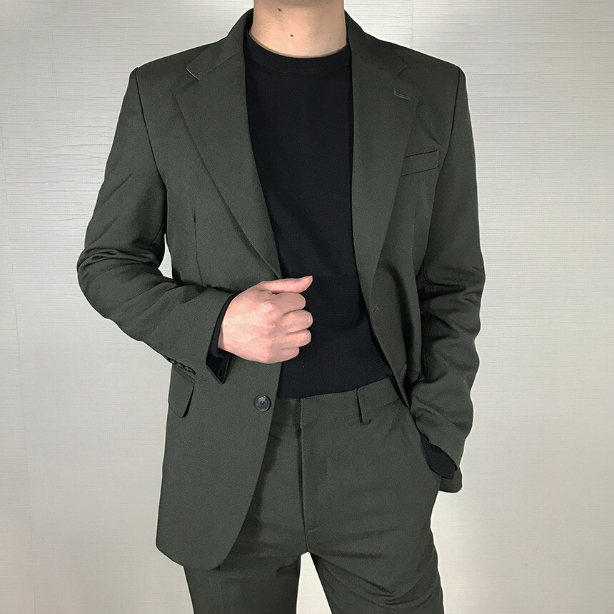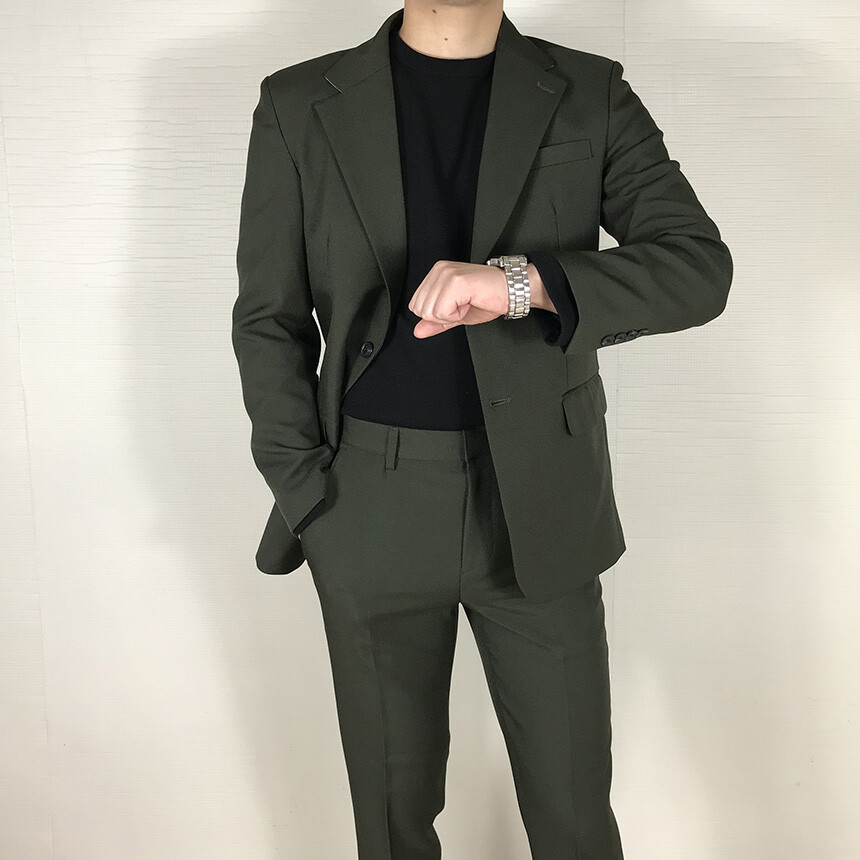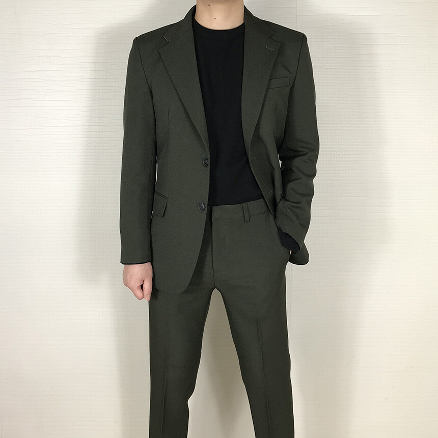 (Autumn) 슬림핏 카키 솔리드 세미정장세트 [1567]