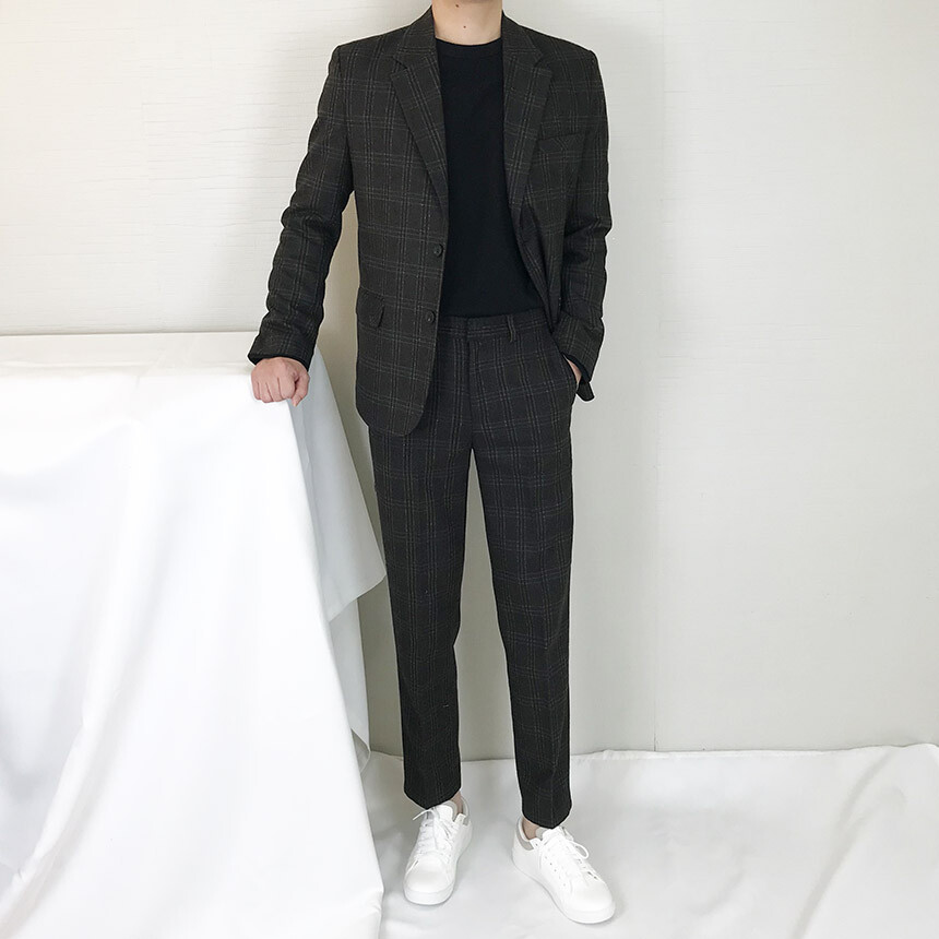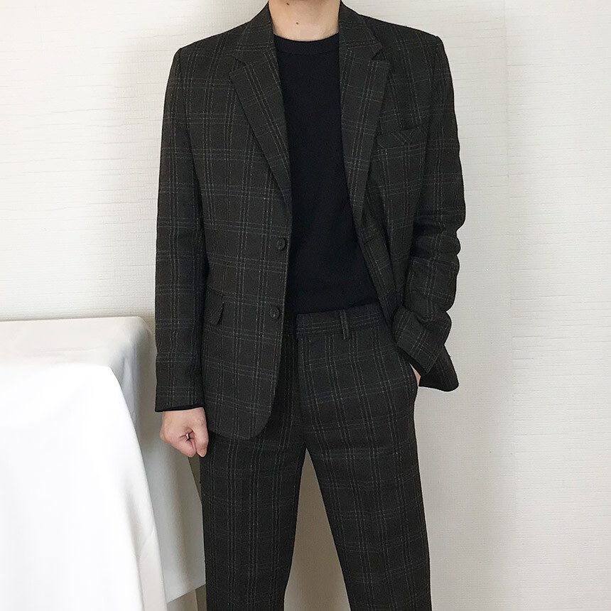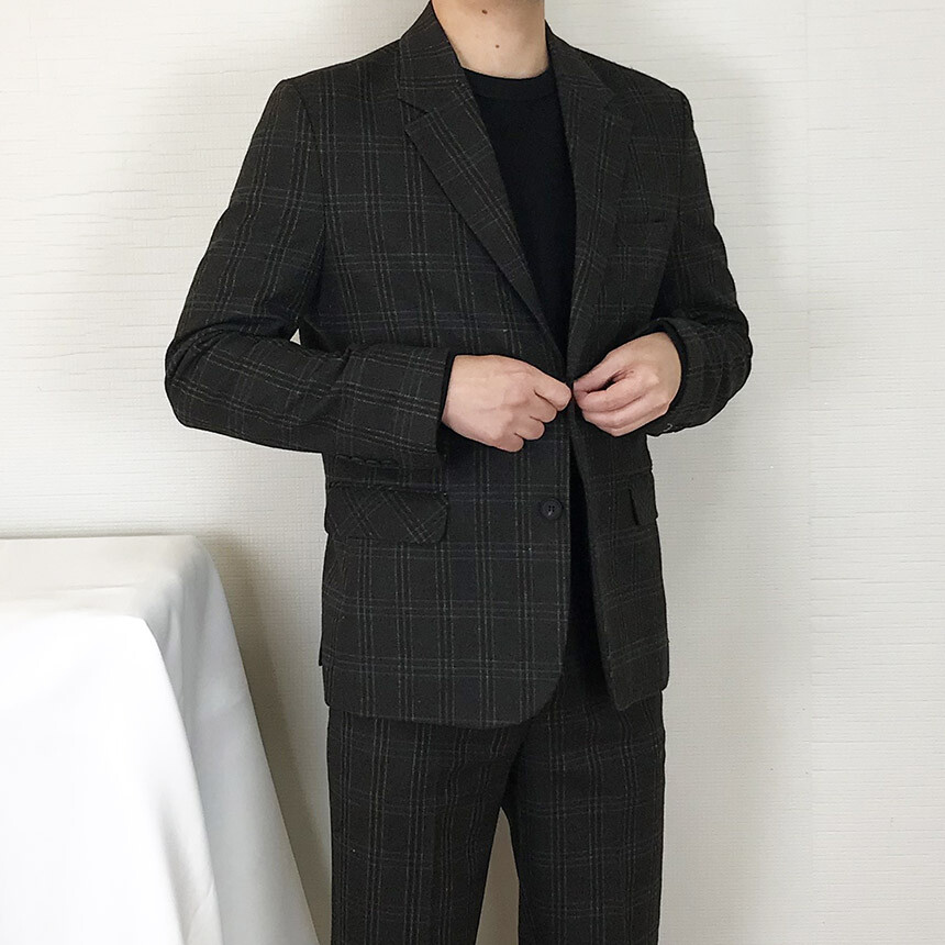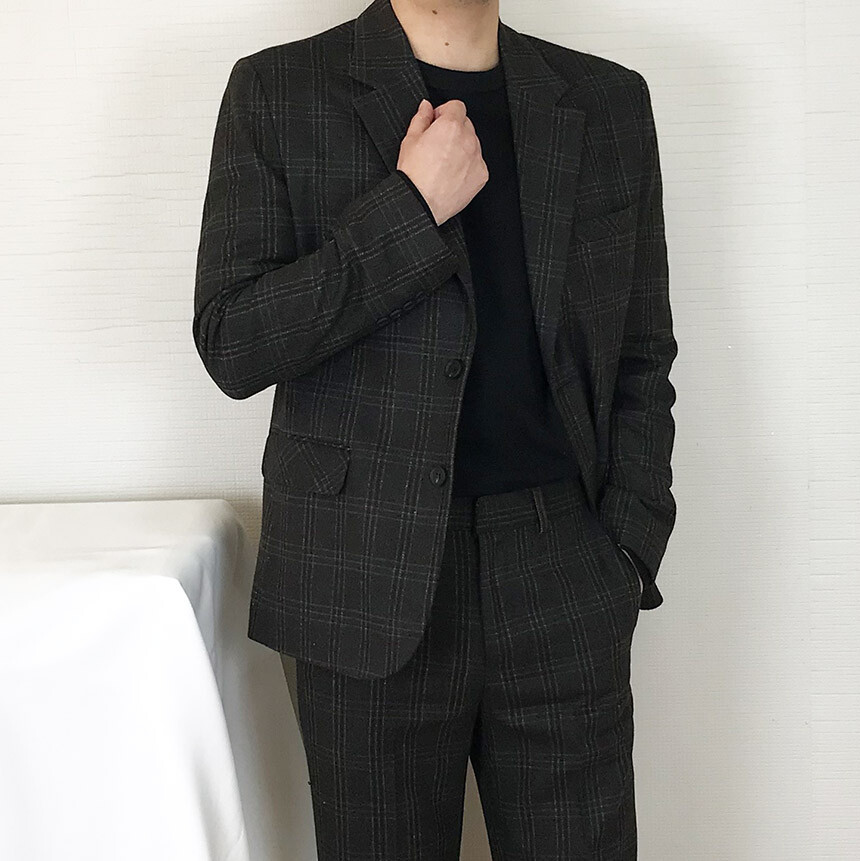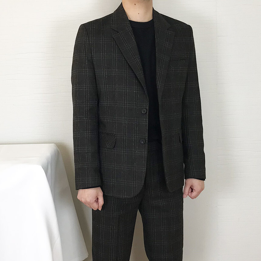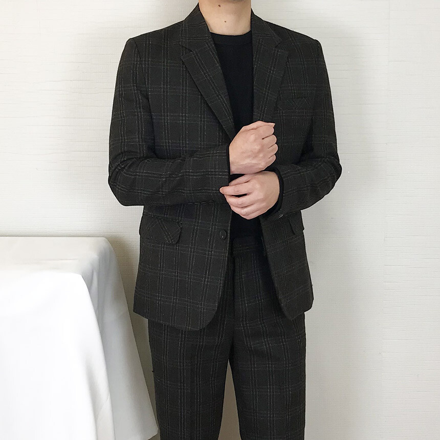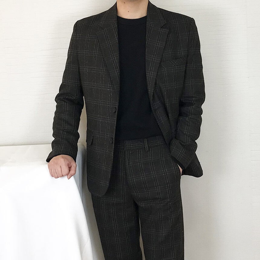 (winter) 슬림라인 카키블랙 체크 울수트 [1910]