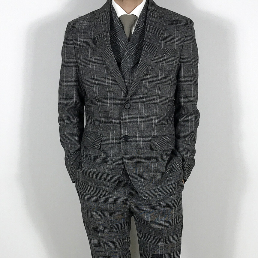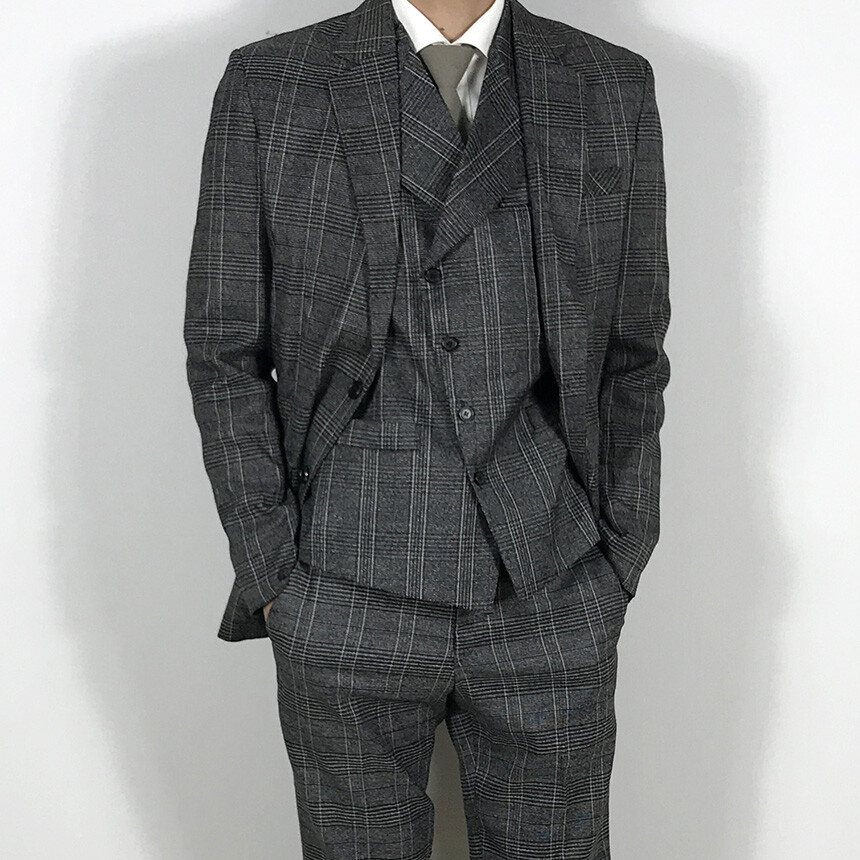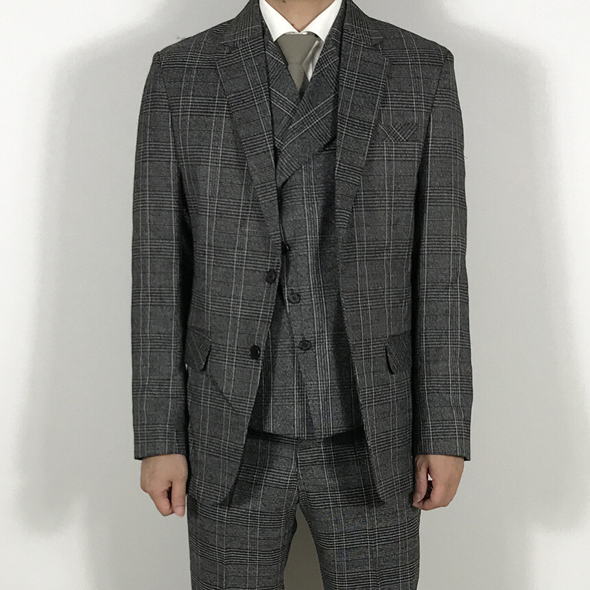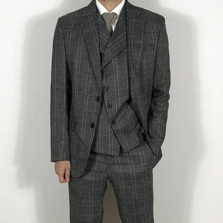 (Autumn) 슬림핏 글랜체크 블랙 쓰리피스 정장 [FLEF1955]