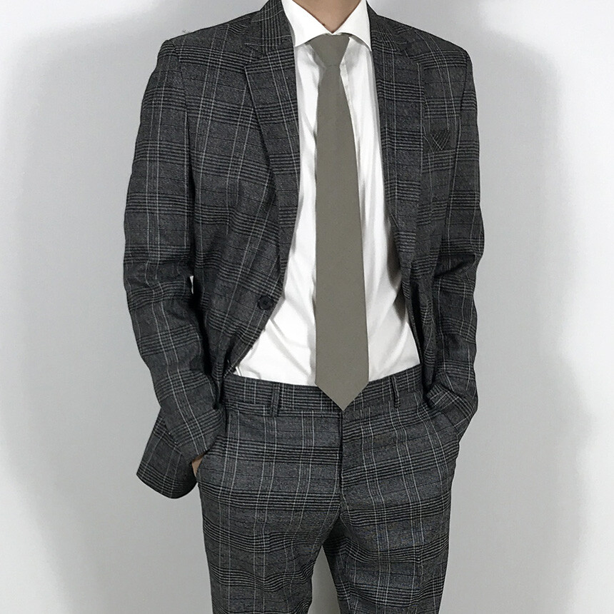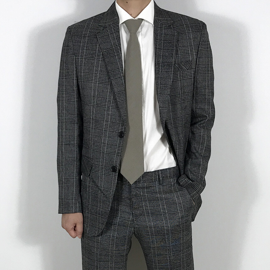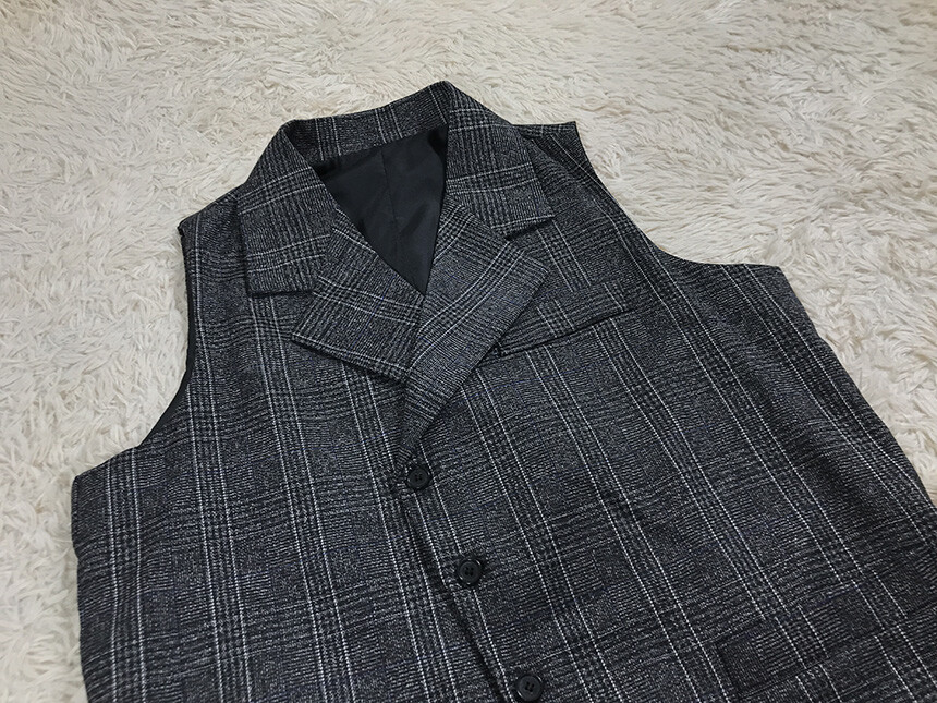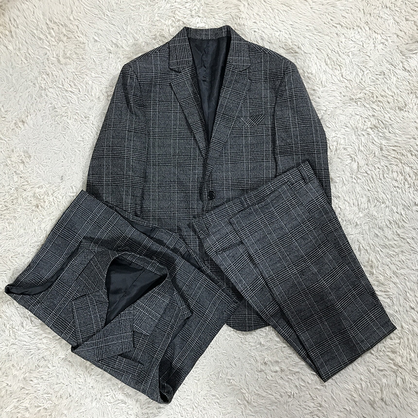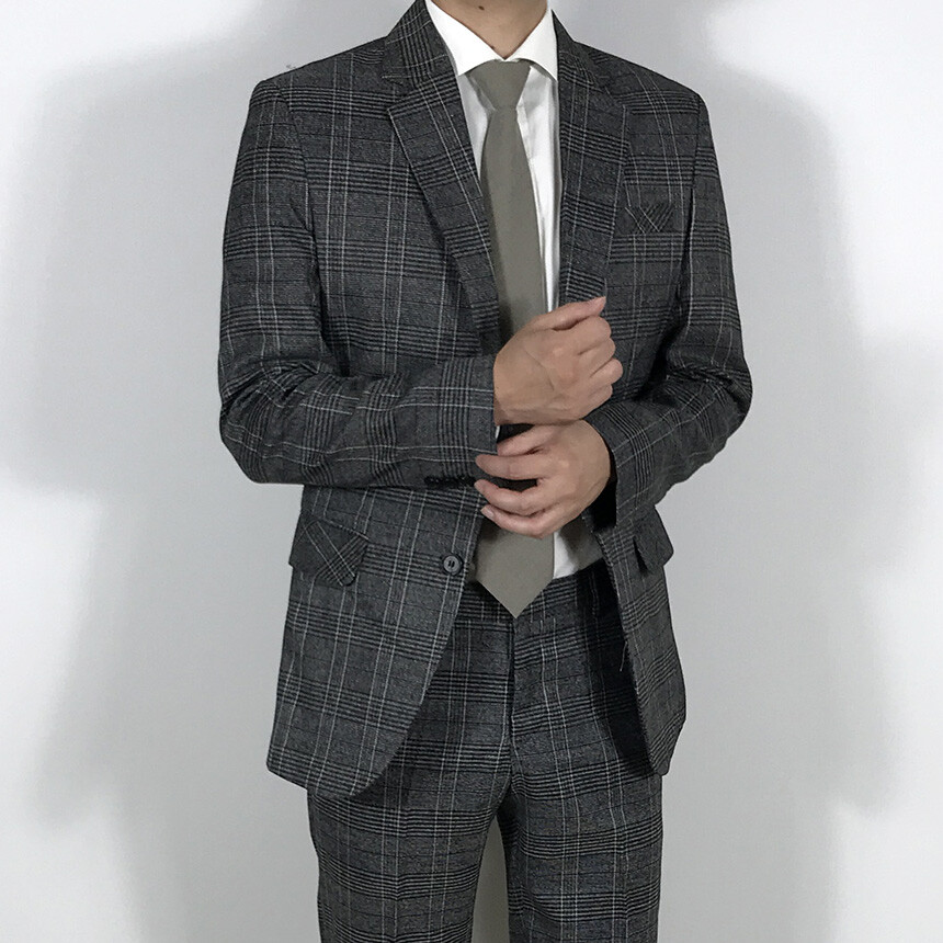 (Autumn) 슬림핏 글랜체크 블랙 쓰리피스 정장 [FLEF1955]