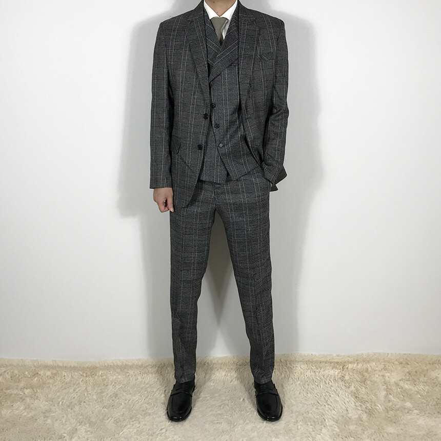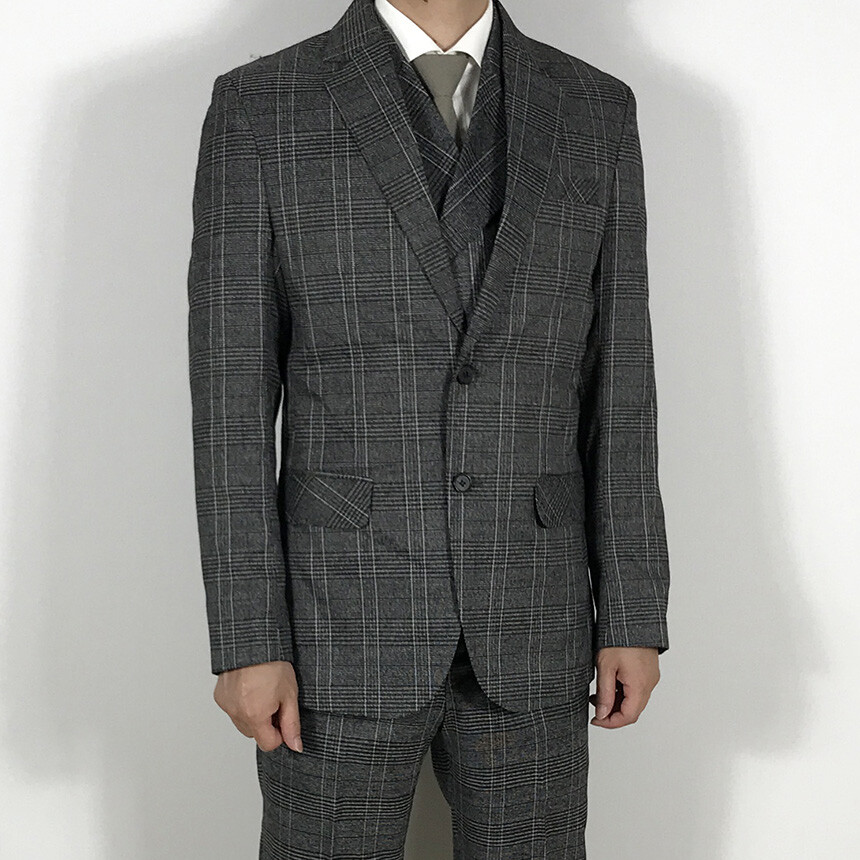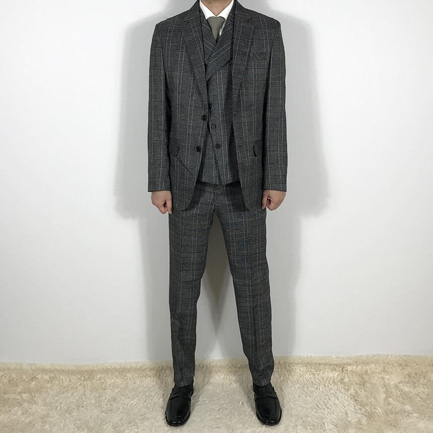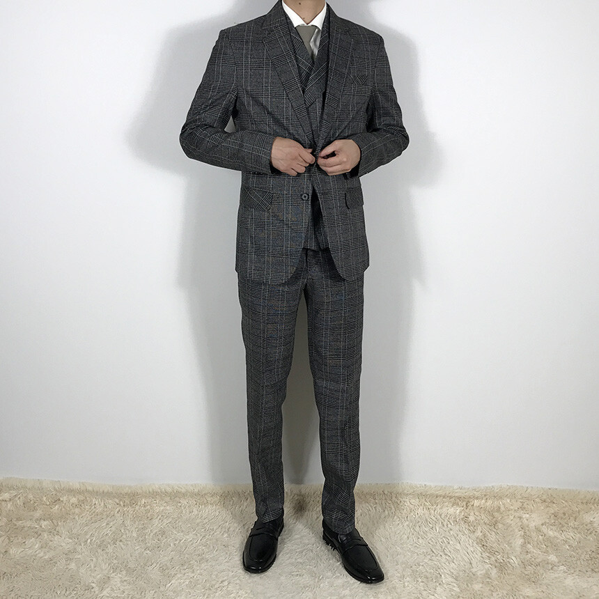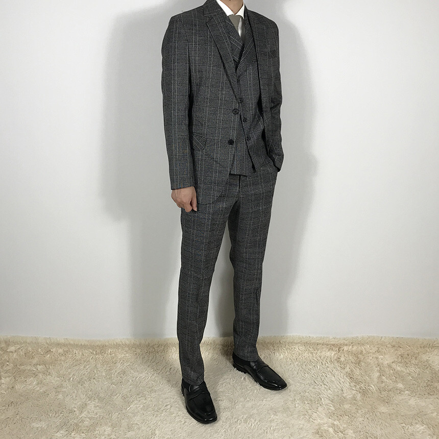 슬림핏 글랜체크 블랙 쓰리피스 정장