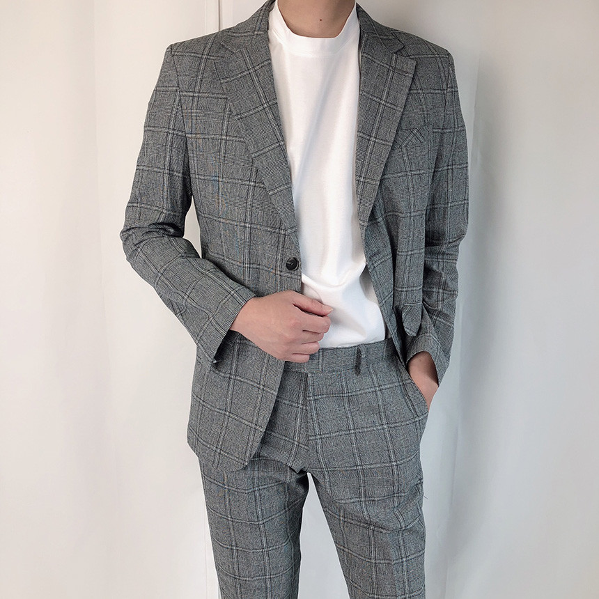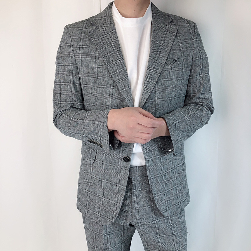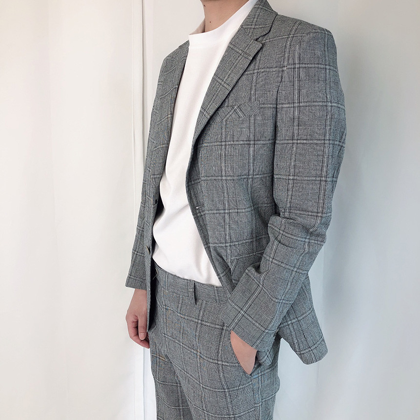 (summer) 린넨 진한그레이 글렌체크 정장 세트 [1231]