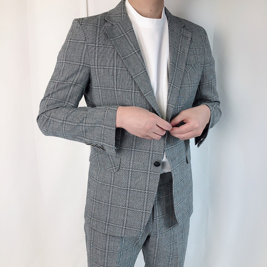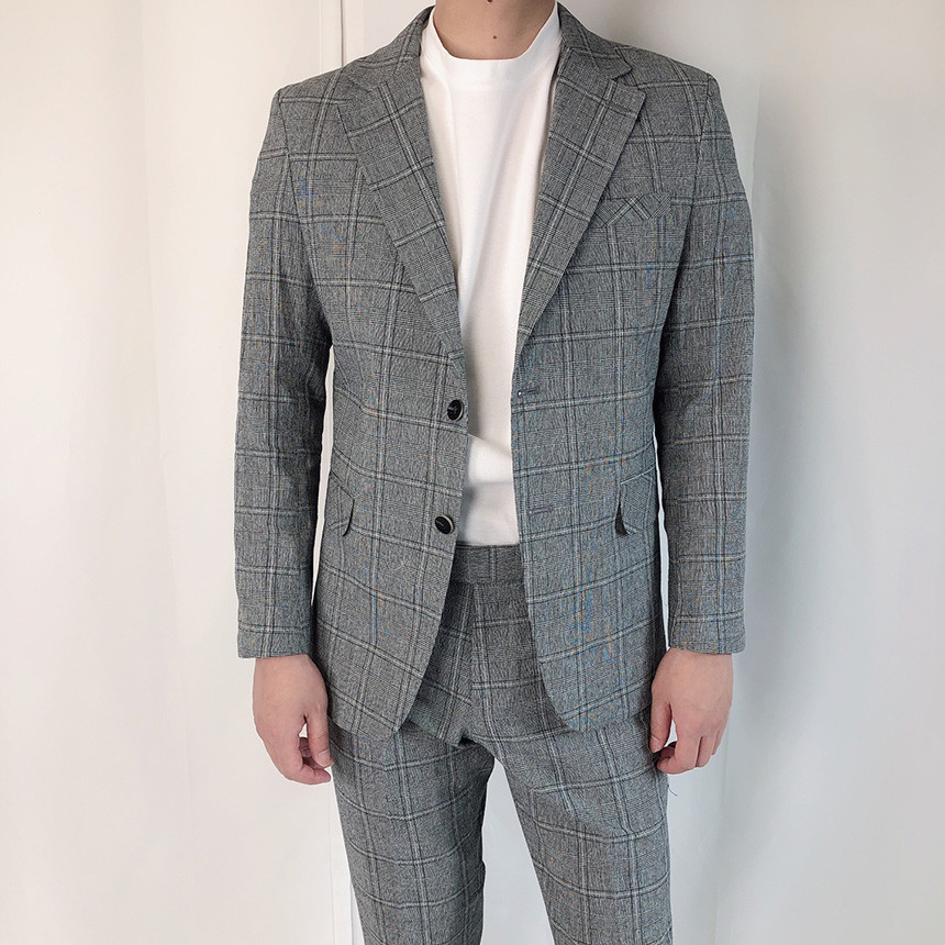 린넨 진한그레이 글렌체크 정장 세트