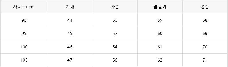 예시)본인사이즈100이면 100-105사이즈 구매 권장