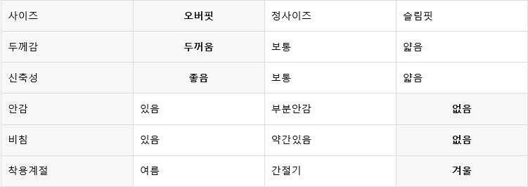 평소 입던 스타일과 달라 만족도가 낮을 수 있습니다