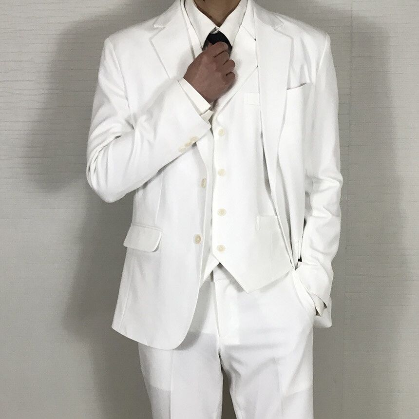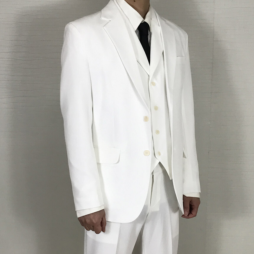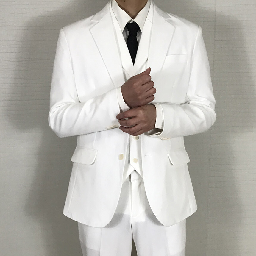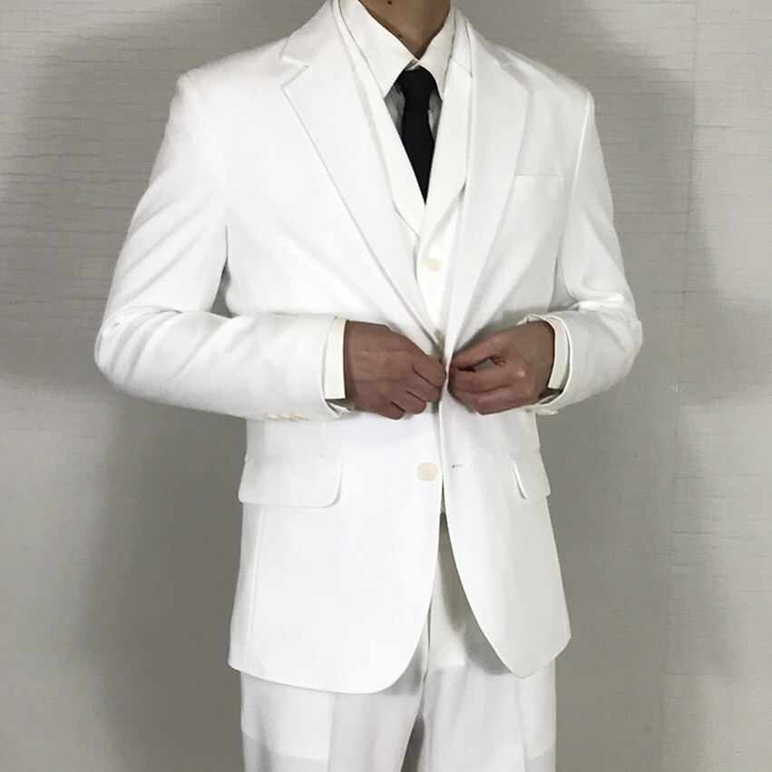 텐셀 화이트 웨딩 카라조끼 싱글수트