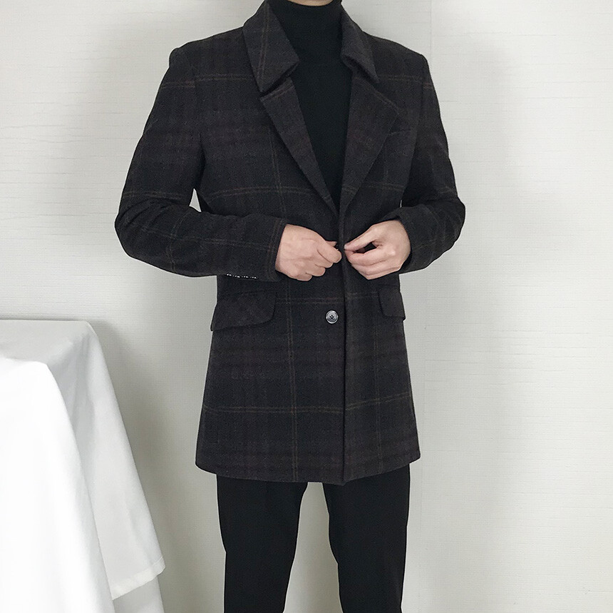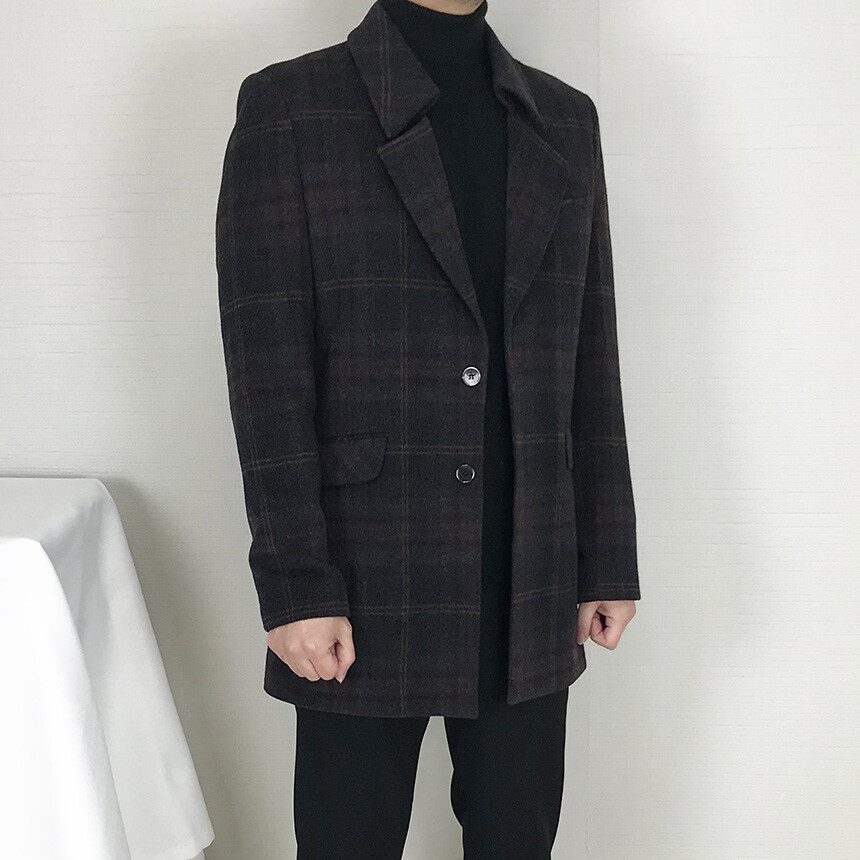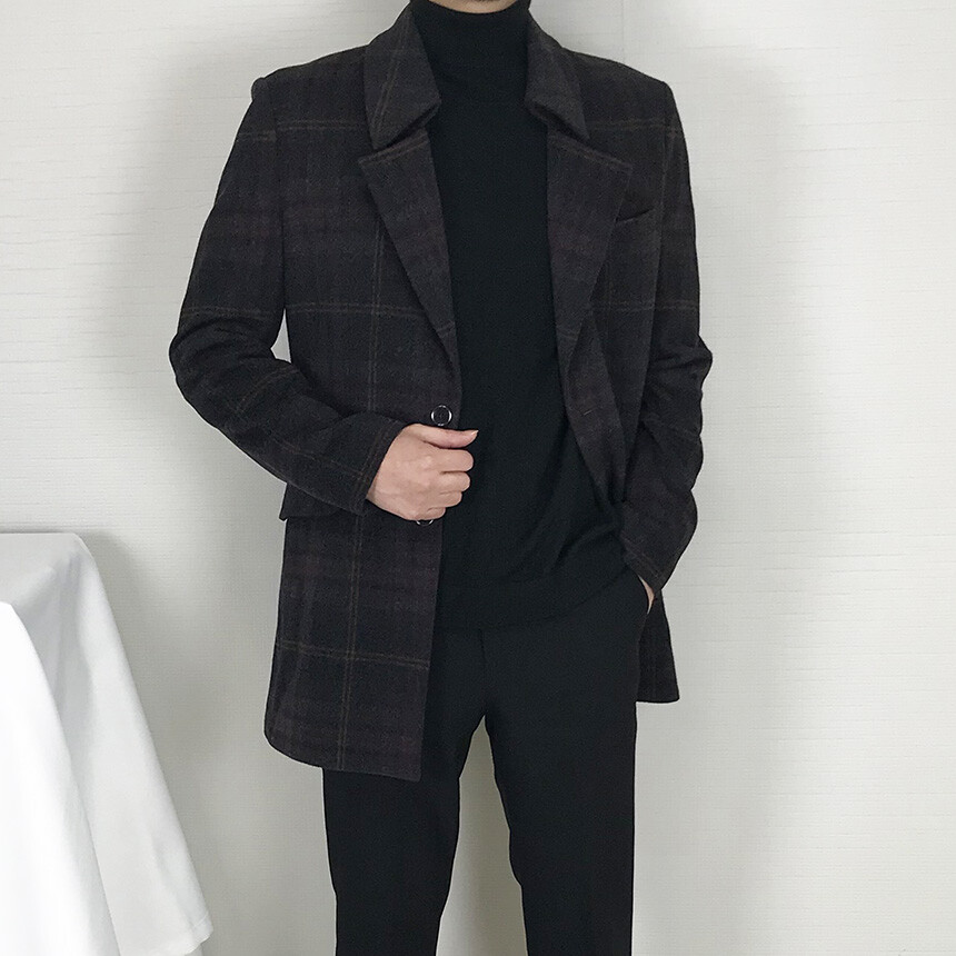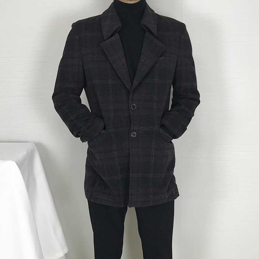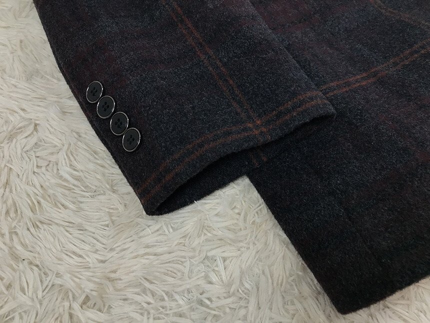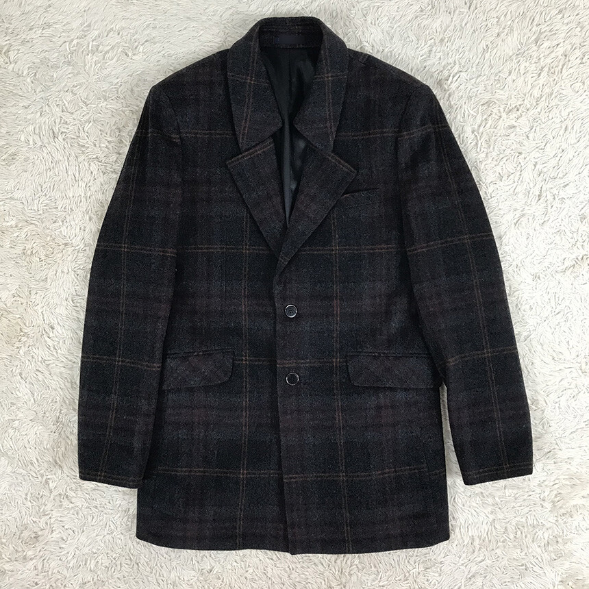 울100% 슬림 차콜 와인체크 투카라 반코트