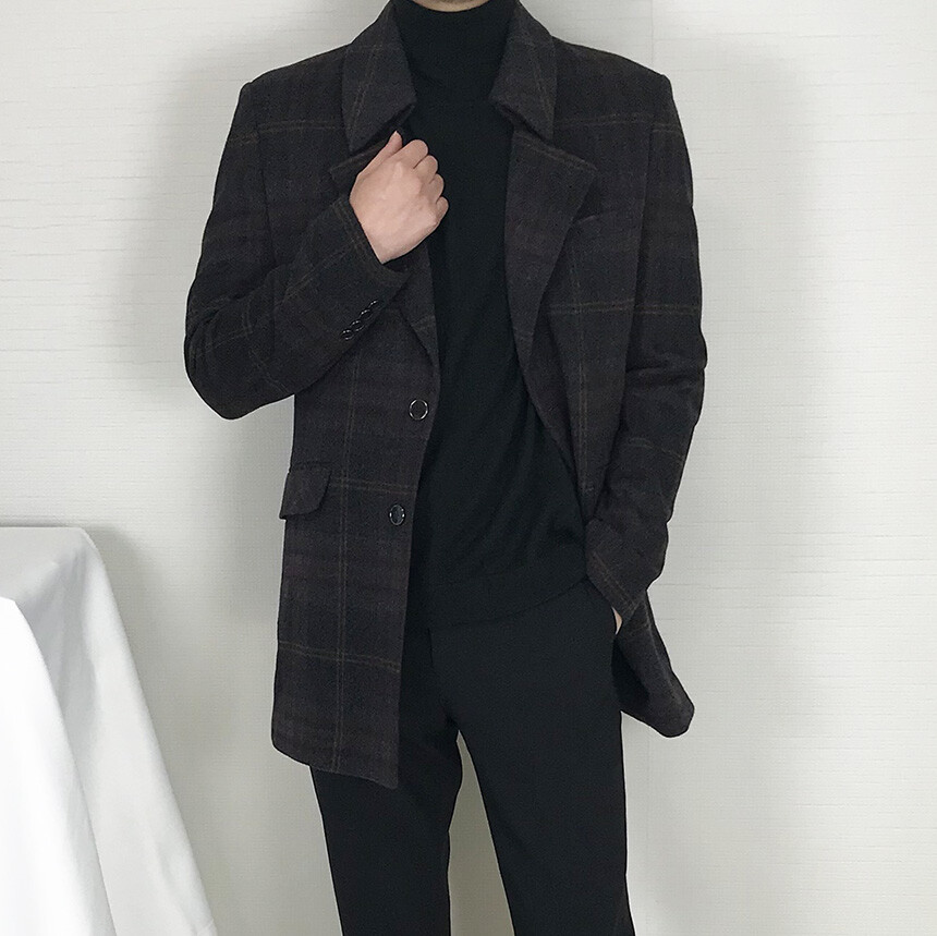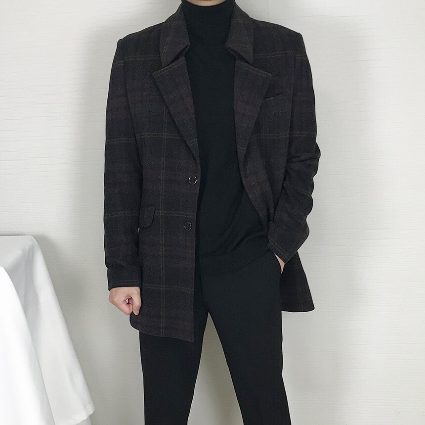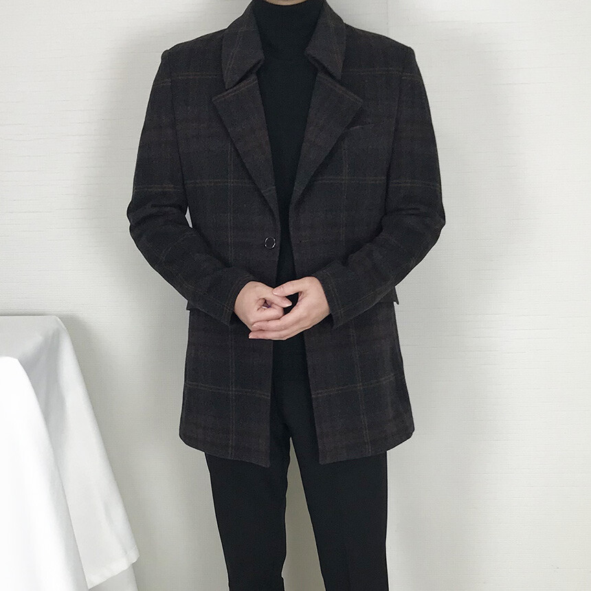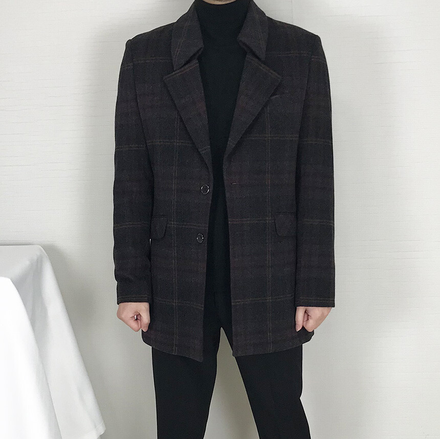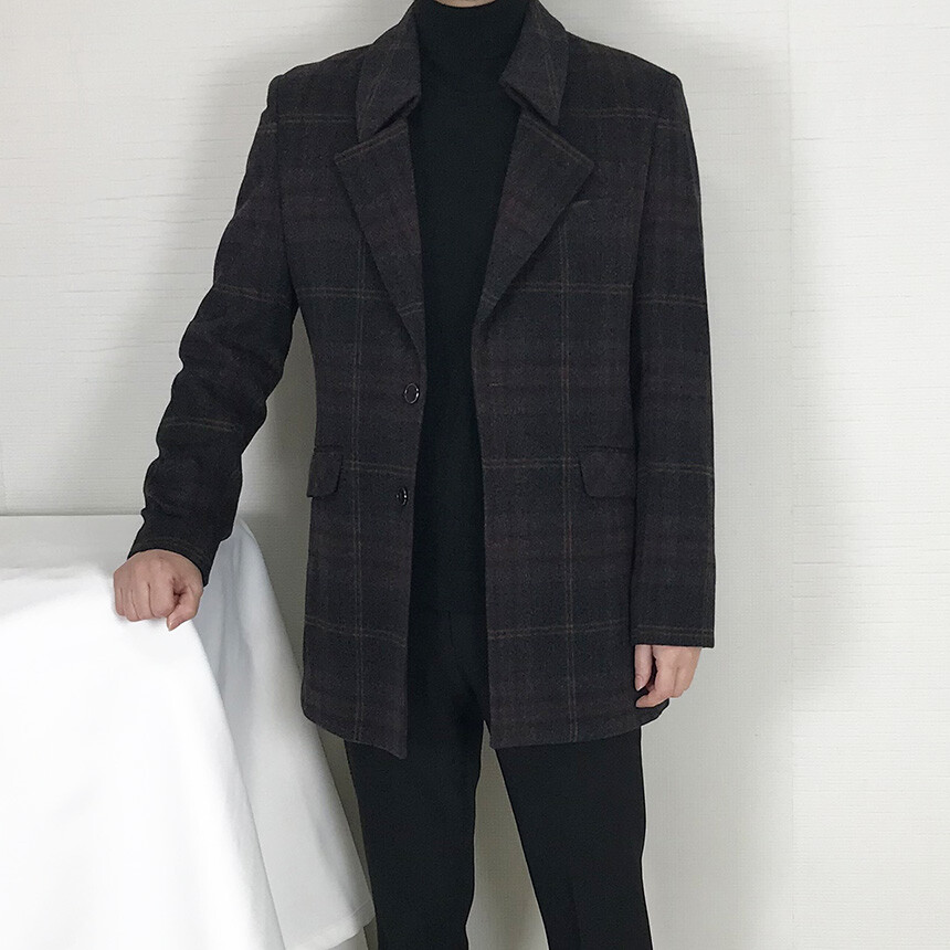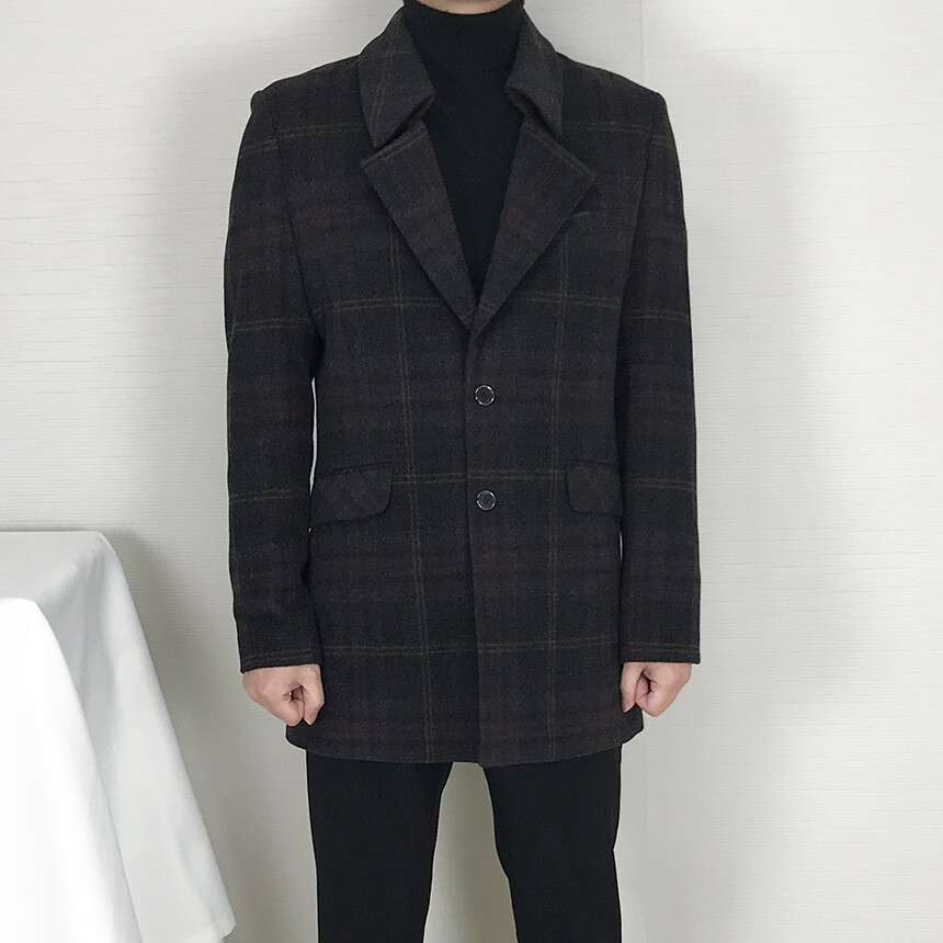 (winter & spring) 울100% 슬림 차콜 와인체크 투카라 반코트 [JLCW3004]