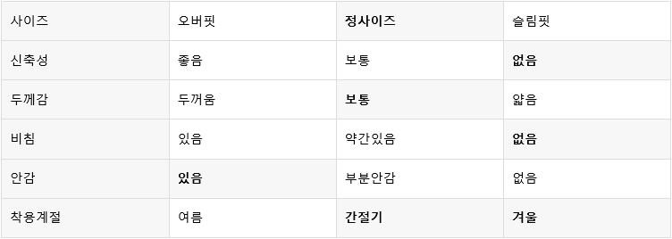 평소 입던 스타일과 달라 만족도가 낮을 수 있습니다