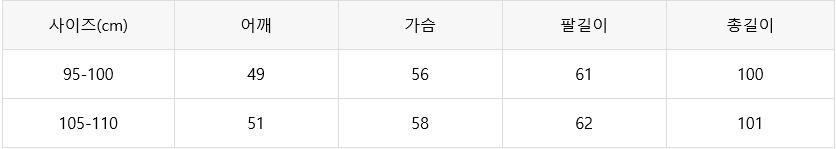 예시)본인사이즈100이면 100-105사이즈 구매 권장