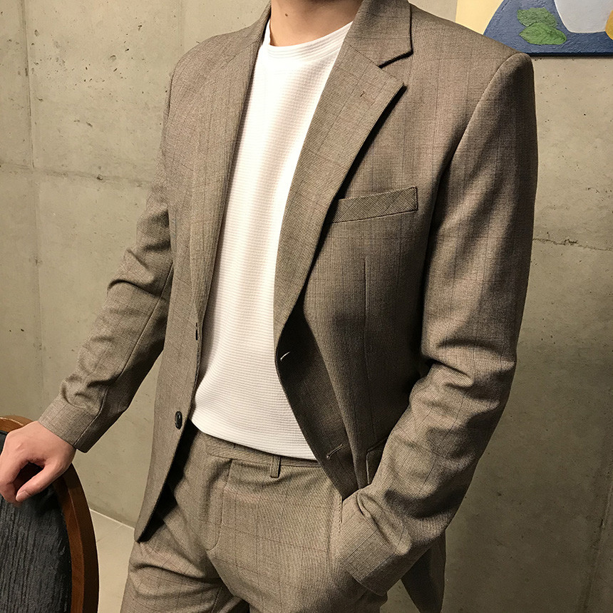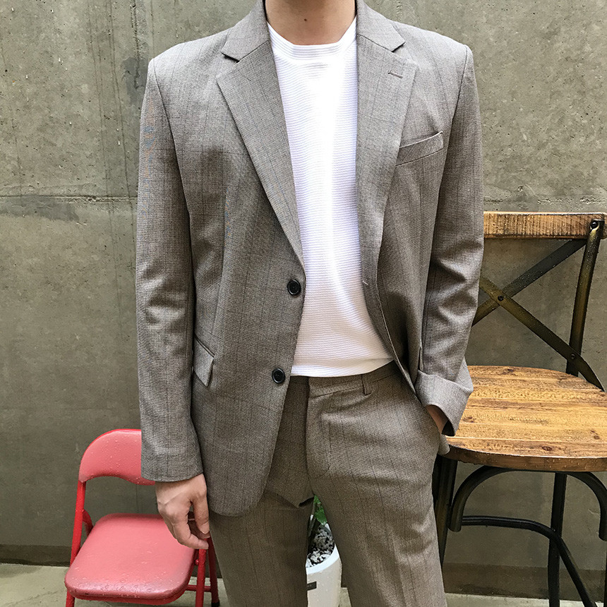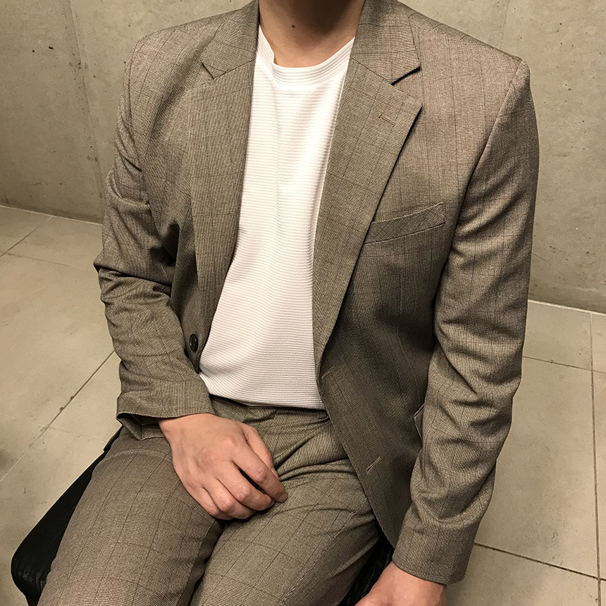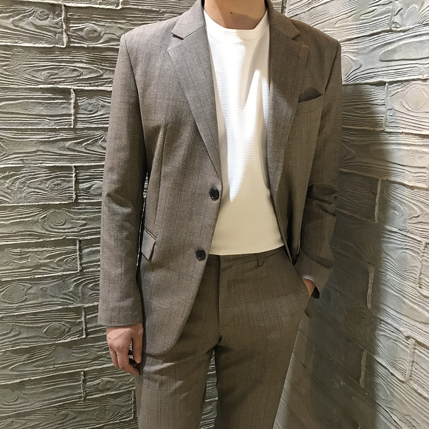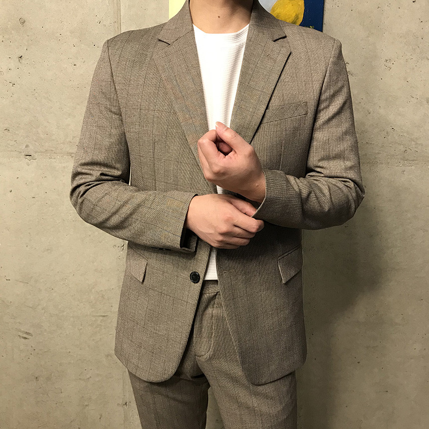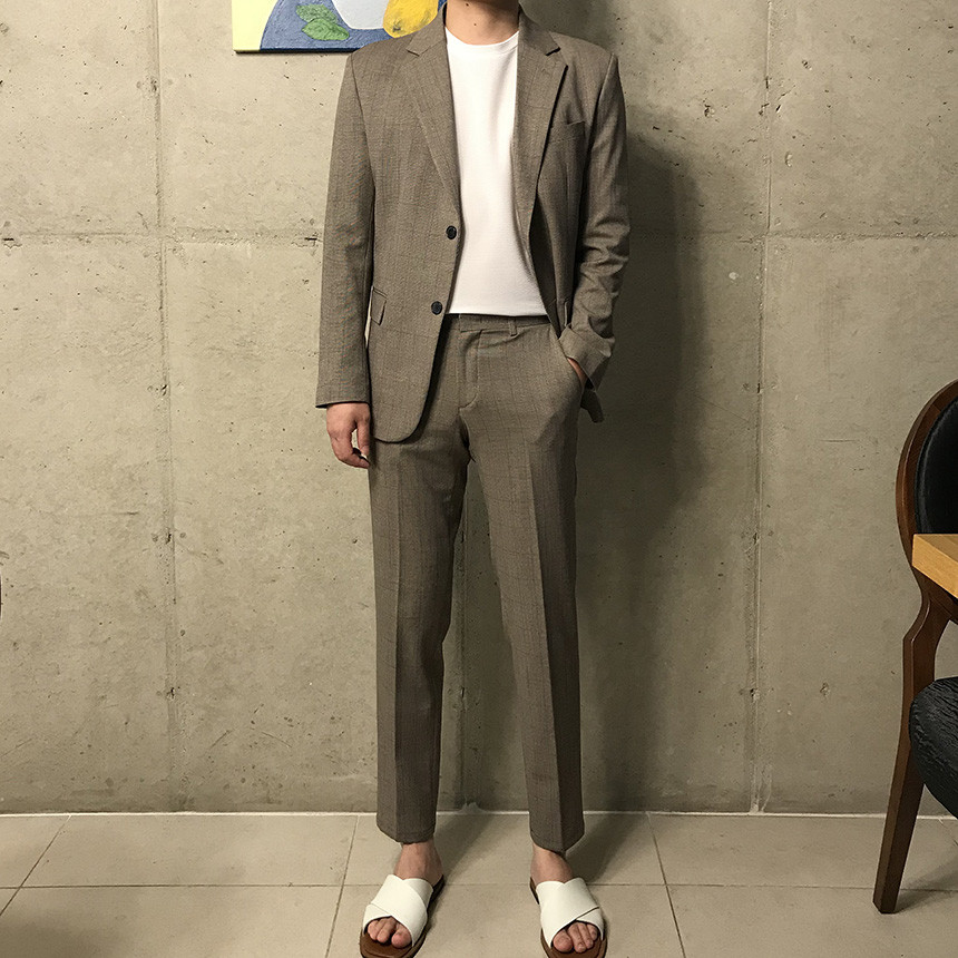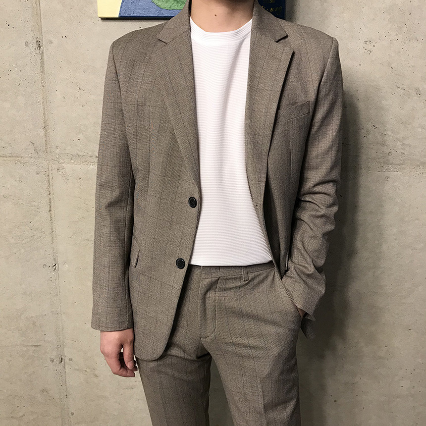 (summer) 슬림 그레이베이지 체크 쓰리피스 정장 [KXAFLAM1245]