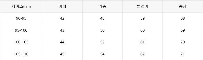 예시)본인사이즈100이면 100-105사이즈 구매 권장