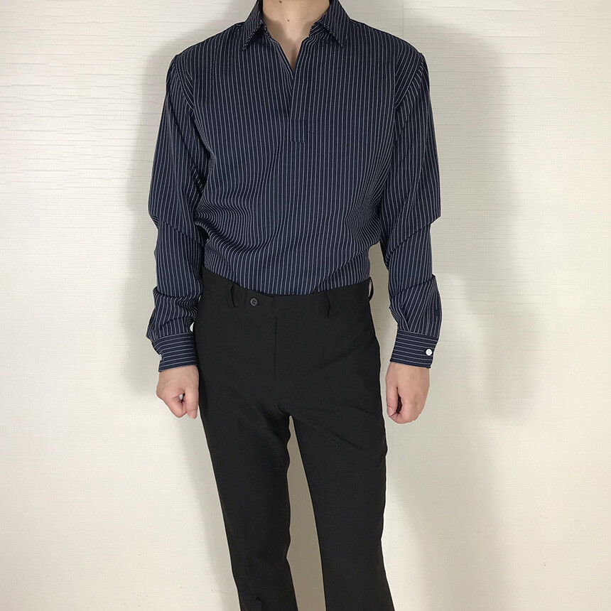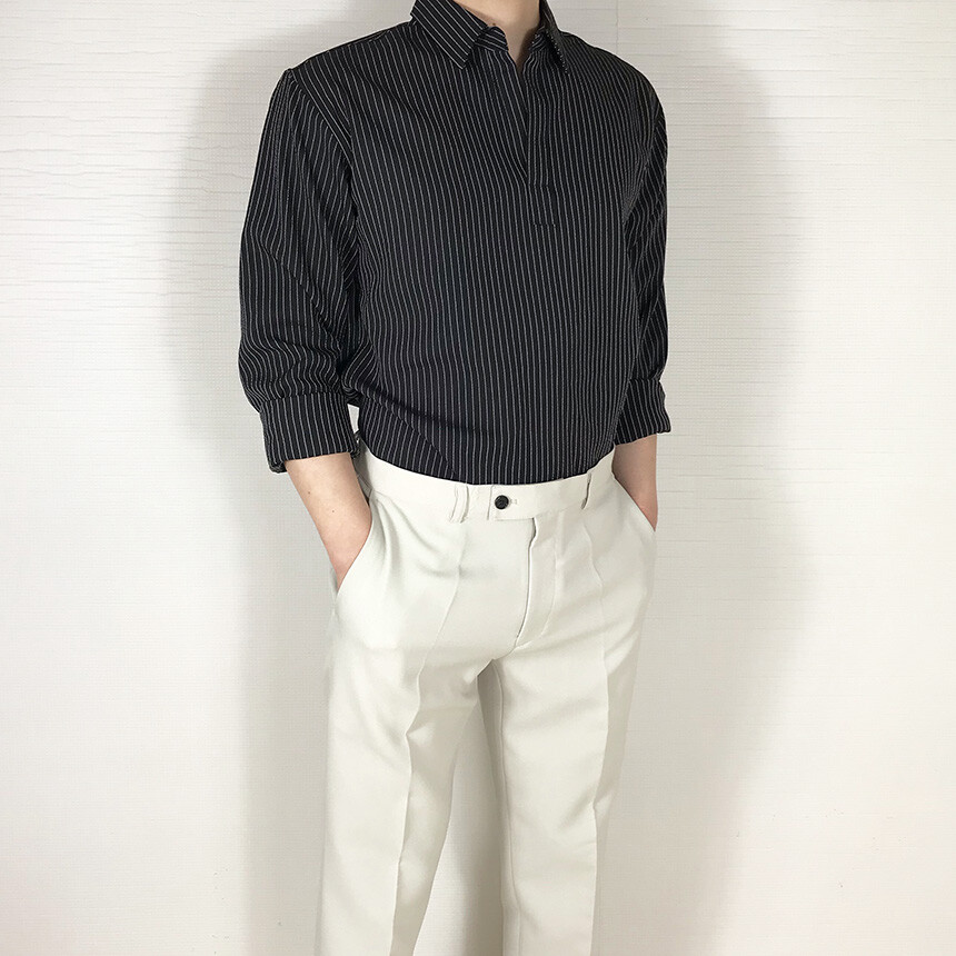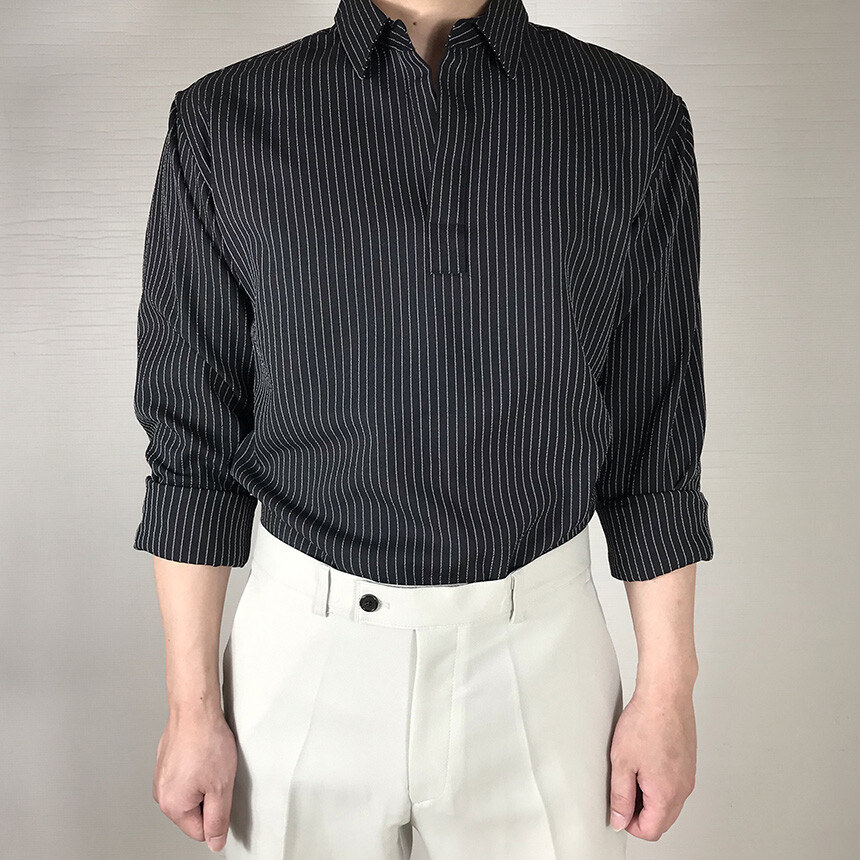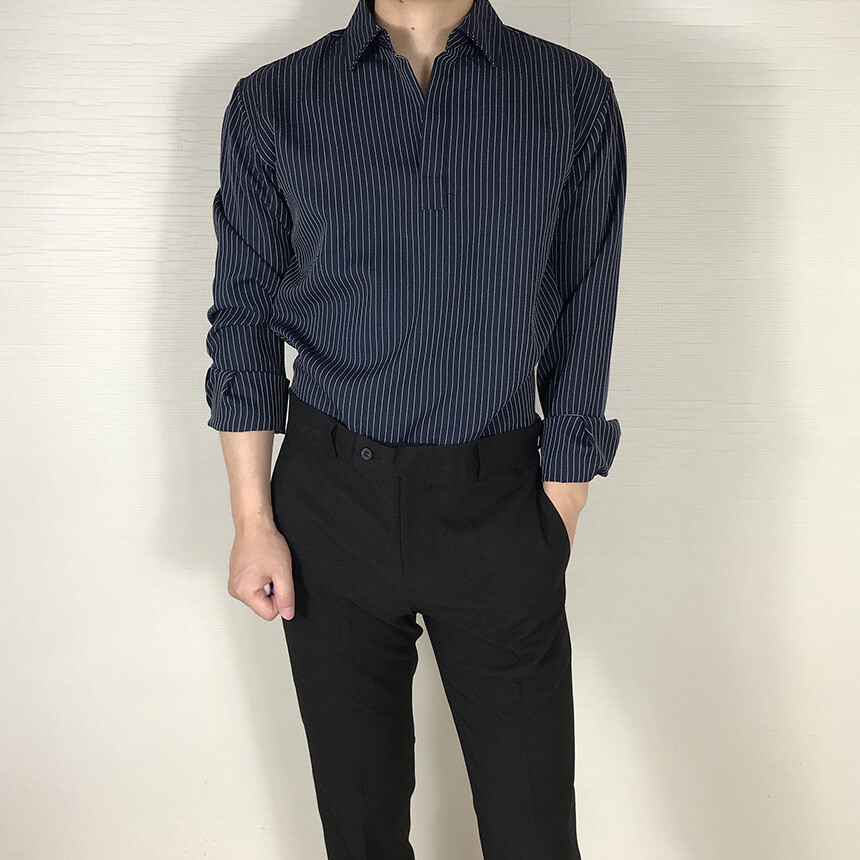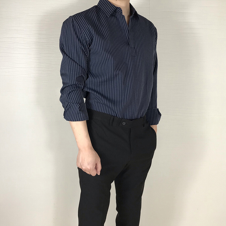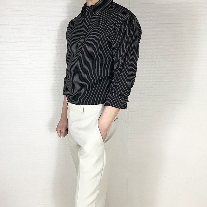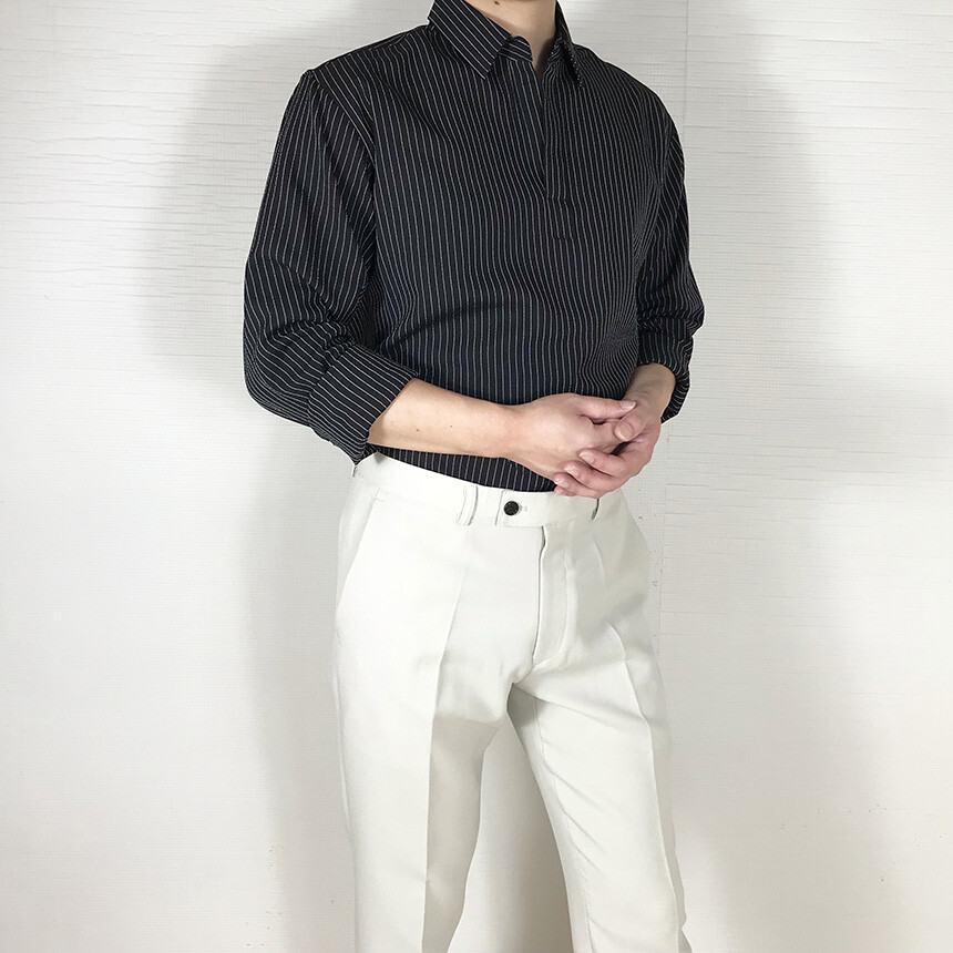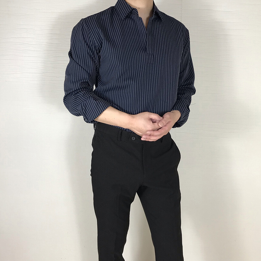 (spring) 세미오버핏 반오픈 스트라이프 셔츠(4col) [0035]