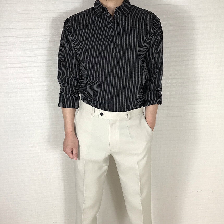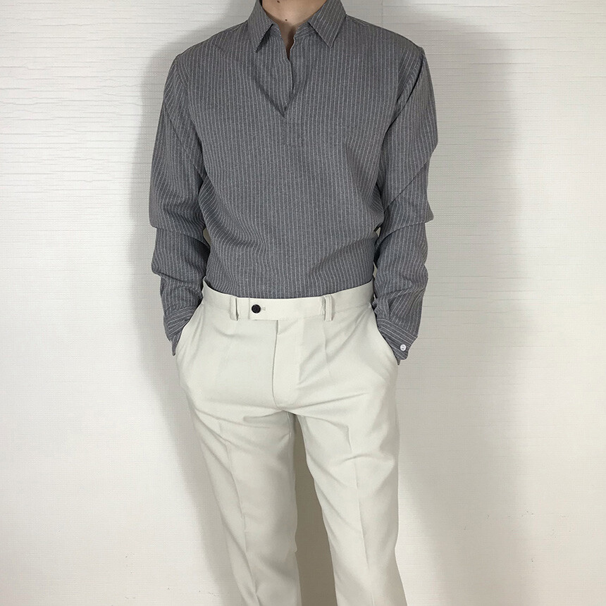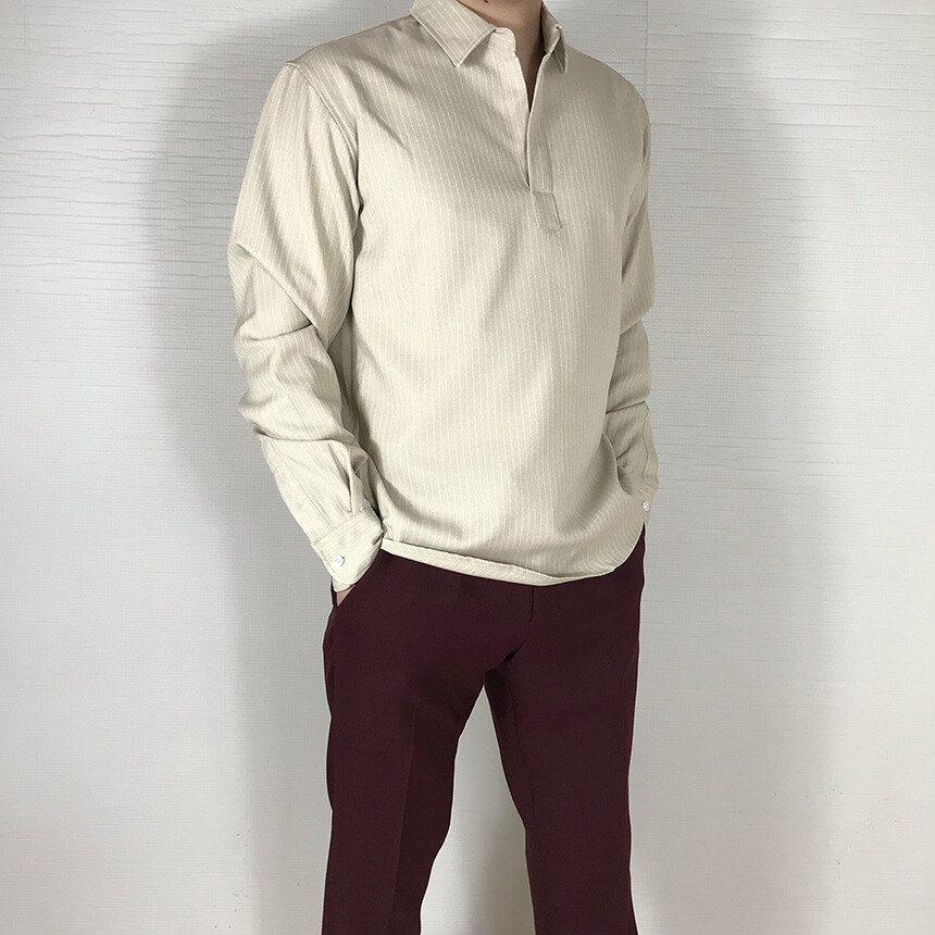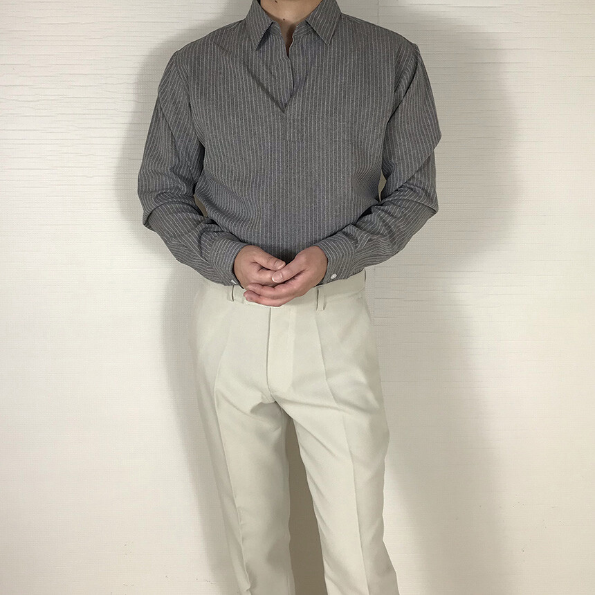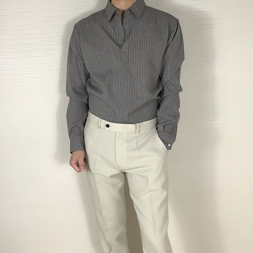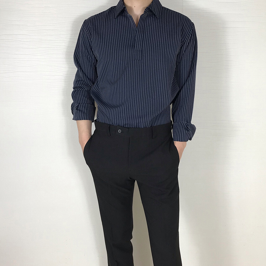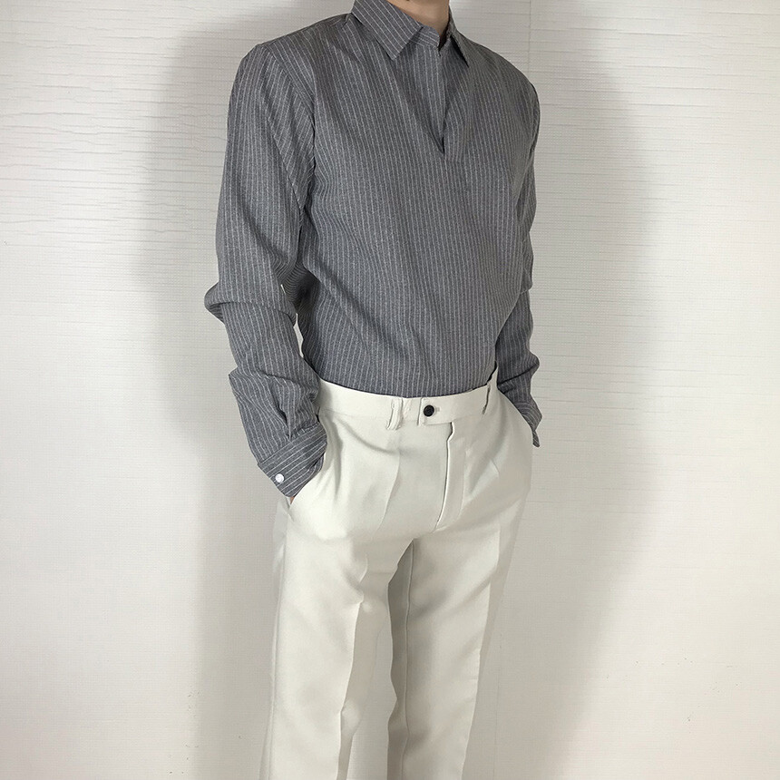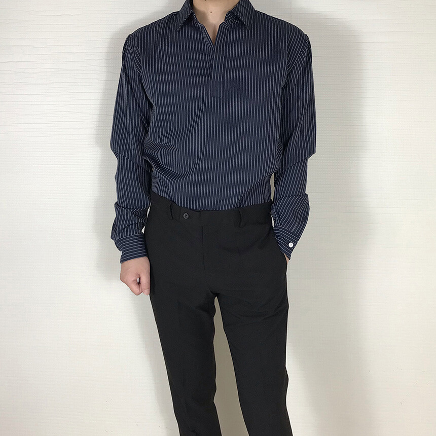 (spring) 세미오버핏 반오픈 스트라이프 셔츠(4col) [0035]